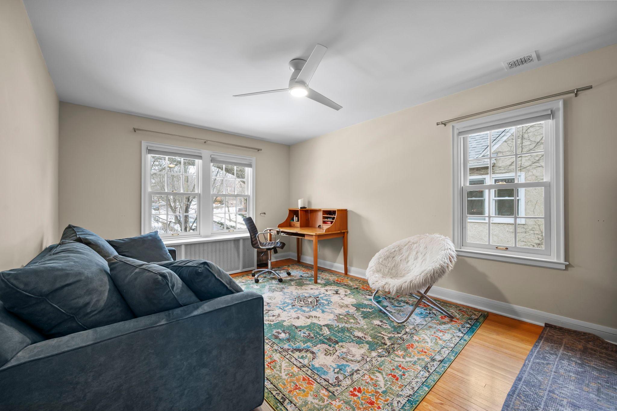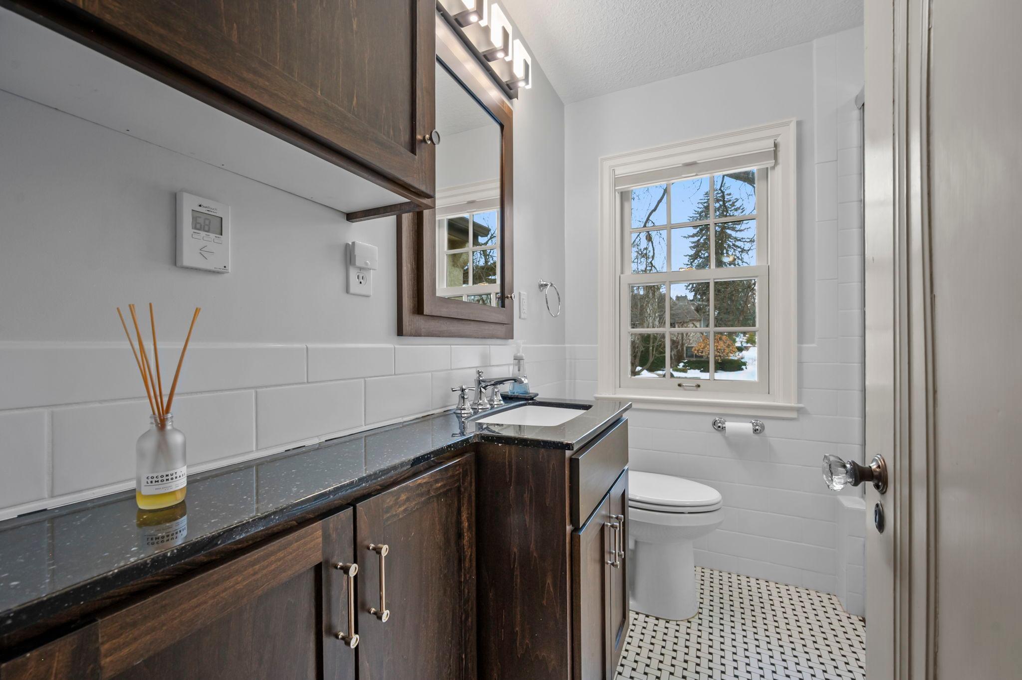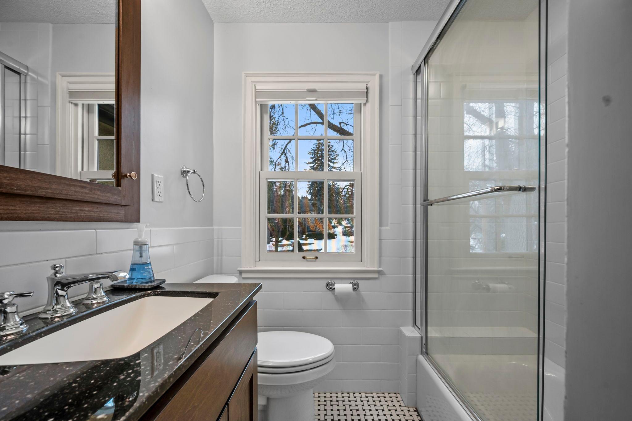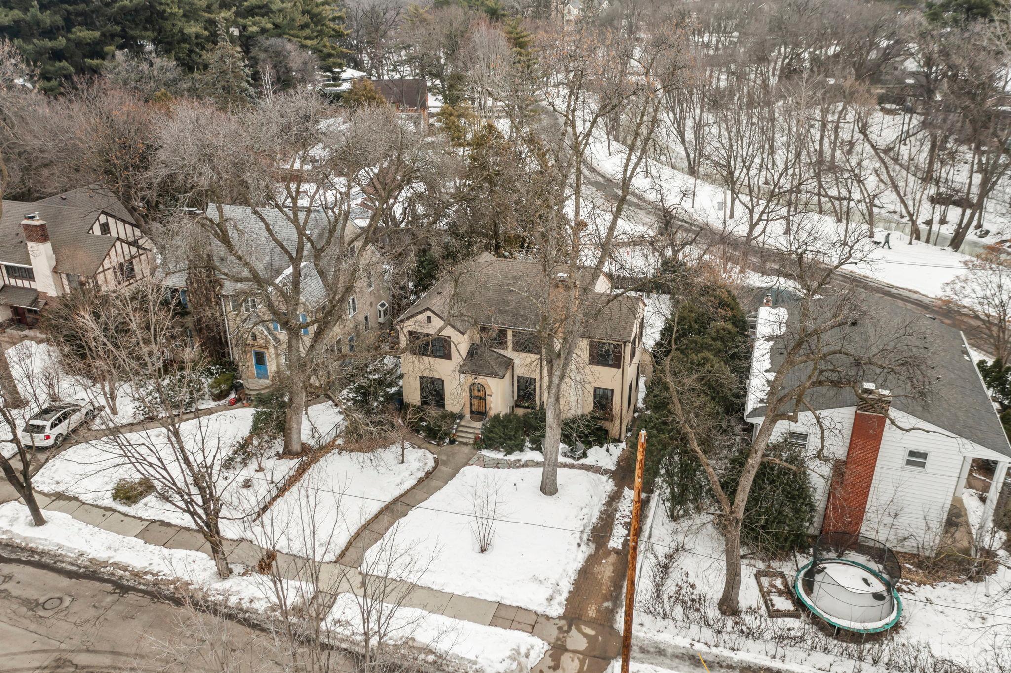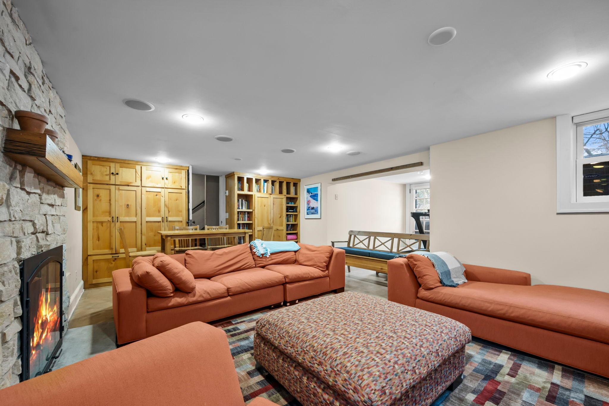 Natural light pours in through numerous windows, illuminating every space, including the delightful sunroom currently used as an office. The large eat-in kitchen is truly a chefs dream, featuring high-end stainless steel appliances from Wolf, Bosch, Miele, & Sub zero, granite countertops, abundant cabinet and prep space, tile backsplash, and tile flooring. The informal dining area adds even more charm with built-in cabinetry and an adorable window seat (could also easily be a main floor FR) Main level also features a convenient half bath for your guests. Upstairs, youll find four generously sized bedrooms, including a primary suite with a private bath. A refreshed full bath serves the additional bedrooms. Glass door leads to a private second-story deck offering breathtaking views the perfect place to unwind. The lower level boasts a spacious family room with oversized windows that bring in natural light, along with a second fireplace for cozy evenings and an exercise nook. Outside, a brick driveway leads to a double tuck-under garage with a extra storage room. The fenced backyard is ideal for relaxing or entertaining, complete with a firepit for evening gatherings. Updates include all kitchen appliances 2020-2024, electrical panel upgrade in 2024 (enough power for EV chargers), Water heater 2022, Bathrooms & new plumbing 2021, heated floors in kitchen, basement, upstairs bathrooms, & main floor bath, Central AC added & new boiler in 2018.Located literally steps to the creek, numerous parks, museums, dining, and shopping, this home truly has it all.