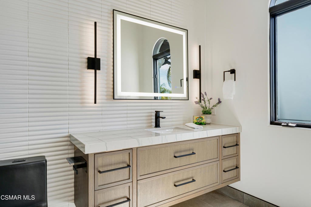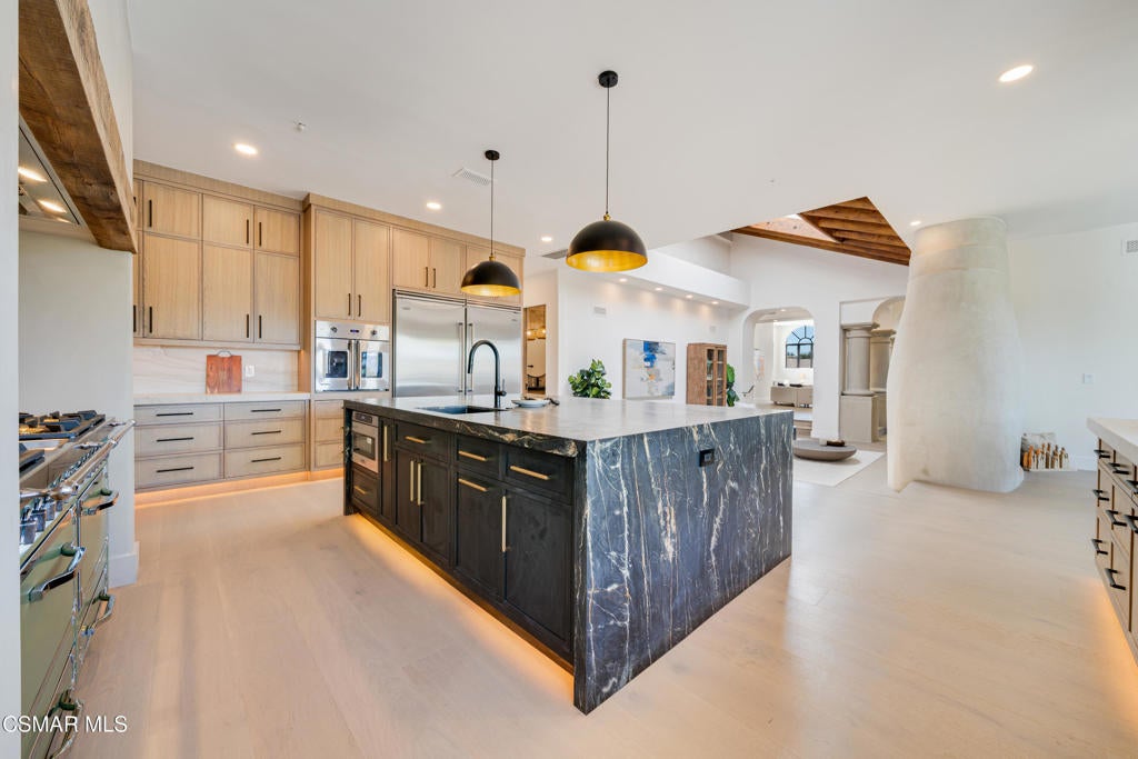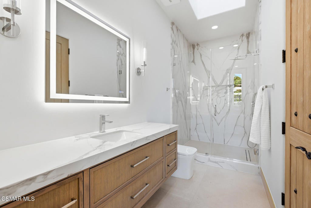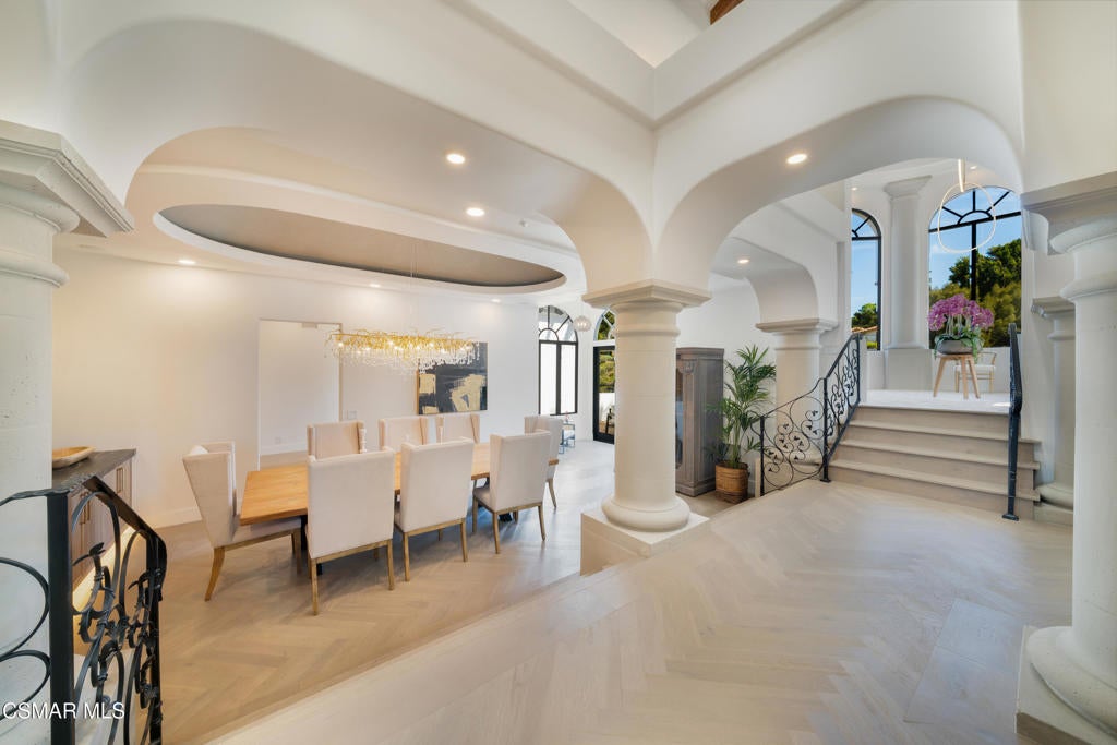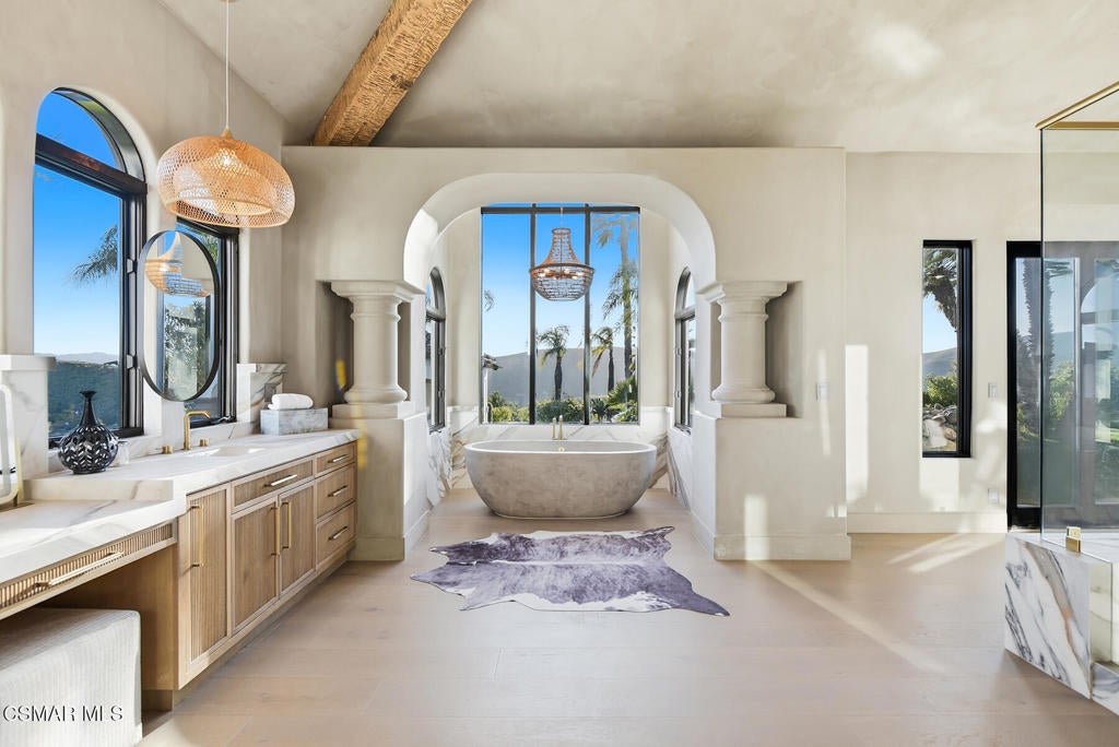 The ultimate masterpiece estate in guard gated North Ranch Country Club Estates! A completely reimagined Spanish transitional sitting behind private gates on an epic 3.16 acres with panoramic views! A very rare compound featuring a detached guest house, separate pool house and too many amenities to mention! The main residence (8384 square feet) provides 7 bedrooms and 9 bathrooms, theater, ELEVATOR from garage to main living areas, office/library, teen/bonus room, and more. The dream center island kitchen boasts top of the line appliances and opens seamlessly to the family room. There is also a jaw dropping great room that will leave you speechless! The primary suite is warmed by a custom fireplace and boasts a sitting room and newly remodeled awe inspiring Four Seasons quality bathroom! The resort quality grounds are second to none! There are two pools, pool house/cabana, water features, an abundance of manicured lawns and a very special lower yard with entertainment areas, (second pool) and an ideal space for possible tennis court. All of this with panoramic unobstructed views and complete privacy! Among the homes many other attributes are a solar system, smart home technology and simply too much to mention! This is a one of one masterpiece property professionally designed and built using the very finest finishes throughout!