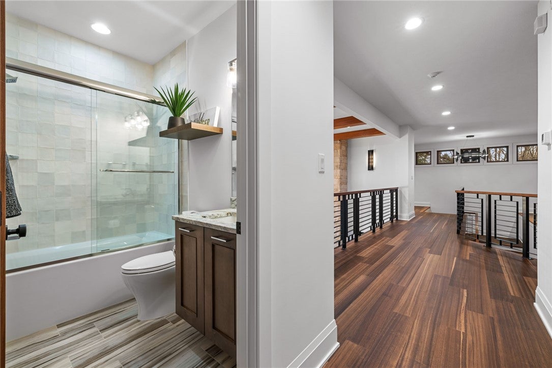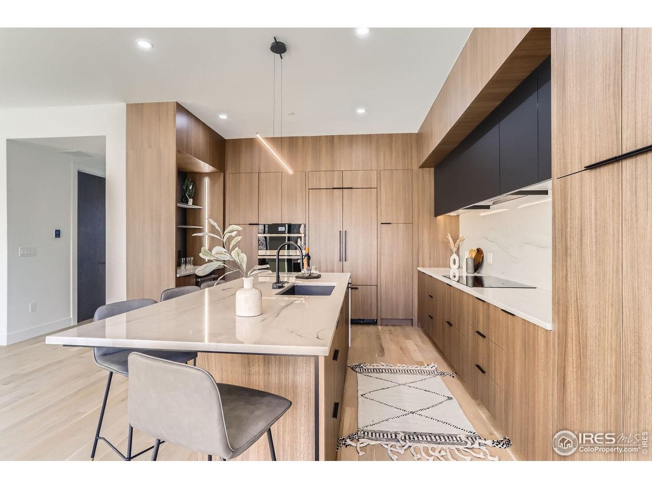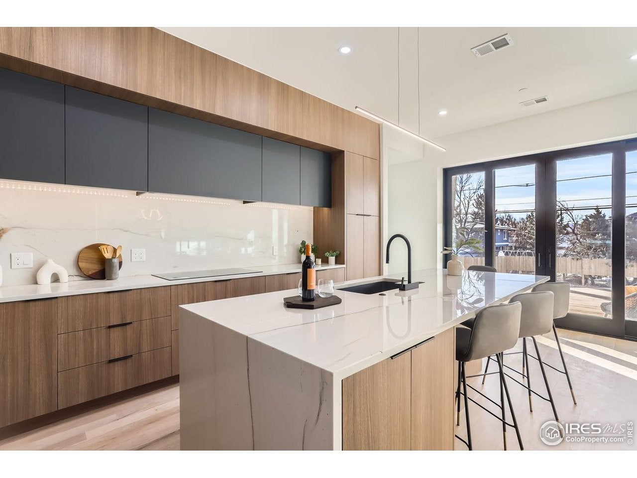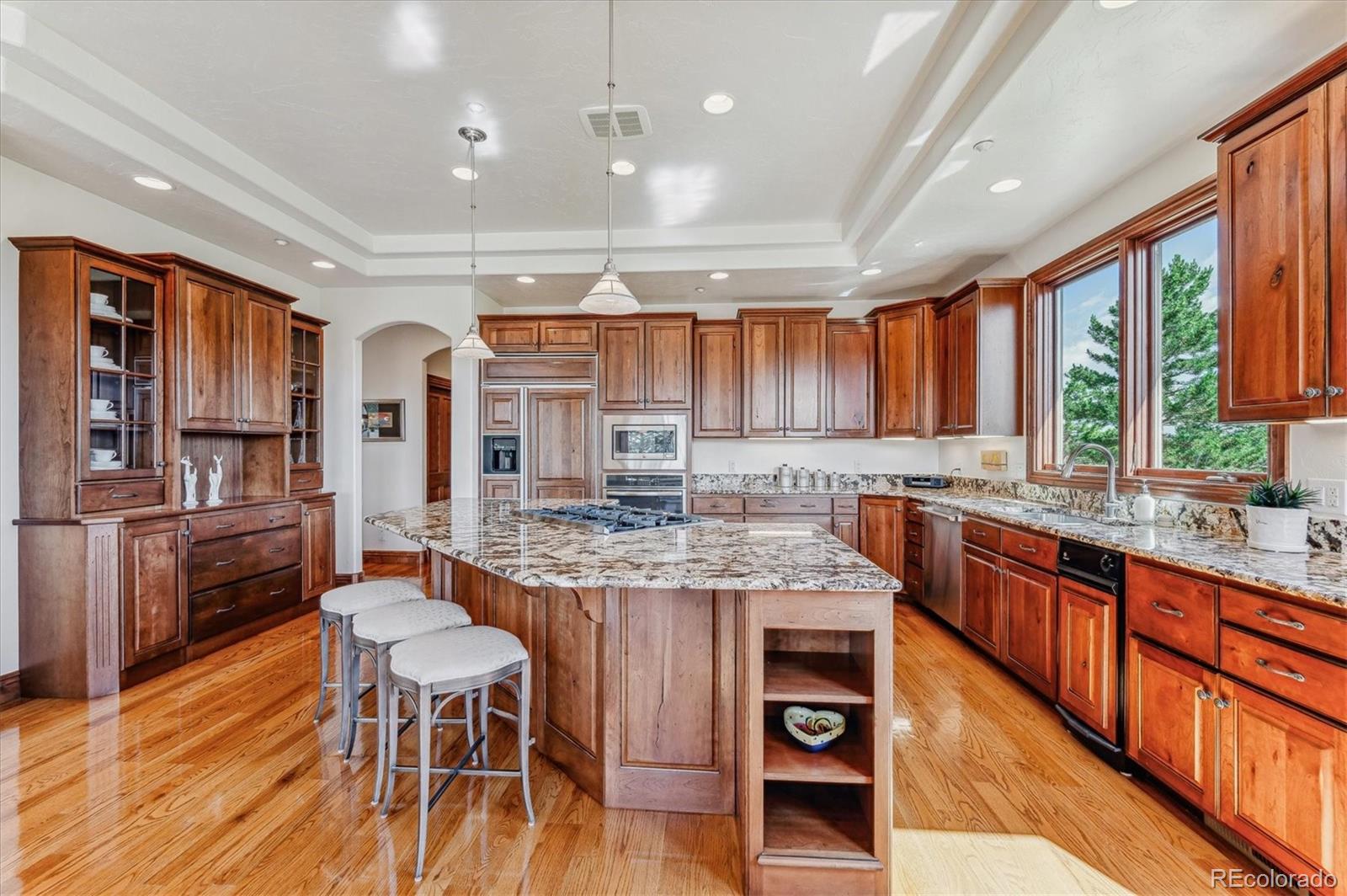 Set on 1.2 acres, this exceptional Madia Homes builders residence (2022) delivers top-tier craftsmanship and design! Enjoy a rare 5-car heated garage and a desirable flat rear yard near North Park. Tasmanian oak floors, walnut doors, and a Hubbardton Forge slate chandelier set the tone. The dramatic great room offers wood beam accents, a gas fireplace, and wall of windows. The kitchen features Miele appliances, Rutt cabinetry, Armina stone counters, and a walk-in pantry. The patio includes an outdoor fireplace! The first-floor primary suite has 13-ft ceilings, a custom dressing room, and a spa-like bath with steam shower. Additional highlights include first-floor laundry (plus upper hookups) and a modern study. Upstairs, spacious bedrooms join a bonus game room with wet bar and private covered deck. The finished walkout lower level adds a glass-enclosed gym, large media/game room, custom bar, and an additional bedroom suite. Rare huge flat yard! Near Whole Foods, shops, & restaurants!
