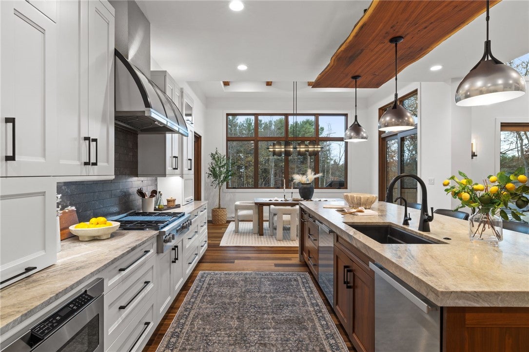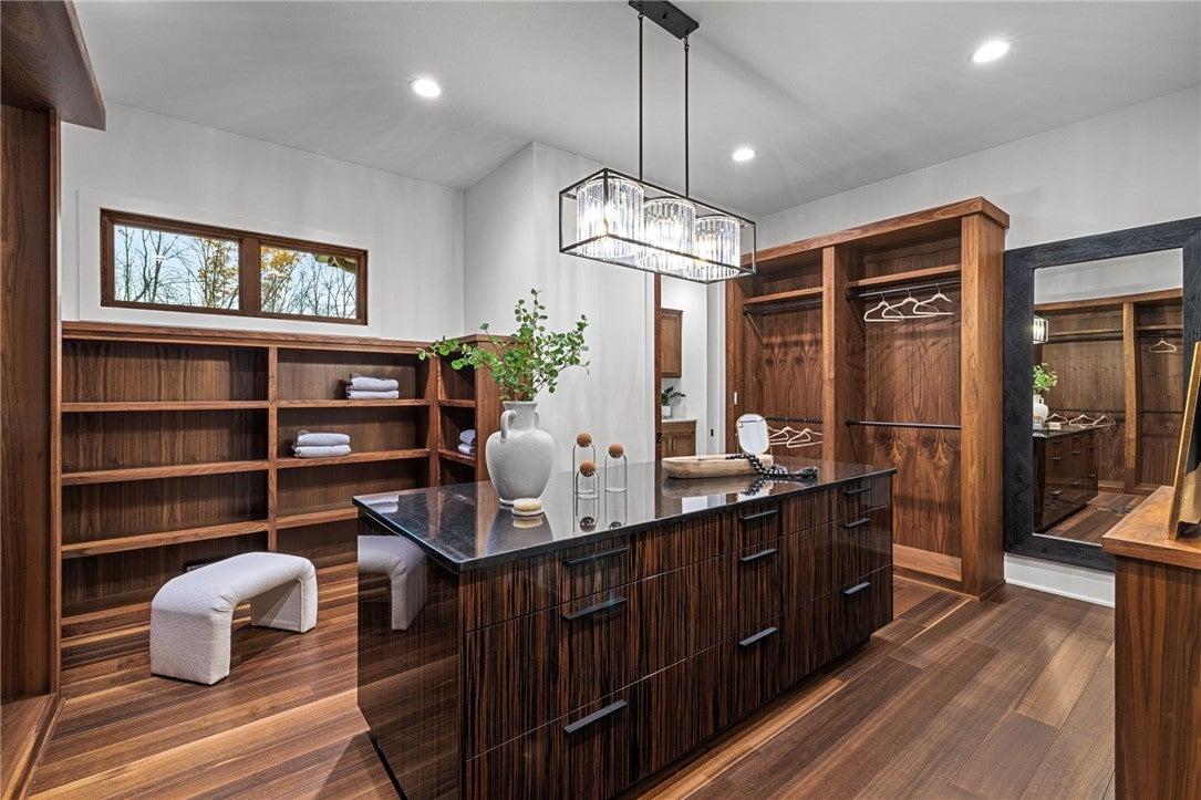 Set on 1.2 acres, this exceptional Madia Homes builders residence (2022) delivers top-tier craftsmanship and design! Enjoy a rare 5-car heated garage and a desirable flat rear yard near North Park. Tasmanian oak floors, walnut doors, and a Hubbardton Forge slate chandelier set the tone. The dramatic great room offers wood beam accents, a gas fireplace, and wall of windows.