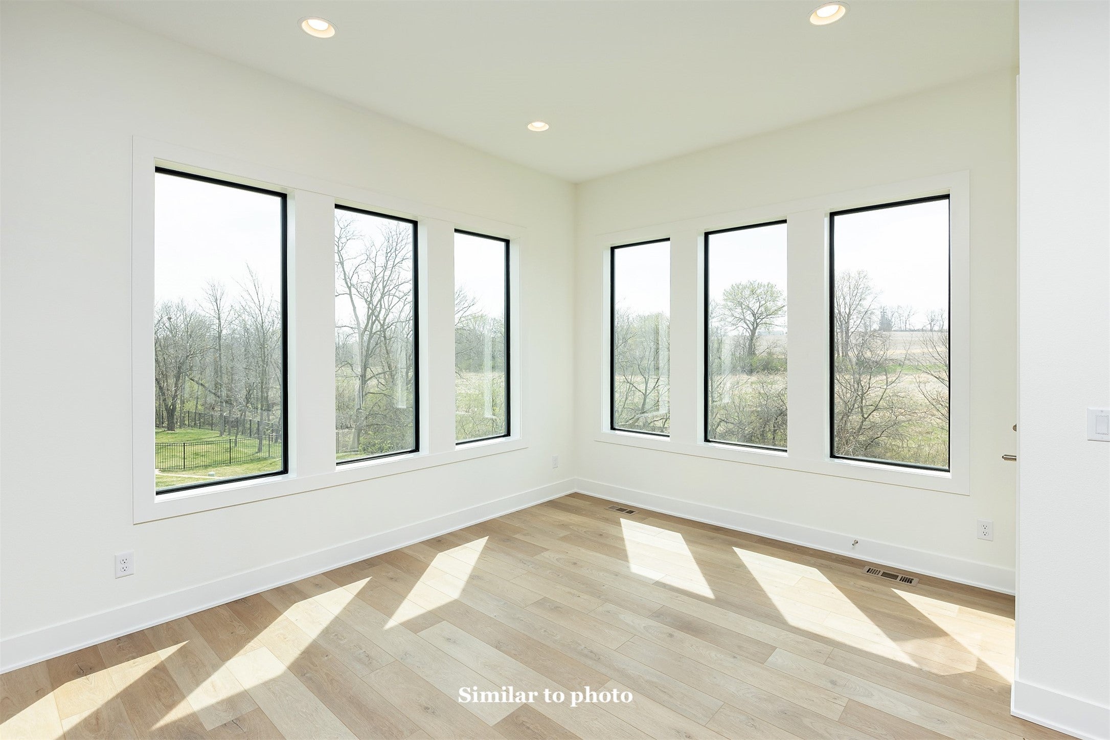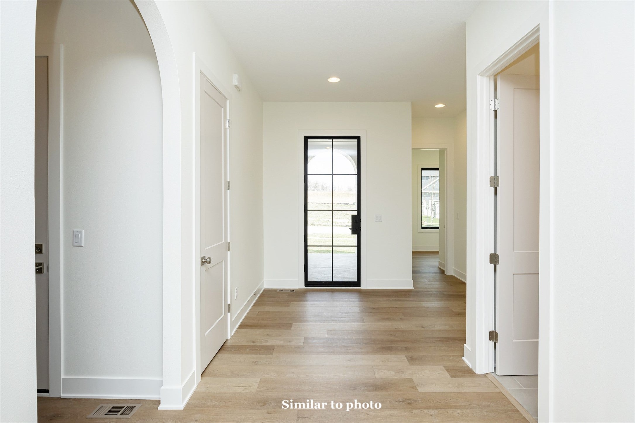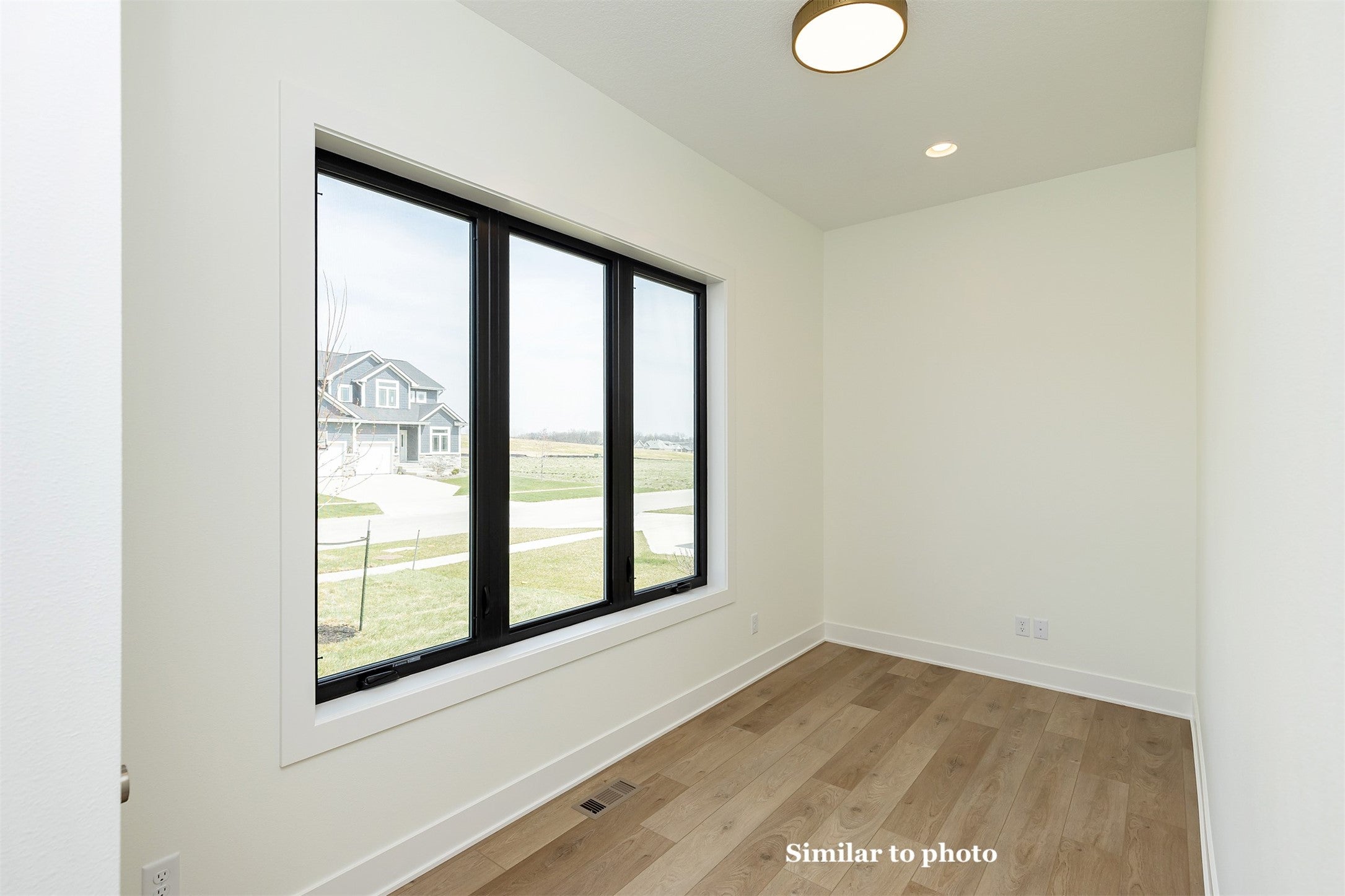 This home is a contemporary ranch plan, 4 bed, 3 bath, 3 car tandem garage with a full lite frosted glass garage door. 50 year presidential roof and Control 4 automated lighting package. The exterior consists of cedar shiplap siding, acrylic stucco and contemporary white stone.