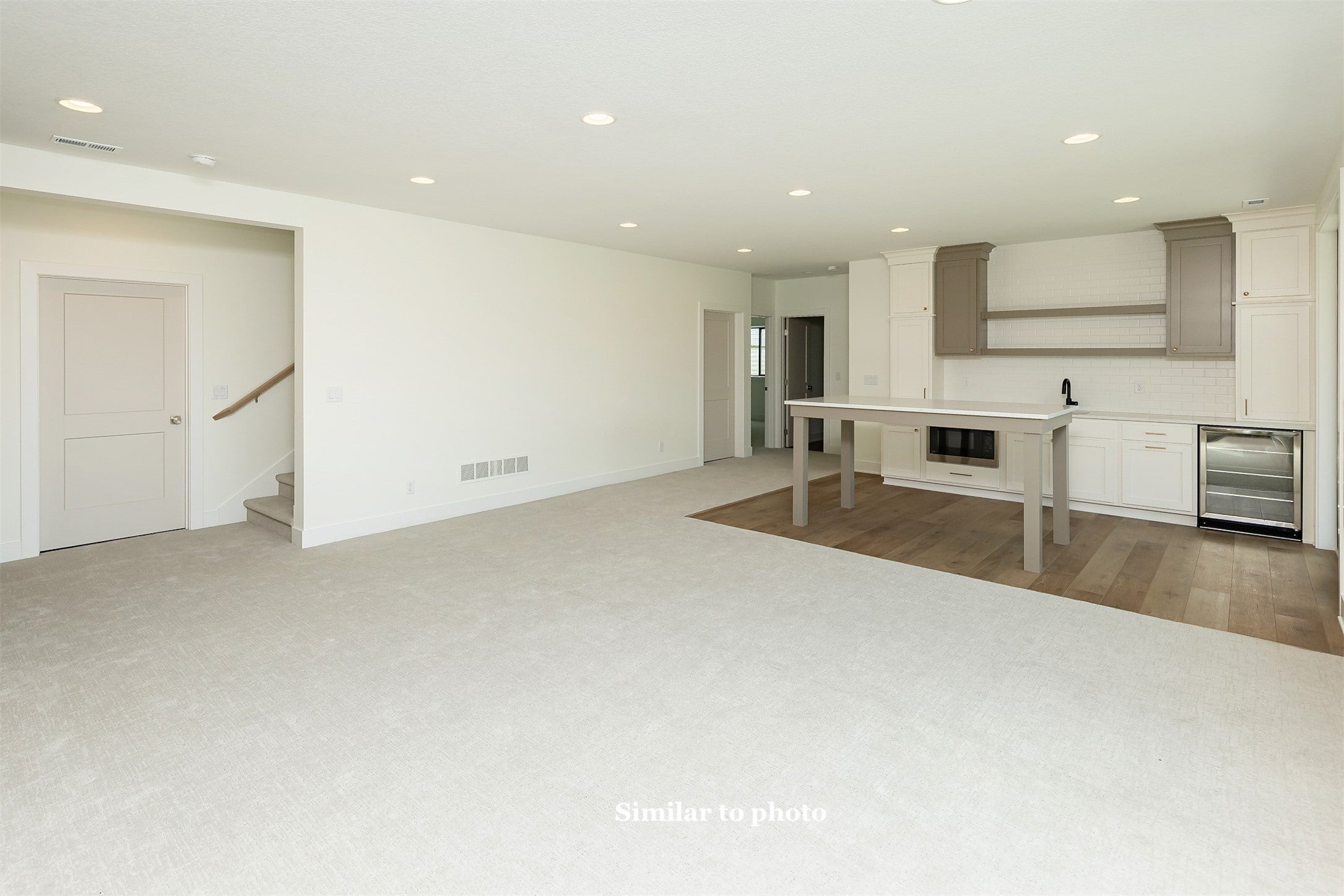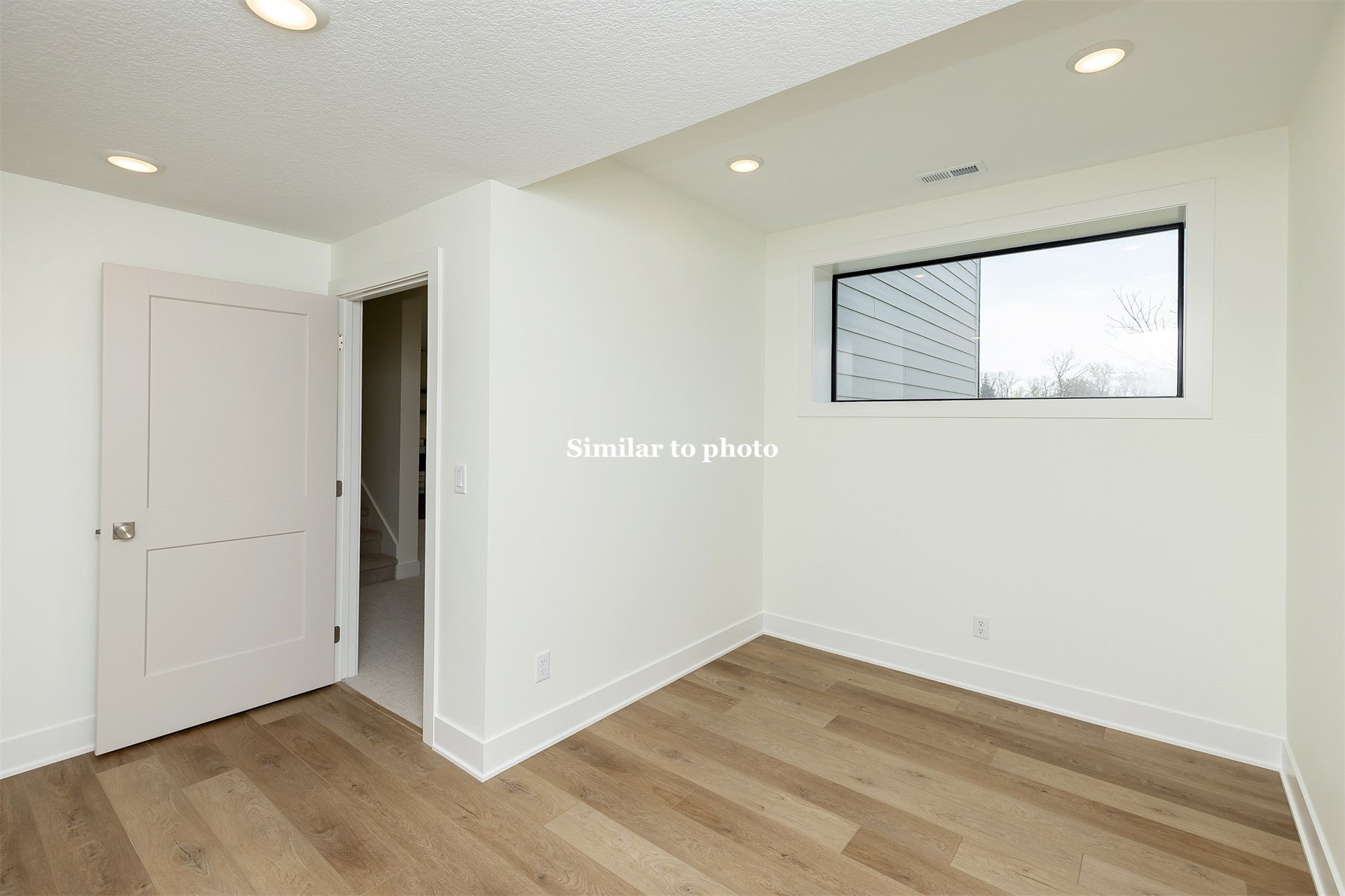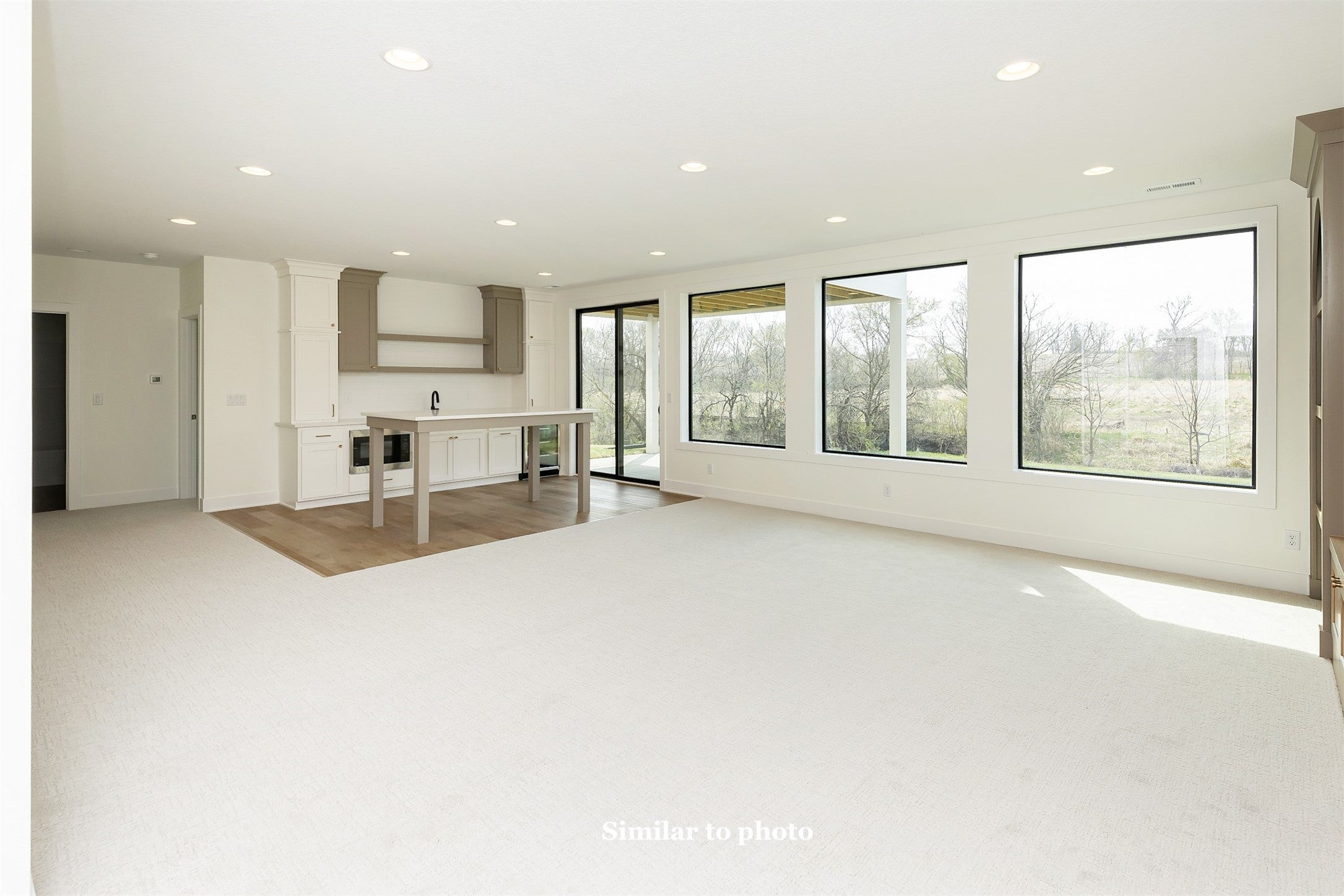 This home is a contemporary ranch plan, 4 bed, 3 bath, 3 car tandem garage with a full lite frosted glass garage door. 50 year presidential roof and Control 4 automated lighting package. The exterior consists of cedar shiplap siding, acrylic stucco and contemporary white stone. The kitchen comes complete with full overlay enamel cabinets, walnut floating shelves, under cabinet accent lighting, full GE Caf stainless appliance package with gas cooktop, refrigerator, dishwasher, speed cooker/microwave, convection oven, Mercury Gray Quartzite countertop and stainless farmhouse sink. The L shaped island consists of a wine refrigerator, bar sink, undercounter accent lighting and walnut accent strips on cabinet face with Mercury Gray Quartzite. Drop down vaults with walnut trim and LED accent lighting. Linear contemporary fireplace with large format onyx tile and floating shelves with accent lighting. Vaulted ceiling in great room with 12-foot scissor door, floor to ceiling windows, walnut hardwood floors & trim package. Master has drop down vault with walnut trim package accented with LED lighting, 8 ft slider to covered deck. Oversize master bath with walnut cabinets, upgraded contemporary tile and accent lighting. The Lower-level great room, with entertainment center, full bar, 4th bedroom with walk-in closet, bath complete this plan as a true entertainment home, comfortable and private. Home is 5-star energy rated, 95% efficiency furnace, 50-gallon hot water heater and blown in batt insulation. Added Bonus of a 1000 square feet of Unfinished area with the ability to have 2 more Bedrooms, Jack and Jill Bathroom, as well as an expanded Great Room of 300 additional square feet.