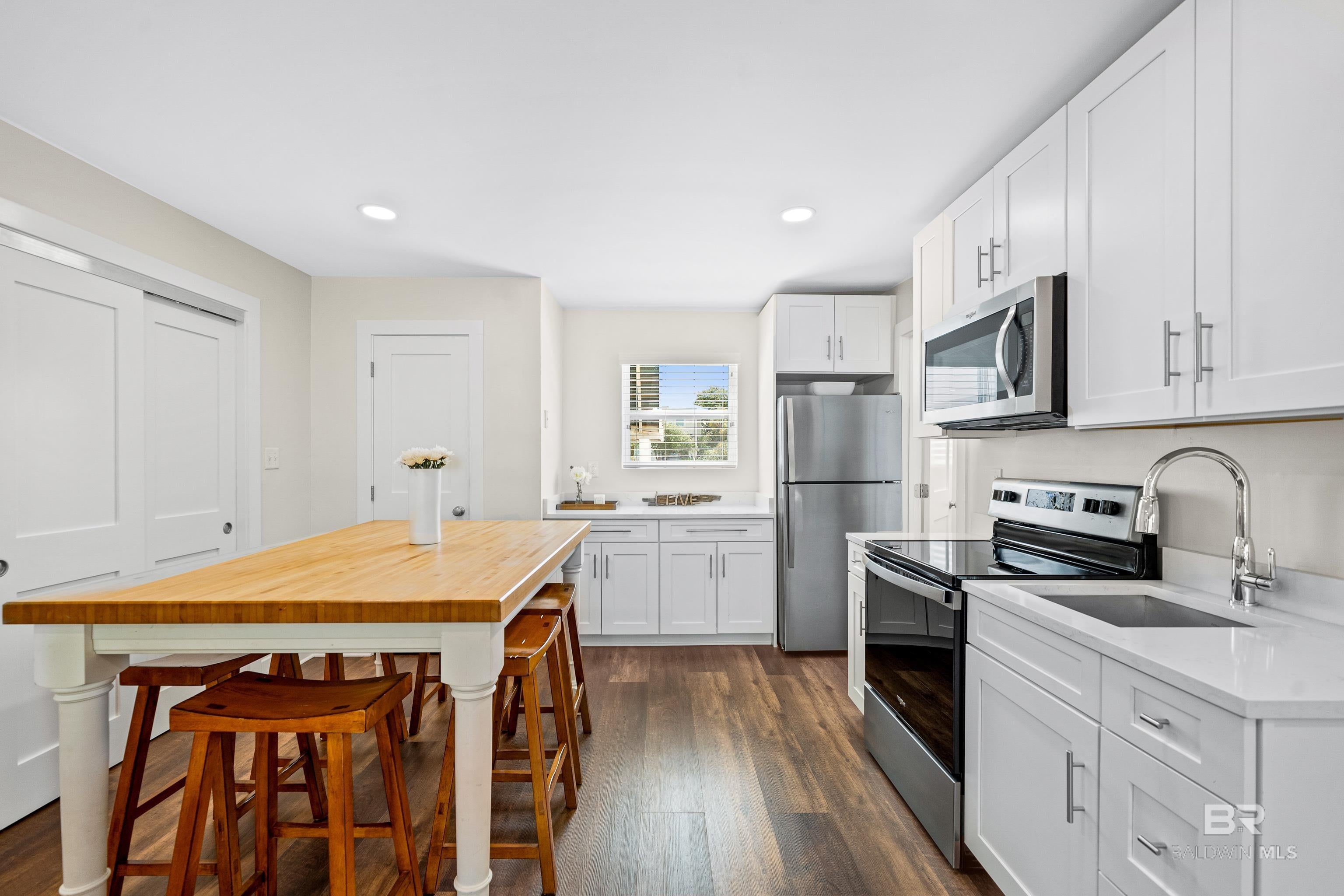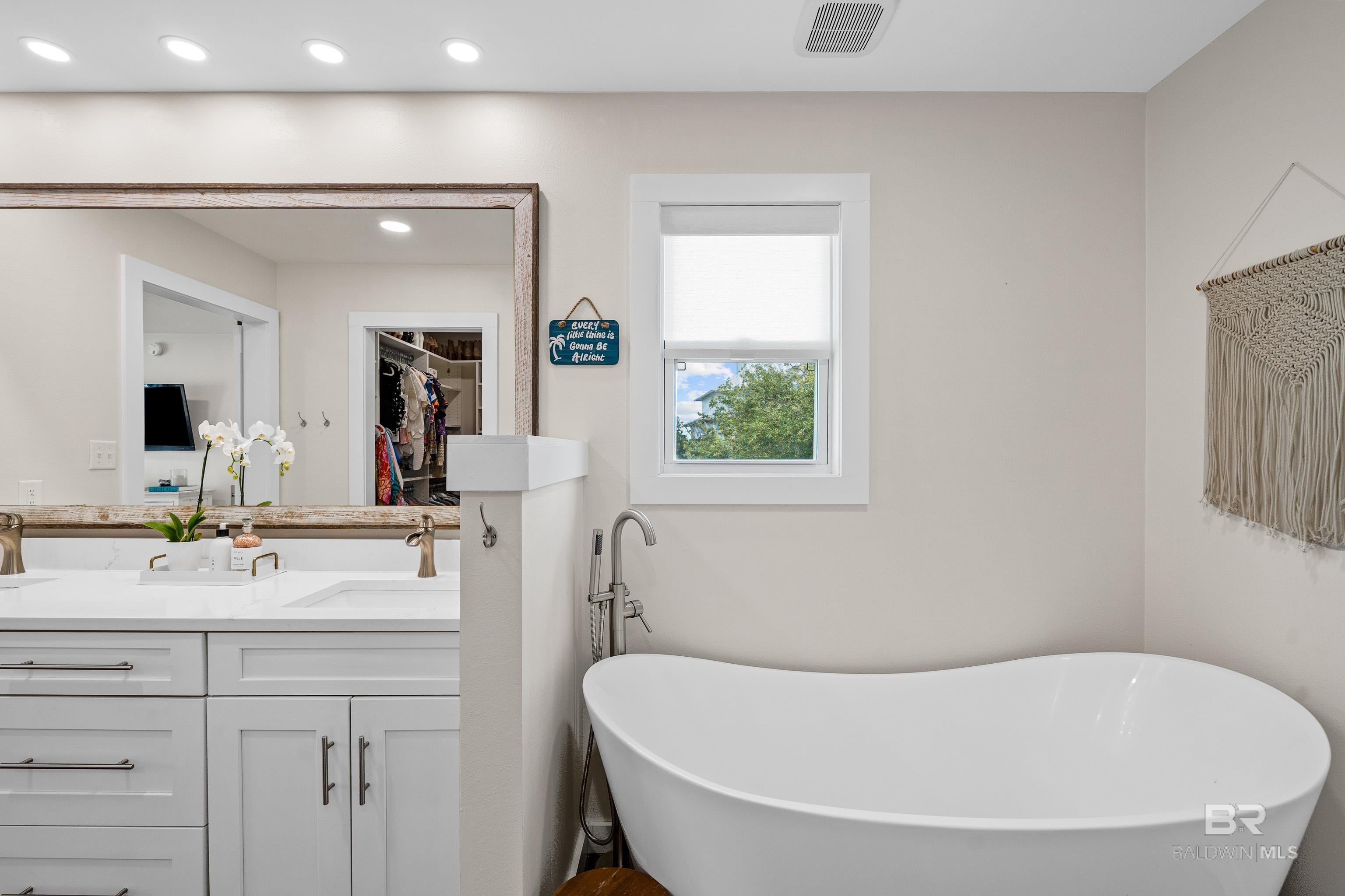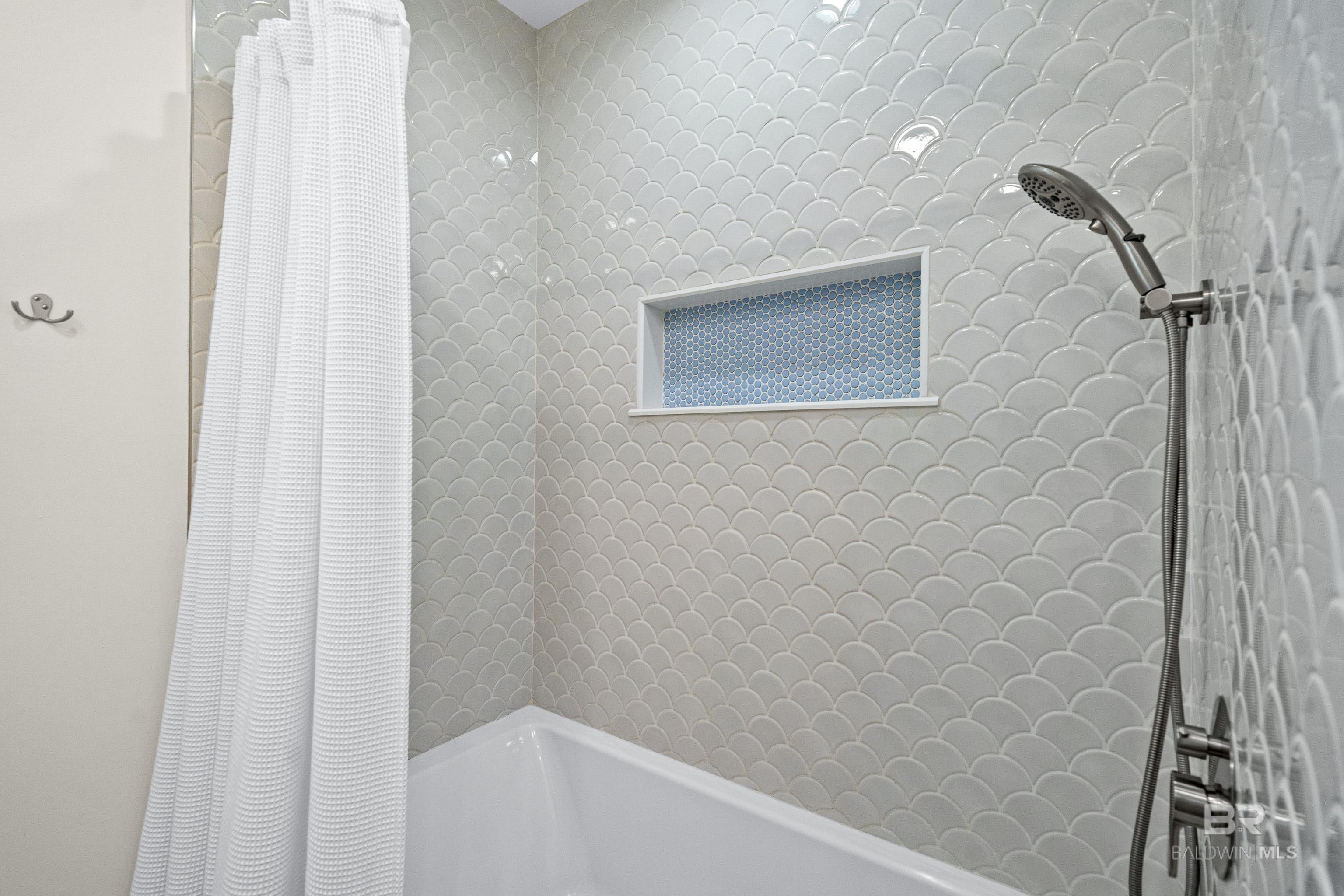 Turnkey Ono Island home with a pool and deeded water access! This beautifully updated property is situated on a spacious corner lot and has been crafted into an outdoor oasis designed with a heated pool and spa, Trex Transcend decking, fenced backyard, covered rear patio, elevated rear porch, electric sunshade, and dense tropical landscaping that provides and abundance of privacy. The backyard connects to a deeded water access that leads to a pristine beach along Bayou St John where you can swim, kayak, paddle board, fish, crab, gig flounder, play in the sand, and lounge. After a day under the sun, you are welcomed by a lovely Fortified Silver home that was fully remodeled in 2019 and boasts two separate living quarters. The ground level living area seamlessly connects to the backyard and offers a spacious living room, over-sized bedroom, dining area, a bathroom with a tiled walk-in shower, full size washer and dryer, and a fully equipped kitchen. The elevated main level houses the master suite, two guest bedrooms, a guest bathroom, and the primary kitchen. The kitchen features a large island with seating for six, under-cabinet lighting, an abundance of storage, and stainless-steel appliances. Throughout the home, you will find COREtec XL luxury vinyl plank floors, wood shaker cabinets with soft close doors and drawers, solid panel doors, recessed lighting on dimmers, Misterio quartz countertops by Vicostone, and a Sonos sound system. The spacious master suite includes a sitting area, double vanity, freestanding tub, tiled walk-in shower, private water closet, and a custom closet with a stack washer and dryer. The guest bathroom is outfitted with a double vanity and a tiled tub/shower. The home also features James Hardie siding, new windows, storm shutters, an outdoor shower, landscape lighting, an irrigation system, storage room, single carport, and a loop driveway with ample room to park multiple vehicles and boats/trailers. Buyer to verify all information during