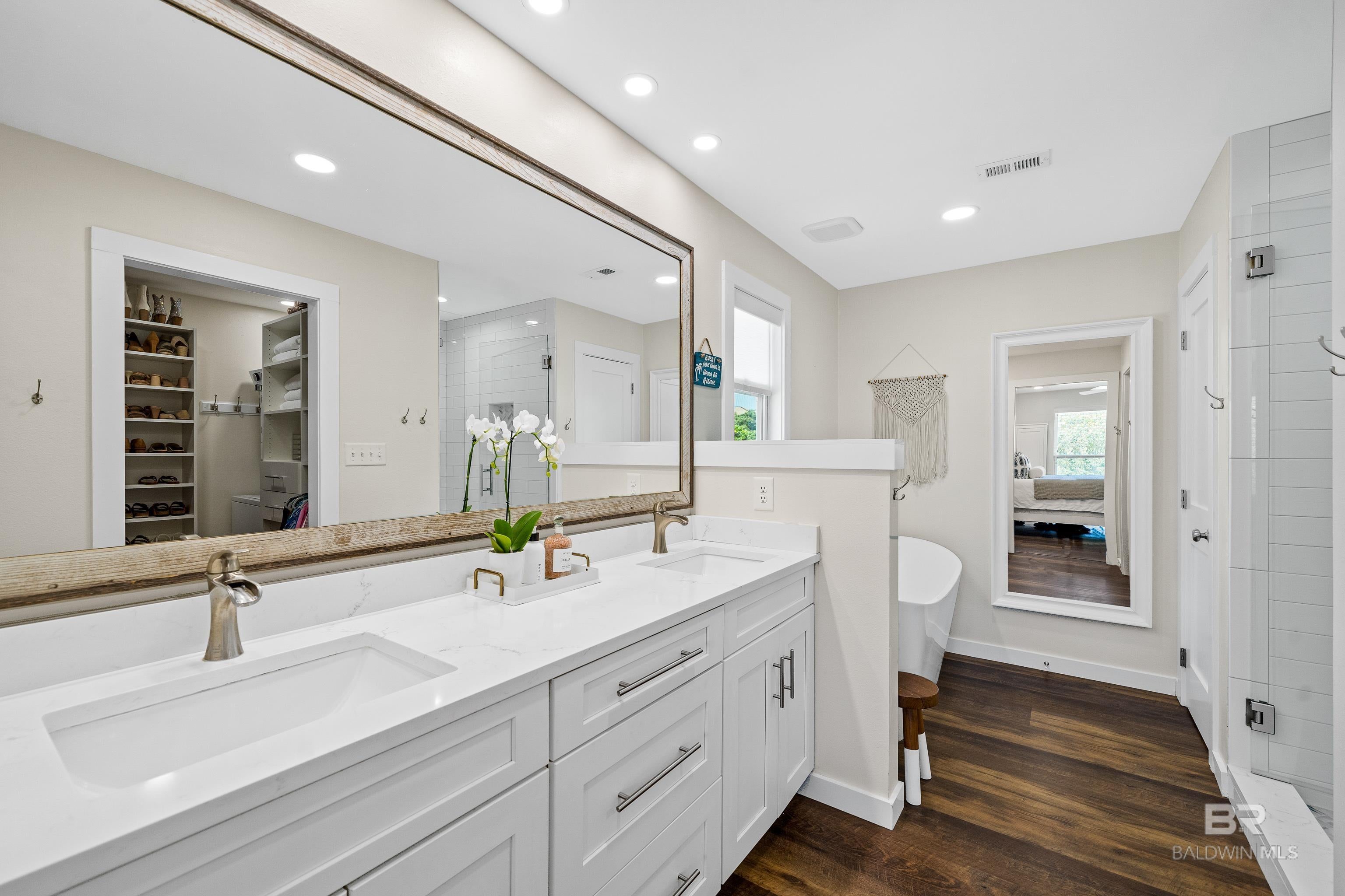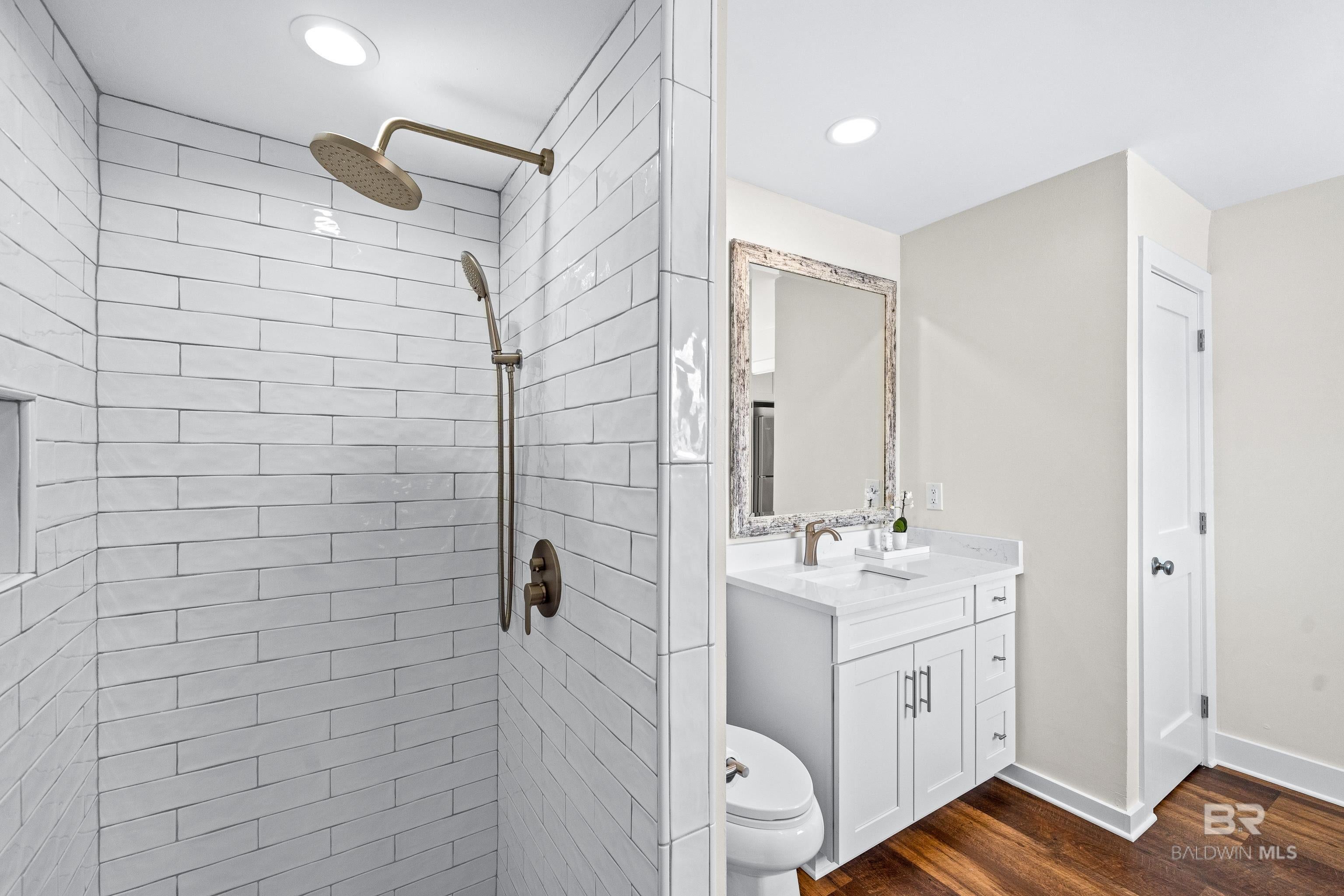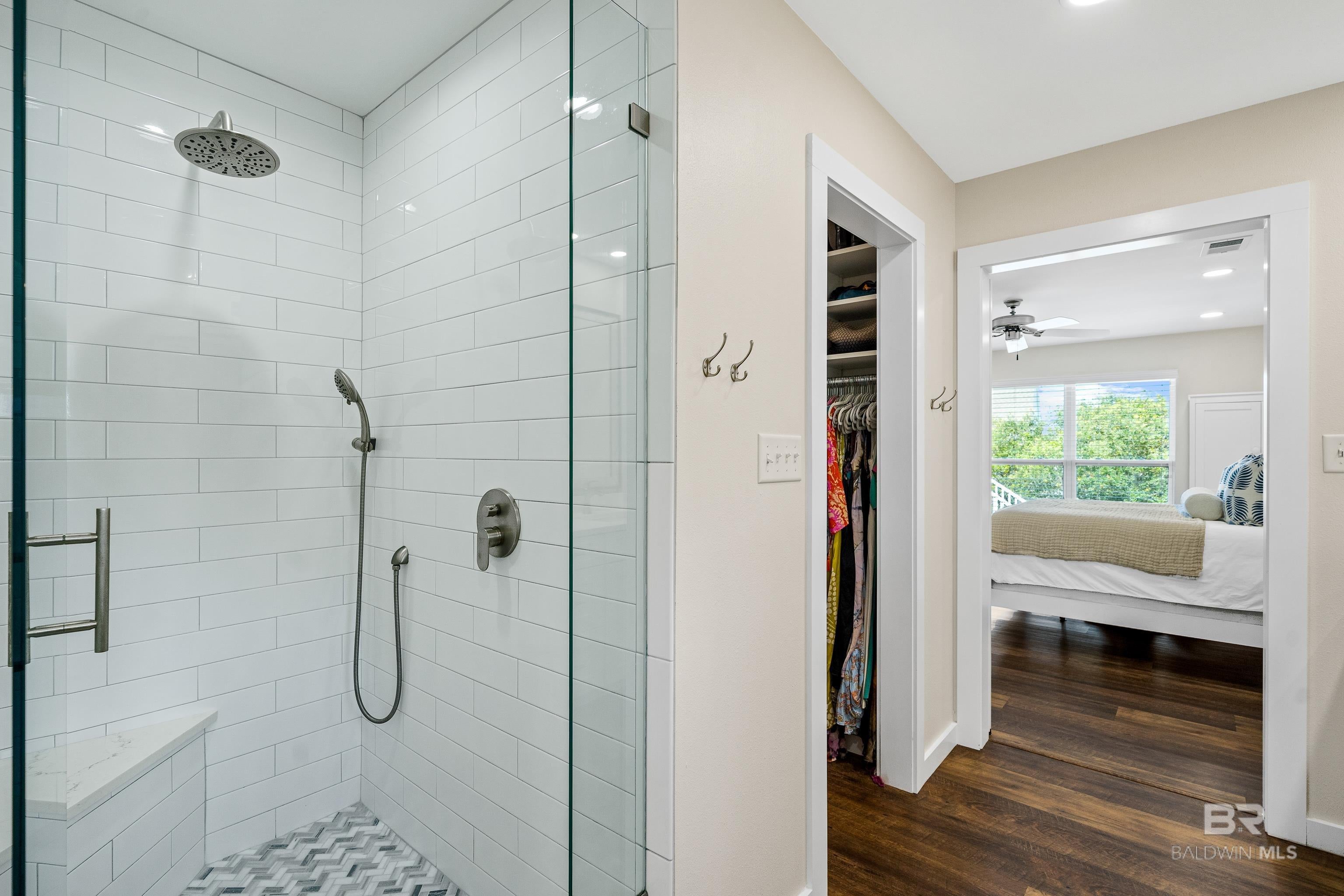 Turnkey Ono Island home with a pool and deeded water access! This beautifully updated property is situated on a spacious corner lot and has been crafted into an outdoor oasis designed with a heated pool and spa, Trex Transcend decking, fenced backyard, covered rear patio, elevated rear porch, electric sunshade, and dense tropical landscaping that provides and abundance of privacy. The backyard connects to a deeded water access that leads to a pristine beach along Bayou St John where you can swim, kayak, paddle board, fish, crab, gig flounder, play in the sand, and lounge. After a day under the sun, you are welcomed by a lovely Fortified Silver home that was fully remodeled in 2019 and boasts two separate living quarters. The ground level living area seamlessly connects to the backyard and offers a spacious living room, over-sized bedroom, dining area, a bathroom with a tiled walk-in shower, full size washer and dryer, and a fully equipped kitchen. The elevated main level houses the master suite, two guest bedrooms, a guest bathroom, and the primary kitchen. The kitchen features a large island with seating for six, under-cabinet lighting, an abundance of storage, and stainless-steel appliances. Throughout the home, you will find COREtec XL luxury vinyl plank floors, wood shaker cabinets with soft close doors and drawers, solid panel doors, recessed lighting on dimmers, Misterio quartz countertops by Vicostone, and a Sonos sound system. The spacious master suite includes a sitting area, double vanity, freestanding tub, tiled walk-in shower, private water closet, and a custom closet with a stack washer and dryer. The guest bathroom is outfitted with a double vanity and a tiled tub/shower. The home also features James Hardie siding, new windows, storm shutters, an outdoor shower, landscape lighting, an irrigation system, storage room, single carport, and a loop driveway with ample room to park multiple vehicles and boats/trailers. Buyer to verify all information during