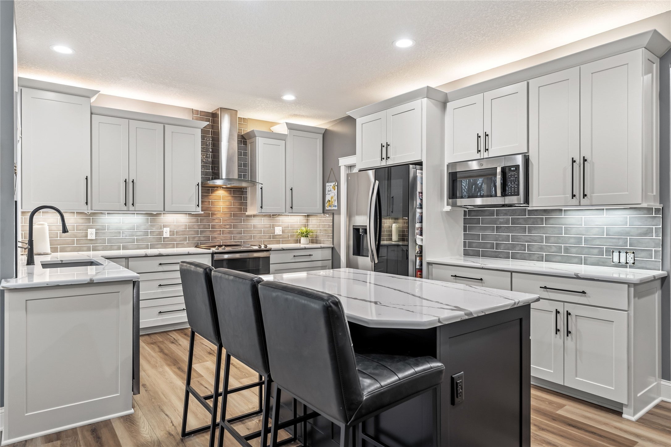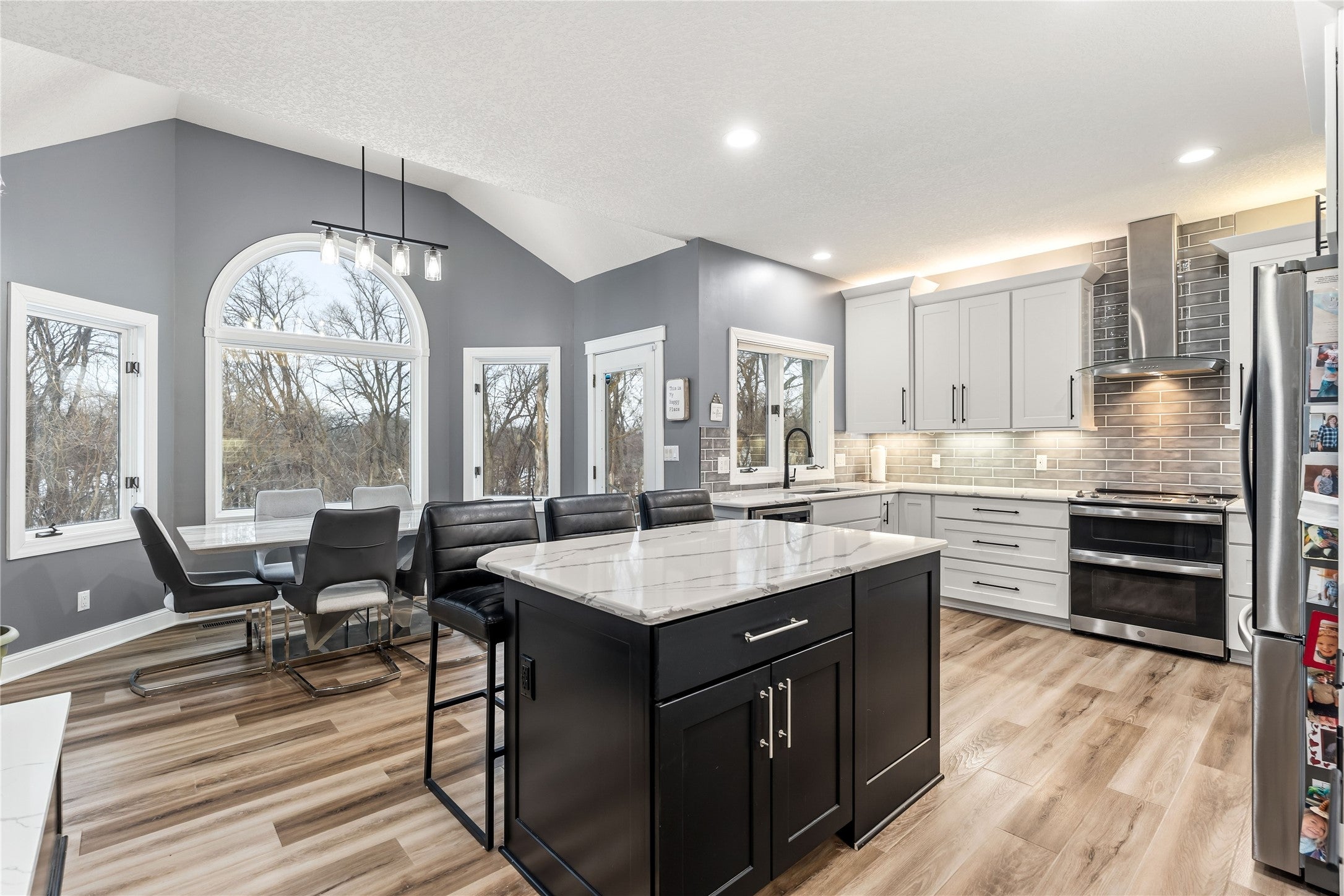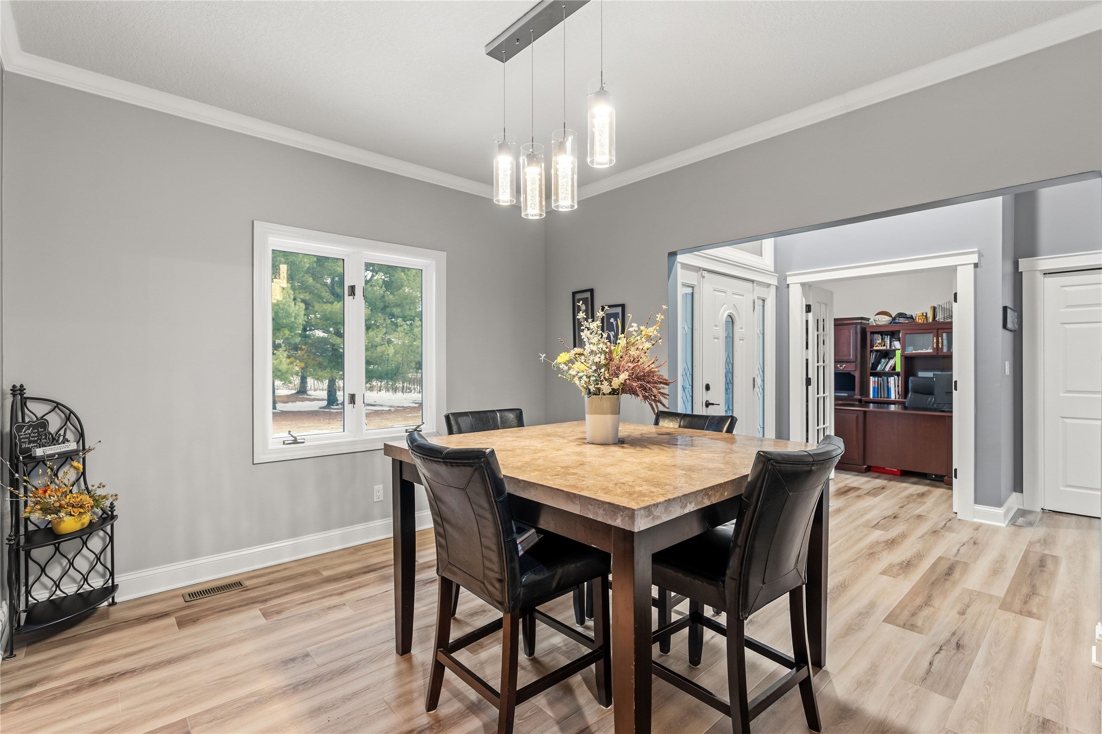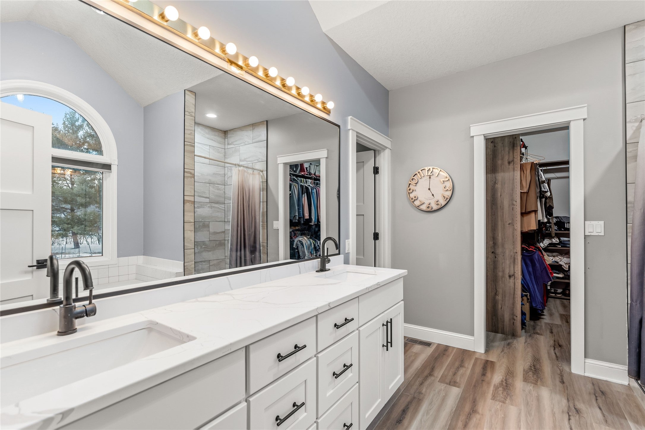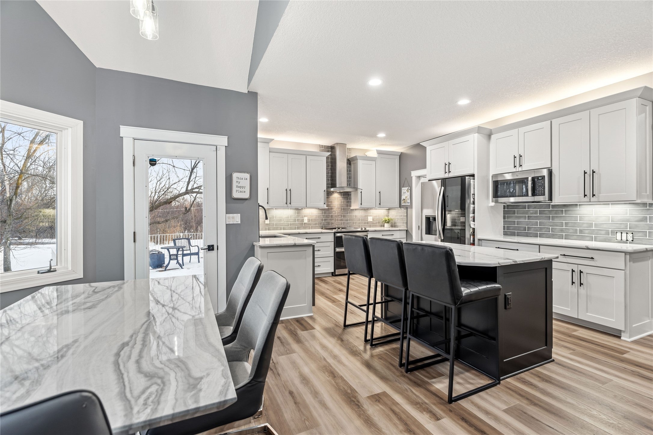 Show stopper! Wait until you see this stunning 3739 sq/ft, 4 bdrm, 3.5 bath 2022 PARADE HOME! Walk in and notice the beautiful great rm with a striking fireplace circled by built-ins and floating shelves-also highlighted by an impressive coffer beamed ceiling. Modern LVP flooring flows thought the entire area and into the stunning quartz kitchen w/enormous island & huge working pantry! Sunlight from the magnificent 4 season rm floods the entire area! Popular split bdrm- King size Master w/Luxurious Bath &Modern Tiled Shower! French doors open to the 1st flr office! Big western windows beam light through the enormous LL family rm w/wet bar! LL Workout Room, 4th bdrm. & bath! 3 car gar is heated & insulated w/finished walls! Attention to detail & top quality!