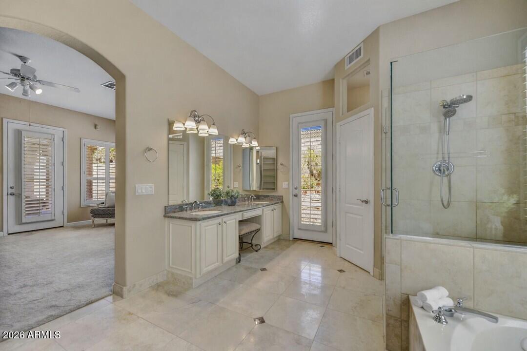 Beautifully Updated Single Level 4 Bed/2.5 Bath/3-Car Garage w/ Pool in Gated North Scottsdale Community of Los Portones. Fantastic Location at Scottsdale Road & Pinnacle Peak. Updated and Well Maintained. Wheelchair Friendly. Features: High Ceilings, No Interior Steps, Polished Travertine Floors, Wooden Shutters, Updated Kitchen W/Island & Breakfast Bar Which Opens Seamlessly to Casual Dining and Family Room with Picture Window Views to Backyard. Primary Suite Offers Ensuite Bath W/ Walk-In Shower, Separate Tub And Direct Access to Backyard Pool. Outdoor Living Includes Lap Style Pool, Travertine Paved Covered Patio w/TV and Low Maintenance Mature Desert Scape w/Turf. New Heat/Cool (2017), New Roof (2017), Updated Kitchen (2020). A Great Lock & Leave Classic with Arizona Casual Comfort!