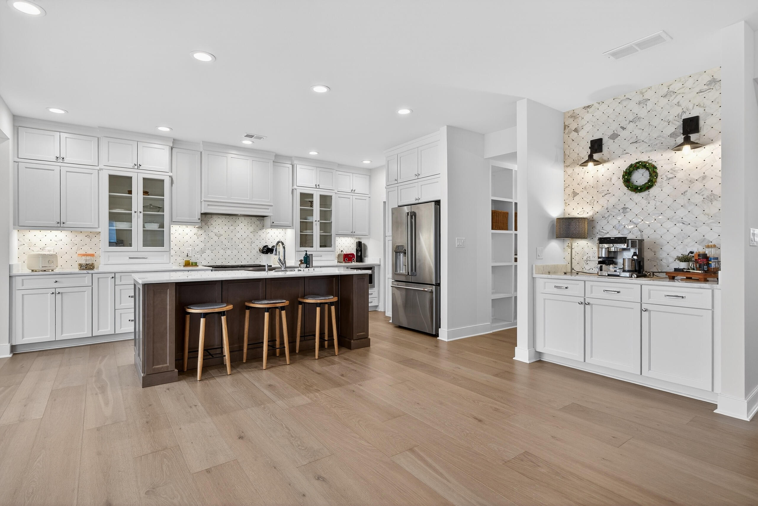 Elegant luxury townhome nestled in the sought-after Hillside Towns neighborhood, offering privacy and a serene setting. An inviting foyer opens to this immaculate residence, thoughtfully designed with high-end finishes that balance style and everyday livability.