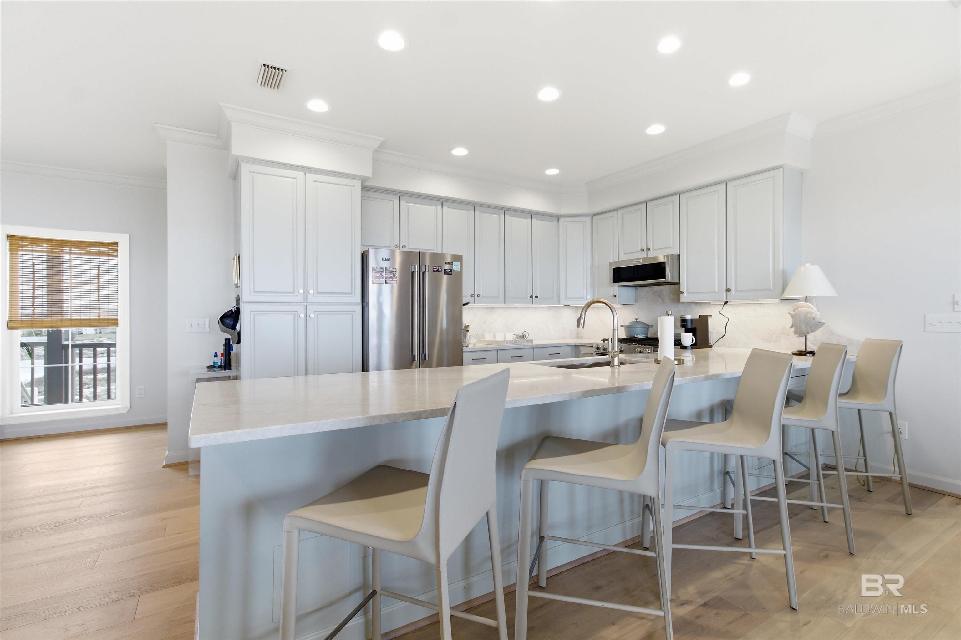 Rare Gulf-Front Opportunity West Beach, Gulf ShoresVery rare non-rental, one-level Gulf-front home situated on a private 100-foot lot on sought-after West Beach in Gulf Shores. This beautifully updated 5-bedroom, 4-bath residence offers the perfect blend of comfort, privacy, and investment potential.Completely renovated in 2021, the home features new interior and exterior paint, updated plumbing and electrical, new flooring throughout, new HVAC, and new tankless water heaters. Electronic interior blinds provide added convenience and effortless light control throughout the home. The spacious primary suite includes heated floors for an extra touch of luxury. A stunning electric fireplace with limestone mantle creates a warm focal point in the main living area. Pool plans will convey with home.All living space is conveniently on one level with covered parking below. Additional upgrades include a new metal roof (2020), whole-home stereo system with interior and exterior speakers (2021), and a security/alarm system (2021).With 100 feet of direct Gulf frontage and strong rental potential, this property offers flexibility as a primary residence, second home, or income-producing investment.A true West Beach gem Gulf-front properties like this rarely come available. Buyer to verify all information during due diligence.