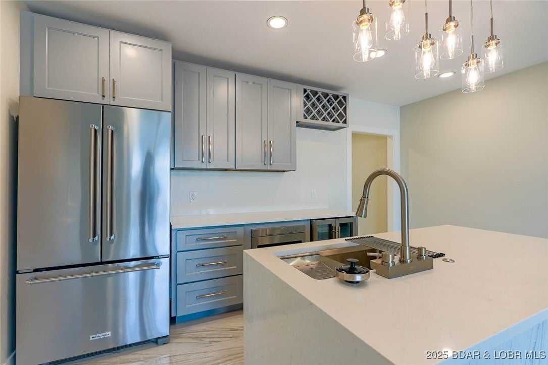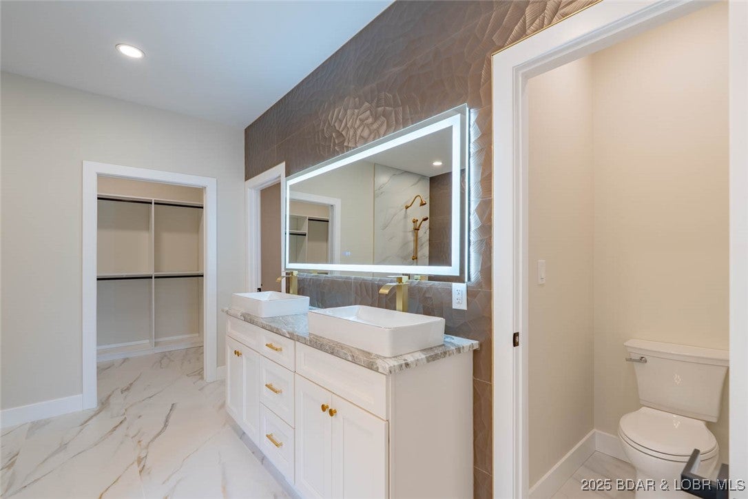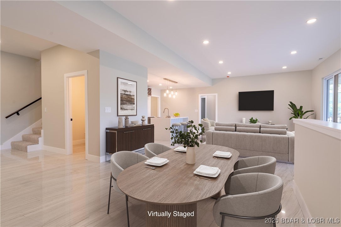 Stunning brand-new lakefront home offering the ultimate in luxury living. Grand entry welcomes you with soaring ceilings and a wall of windows with breathtaking views. The great room flows seamlessly into a gourmet kitchen with high-end appliances, formal dining, and a kitchen nook leading to expansive concrete decks. The lakeside primary suite features a spa-like bath, large walk-in closet, and access to the laundry room. The main level offers an additional lakeside suite and a third en-suite bedroom. Lower level includes a family room, three additional bedrooms with baths, a bonus room with custom wine cellar, second laundry, and ample storage. The pool room with bar, full bath, and storage opens directly to the 13x27 pool and large deck area. Dock featuring a 16x50 slip, 12x36 slip, PWC slip, and a filled-in 12x50 slip easily convertible for a performance boat. Oversized 3-car garage plus additional parking, 10 golf cart path with turnaround at the waters edge, deep-water cove, city water and sewer, and quick access to the main channel and amenities. Ideal as a luxury rental or executive retreat. Optional second-tier Lot 46 availableperfect for a guest home or man cave.