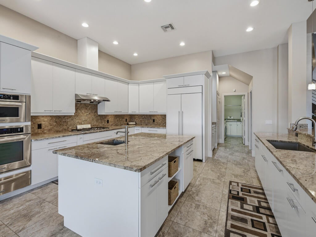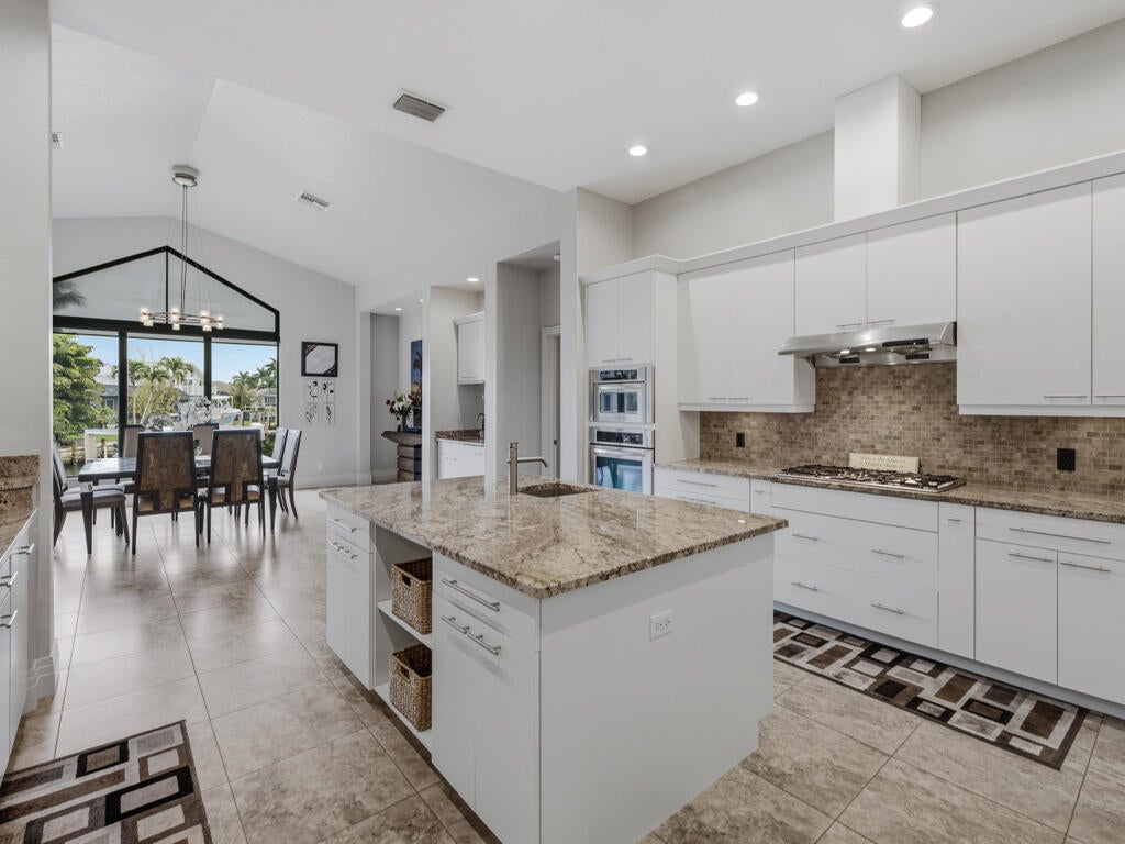 Magnificent waterfront home features 100 of waterfrontage, a short egress to the Gulf, and a FULL RENOVATION by Slocum and Christian - including a second story addition. With trademark style, you will be greeted by soaring ceilings, dramatic staircase, and ample natural light upon entering this stunning 4 bedroom plus spacious media room, 3 and a half bath, 3 car garage home. The main floor boasts a desirable open floor plan flowing out to the spacious lanai, ideal for entertaining indoors and out. The kitchen is sure to delight any chef with granite counters, white cabinetry, large center island, KitchenAid stainless appliances, gas cooktop, and walk-in pantry. The formal dining room offers beautiful water views from numerous windows and the convenience of a custom wet bar. The master bedroom, located on the main floor, is a private retreat complete with stunning views and en-suite bath with walk-in shower, soaking tub, dual vanities, and walk-in closet. With another master suite on the main floor and two additional guest bedrooms on the second floor, there is plenty of space for friends and family. In addition to guest bedrooms, there is a massive additional room upstairs - create a home theater, bunk room, home gym, or office. The gorgeous lanai features beautiful wood ceiling details, pool, spa, and brand-new panoramic screens to enhance the views. Fisherman and boating enthusiasts alike will appreciate the large dock complete with 2 lifts and access to the Marco River within minutes of leaving your backyard. The 20,000lb lift will accommodate a 38 boat and the 10,000lb lift will accommodate a 25 boat. 5 new green underwater dock lights were recently added, enjoy watching sea life at night. The lush, tropical landscaping and zoysia grass lawn enhance the curb appeal of this exquisite home. The mature lemon, banana, and avocado trees allow you to pick fresh produce without ever leaving your yard. There has been no detail overlooked in this exceptional home.