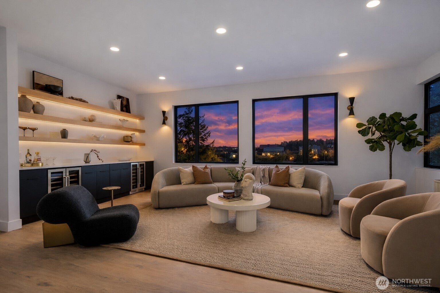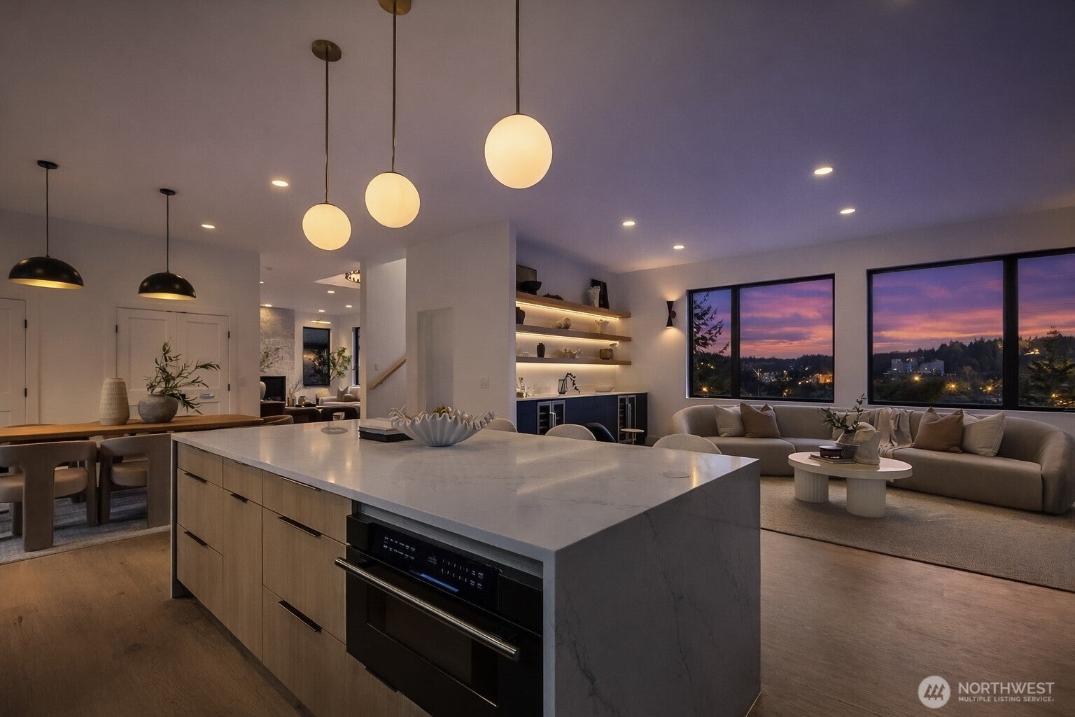 Introducing the S&S Collection Sexy & Sophisticated Edition, a striking showcase of elevated design, refined finishes, and intentional craftsmanship. Thoughtfully curated for both everyday comfort and unforgettable entertaining, the home reveals a seamless hidden walk-in pantry, dual laundry areas for effortless living, and a dramatic, expansive wet bar with dual beverage coolers perfectly positioned to capture breathtaking sunrise and sunset horizons. Walls of glass frame sweeping skyline and territorial views, filling the interiors with natural light while creating a sense of calm, privacy, and retreat. Every space has been designed to balance sophistication with warmth a home that feels as beautiful as it looks.Ideally located in one of Bellevues most sought-after neighborhoods, residents enjoy access to top-rated schools, nearby parks and lakes, and convenient proximity to I-90, I-405, Downtown Bellevue, premier dining, shopping, and everyday essentials all while returning home to a peaceful sanctuary above it all. Homes of this caliber and presence are rarely offered an opportunity to own not just a residence, but a lifestyle