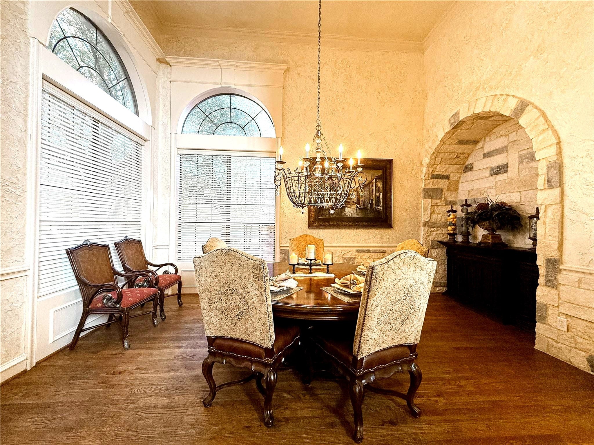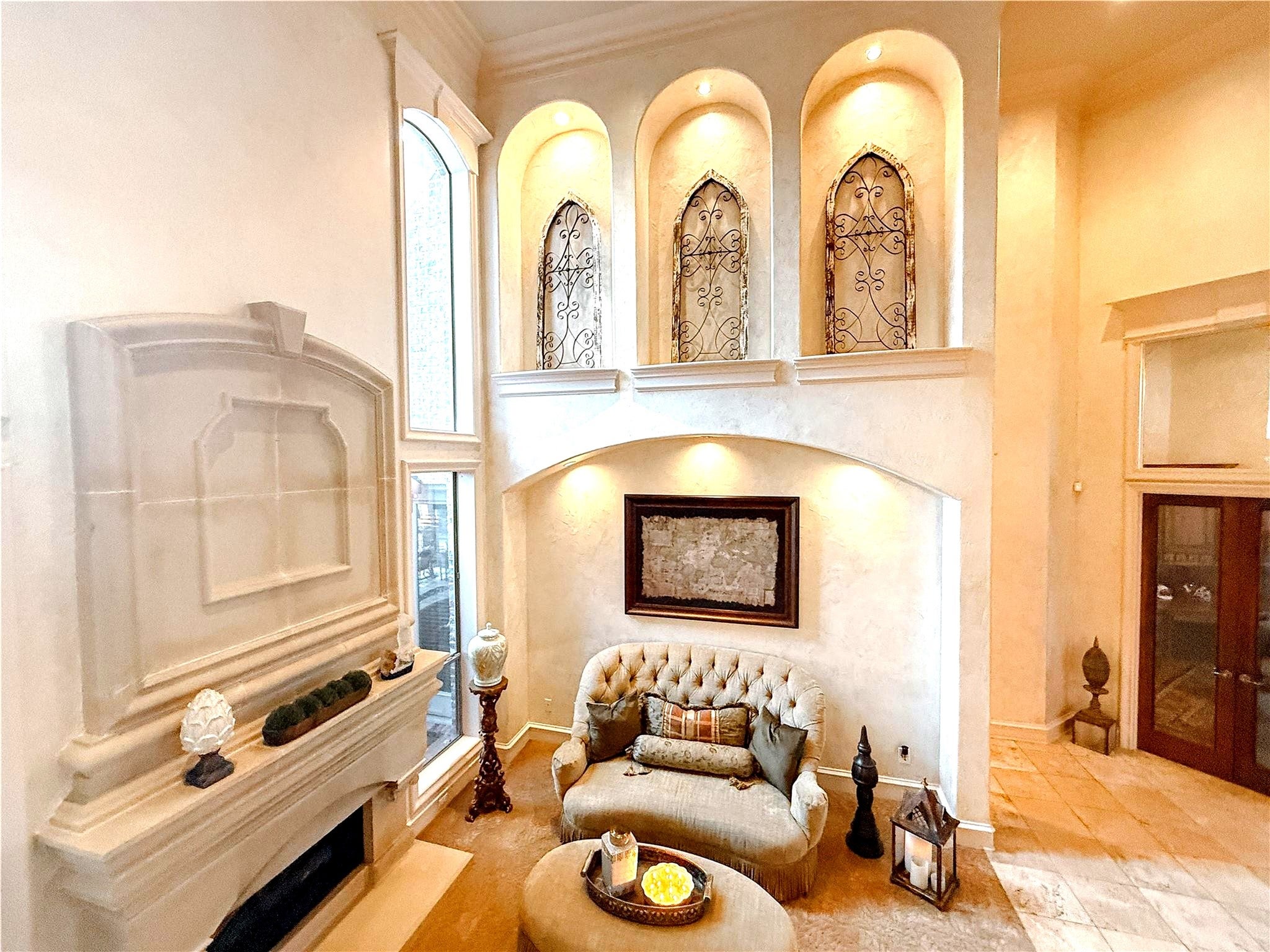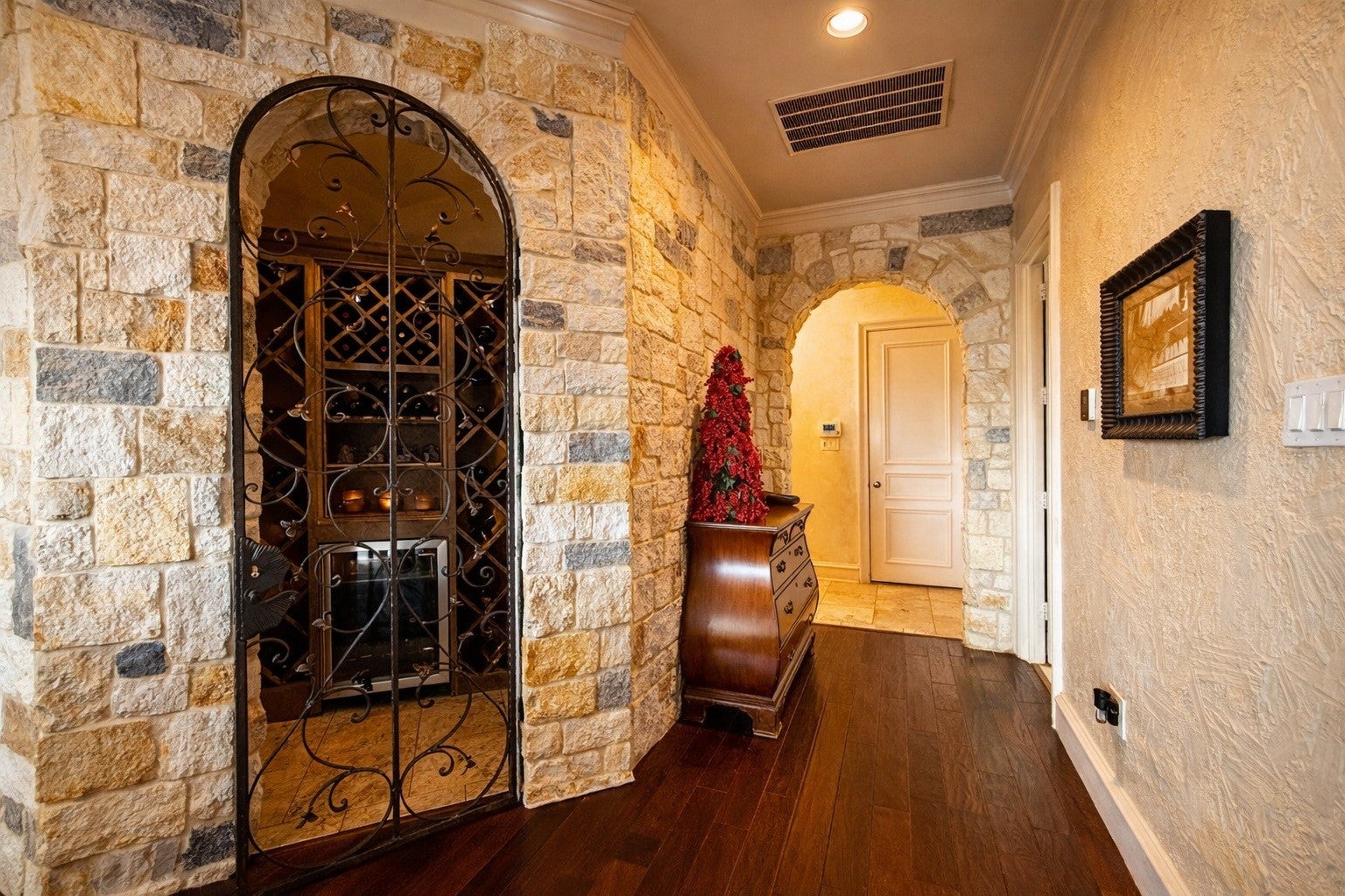 Welcome to 1919 Kings Pass, Heath, Texas 75032 a breathtaking luxury estate nestled within the prestigious Buffalo Creek Country Club community in Heath. Just moments from the scenic shores of Lake Ray Hubbard, this remarkable residence offers refined elegance, resort-style amenities in a PRIVATE backyard, & elevated lifestyle of distinction. From its stately faade and manicured grounds to its grand architectural presence, this home makes an unforgettable first impression. Inside you will find European styling, a towering foyer, formal living and formal dining room. Plus a one of a kind ceiling and wall finishes in the media room, all done by a renowned designer and artist. Other great features include custom arched masonry work in the kitchen and living room, custom paint finishes, hammered tin ceiling in the office, 20 foot open ceilings, fully decked attic for storage, plus a wine cellar that holds 200 bottles of wine! Designed for both lavish entertaining and intimate everyday living, the open-concept layout seamlessly connects the living spaces to a chefs kitchen appointed with premium appliances including a double oven and gas cooktop, custom cabinetry, and an island. The first floor primary suite is a private sanctuary of indulgence. Unwind beside the fireplace in the spa-inspired ensuite bath, complete with a soaking tub, oversized walk-in shower, dual vanities, and a spacious custom closet. Step outside to your personal resort-style oasis. The backyard is an entertainers dream, featuring a sparkling swimming pool, relaxing hot tub, elegant pergola, built-in grill, and a stunning outdoor fireplace. Living within Buffalo Creek Country Club provides exclusive access to premier amenities, including golf, tennis, pickleball, and a clubhouse, enhancing the lifestyle this exceptional home affords. 1919 Kings Pass is more than a residence it is a statement of luxury, comfort, and prestige in one of Heaths most sought-after communities.