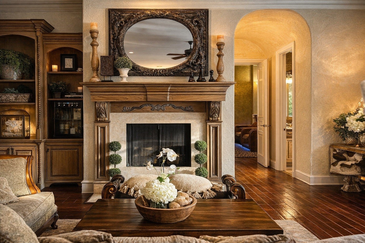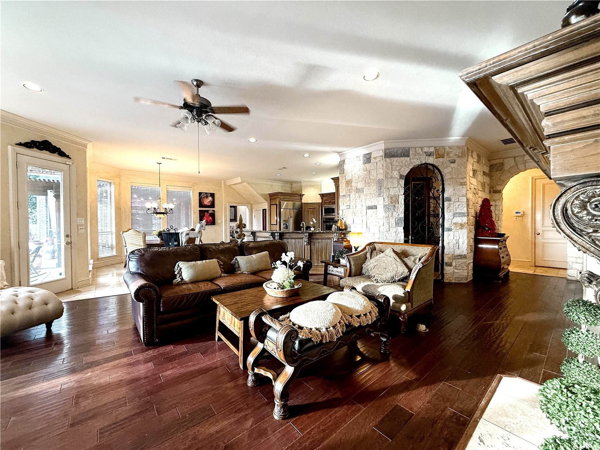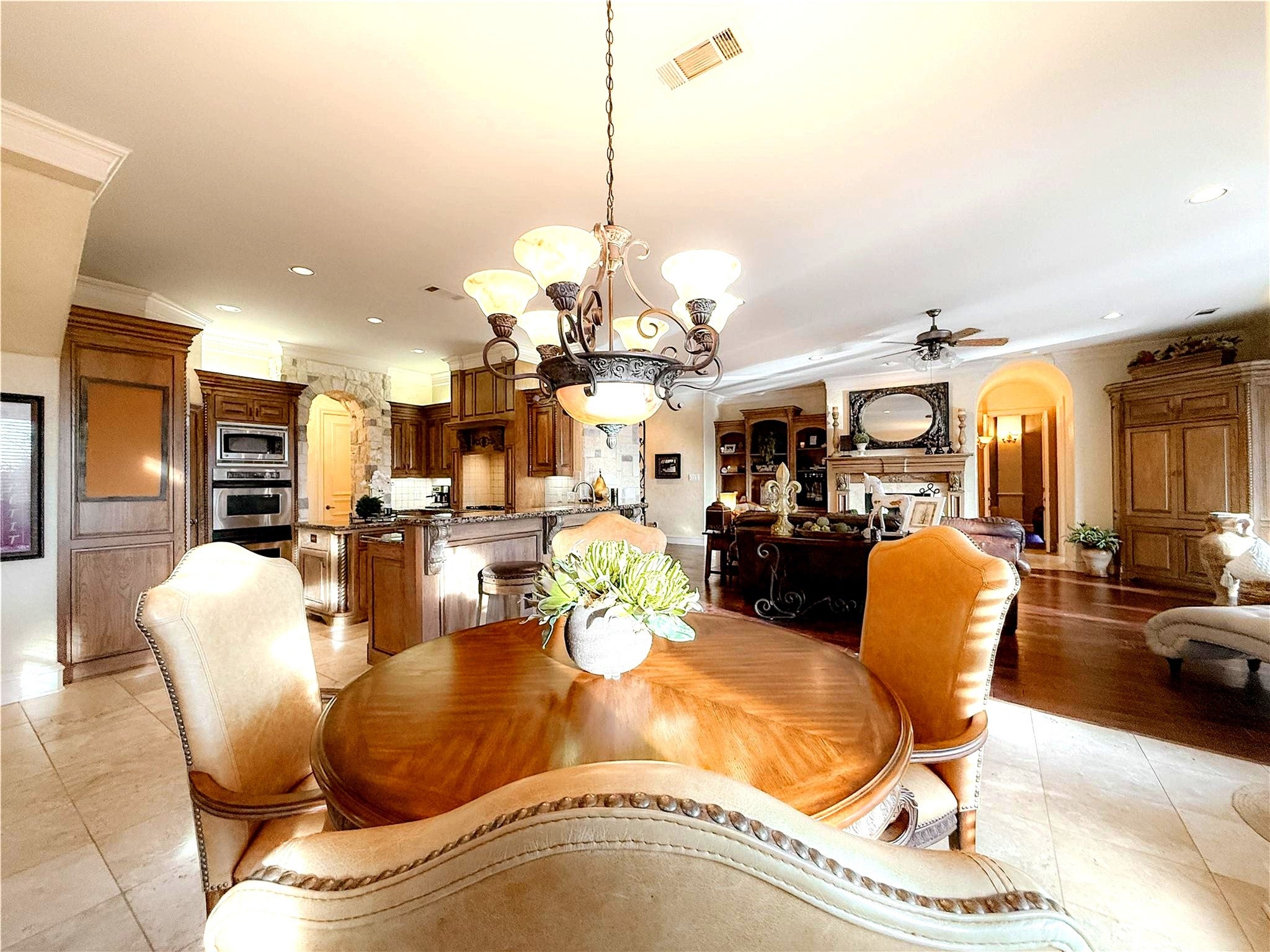 Welcome to 1919 Kings Pass, Heath, Texas 75032 a breathtaking luxury estate nestled within the prestigious Buffalo Creek Country Club community in Heath. Just moments from the scenic shores of Lake Ray Hubbard, this remarkable residence offers refined elegance, resort-style amenities in a PRIVATE backyard, & elevated lifestyle of distinction. From its stately faade and manicured grounds to its grand architectural presence, this home makes an unforgettable first impression. Inside you will find European styling, a towering foyer, formal living and formal dining room. Plus a one of a kind ceiling and wall finishes in the media room, all done by a renowned designer and artist. Other great features include custom arched masonry work in the kitchen and living room, custom paint finishes, hammered tin ceiling in the office, 20 foot open ceilings, fully decked attic for storage, plus a wine cellar that holds 200 bottles of wine! Designed for both lavish entertaining and intimate everyday living, the open-concept layout seamlessly connects the living spaces to a chefs kitchen appointed with premium appliances including a double oven and gas cooktop, custom cabinetry, and an island. The first floor primary suite is a private sanctuary of indulgence. Unwind beside the fireplace in the spa-inspired ensuite bath, complete with a soaking tub, oversized walk-in shower, dual vanities, and a spacious custom closet. Step outside to your personal resort-style oasis. The backyard is an entertainers dream, featuring a sparkling swimming pool, relaxing hot tub, elegant pergola, built-in grill, and a stunning outdoor fireplace. Living within Buffalo Creek Country Club provides exclusive access to premier amenities, including golf, tennis, pickleball, and a clubhouse, enhancing the lifestyle this exceptional home affords. 1919 Kings Pass is more than a residence it is a statement of luxury, comfort, and prestige in one of Heaths most sought-after communities.