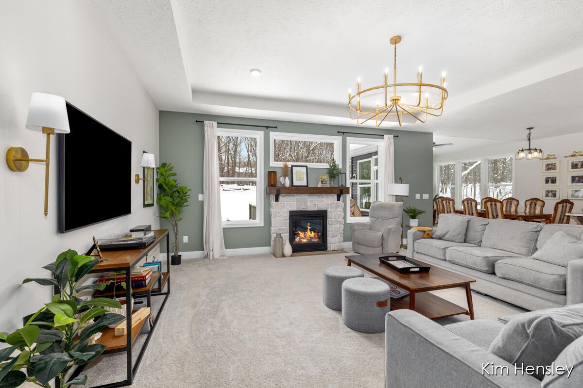 Why wait to build when you can move right into this nearly new, beautifully customized Maxwell home in the gated community of Squires Corner? Tucked into a peaceful, wooded setting, this home offers the perfect blend of privacy, comfort, and thoughtful designall in an amazing neighborhood just minutes from downtown Rockford and top-rated schools.The open and inviting main level was expanded to create a spacious living area made for everyday living and easy entertaining. The heart of the home is the kitchen, featuring a large quartz island, walk-in pantry, and warm, high-end finishes that flow effortlessly into the living space with a cozy gas fireplace. Oversized windows throughout fill the home with natural light and serene wooded views. The owners suite is a true retreat, offering a generous walk-in closet, double vanity, and a beautifully tiled shower with space to add a stand-alone tub. A bright Michigan Room provides the perfect place to relax and enjoy the surrounding nature year-round.The finished walkout lower level adds even more flexibility with two additional bedrooms, a kitchenette, and access to a private patioideal for guests or entertaining. An expanded three-stall garage offers extra depth, tall doors, and space for hobbies, toys, or larger vehicles. Every detail of this home was thoughtfully upgraded, reflecting quality craftsmanship and a warm, welcoming feel throughout. If youve been dreaming of new construction without the wait, this one-of-a-kind home in Squires Corner is ready to welcome you!