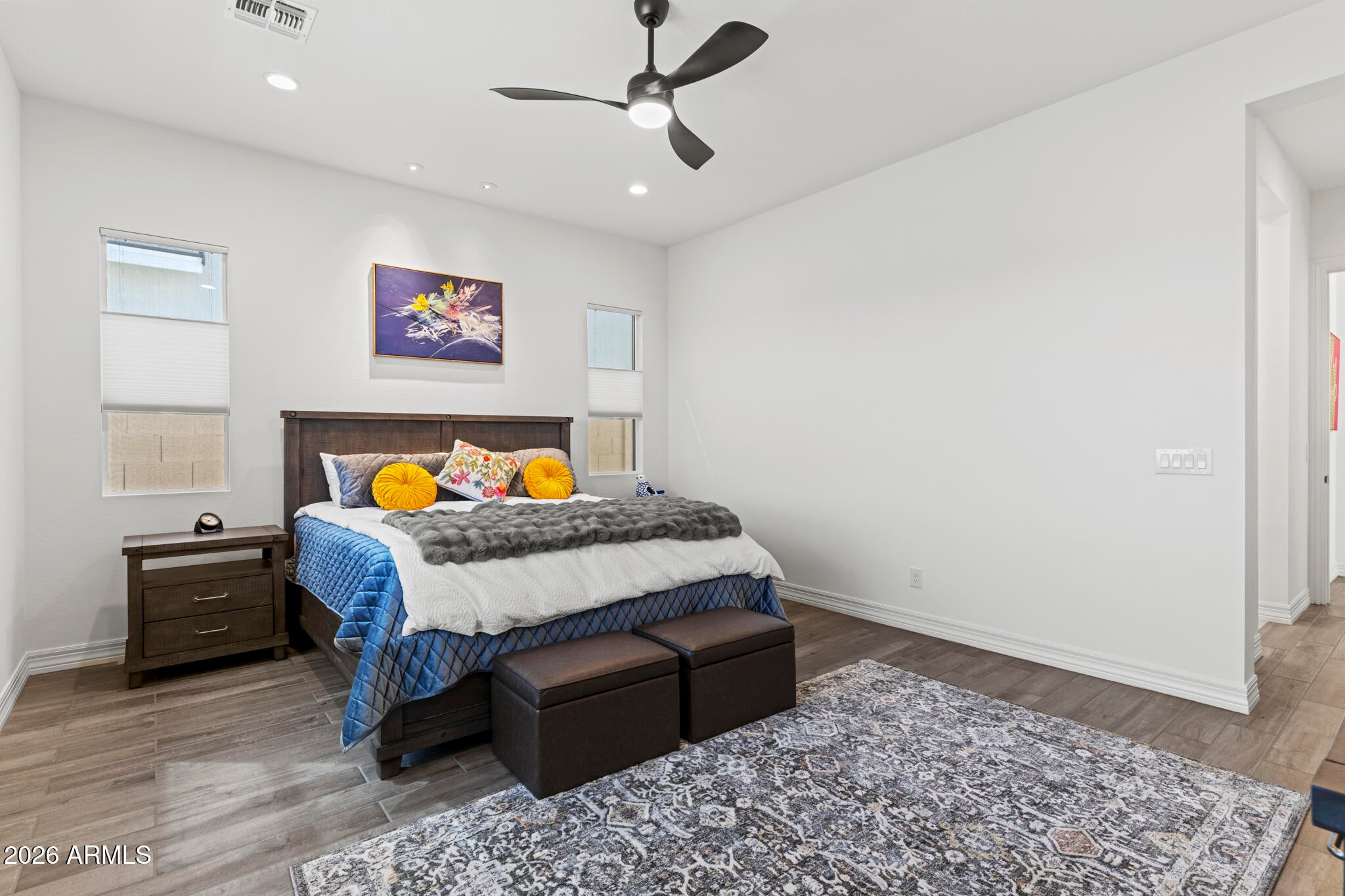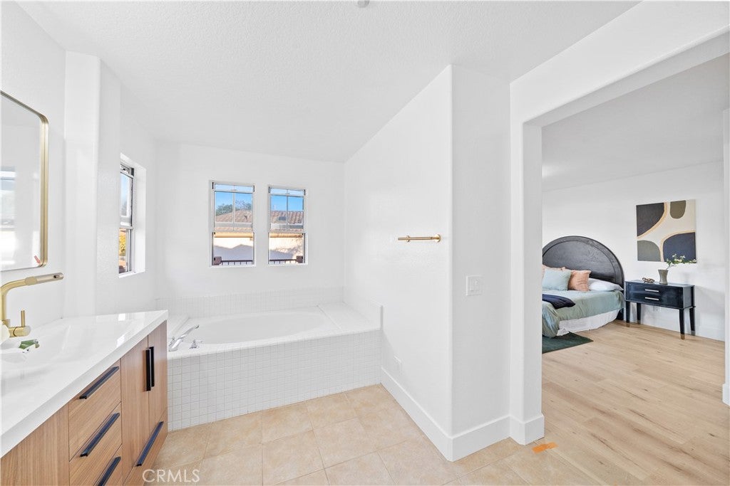 Turnkey remodeled detached home in the highly sought-after Villavante community of Rancho Santa Margarita, located just moments from Tijeras Creek Golf Course. This light-filled residence offers approximately 1,712 sq ft with an open floor plan and beautiful hardwood flooring throughout the entry, living, and dining areas.The main level features a flexible office or ideal for guests, plus a convenient full bathroom with shower. The spacious kitchen includes quartz countertops, rich wood cabinetry, stainless steel appliances, and a bright breakfast nook.Upstairs, the oversized primary suite features a private patio deck, a large walk-in closet, and a spa-style bath with tub and separate shower. The secondary bedroom includes its own full bathroom for added privacy.Enjoy peaceful canyon views from the backyard with patio and low-maintenance artificial turf. Additional upgrades include fully paid solar, complete PEX re-pipe, and a garage with epoxy flooring and ample storage.Close to pools, spa, RSM Lake, parks, hiking trails, shopping, dining, tennis, and pickleball.