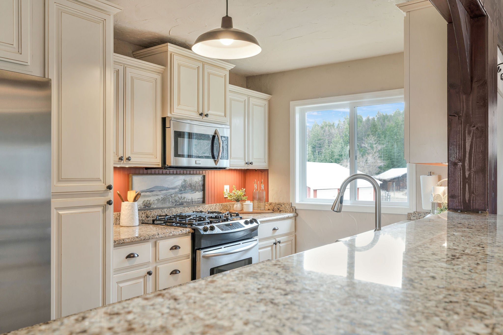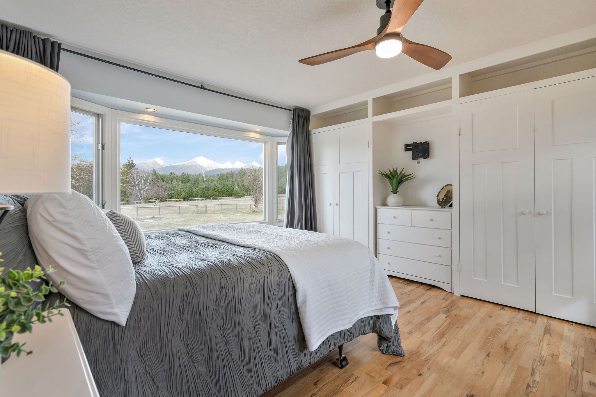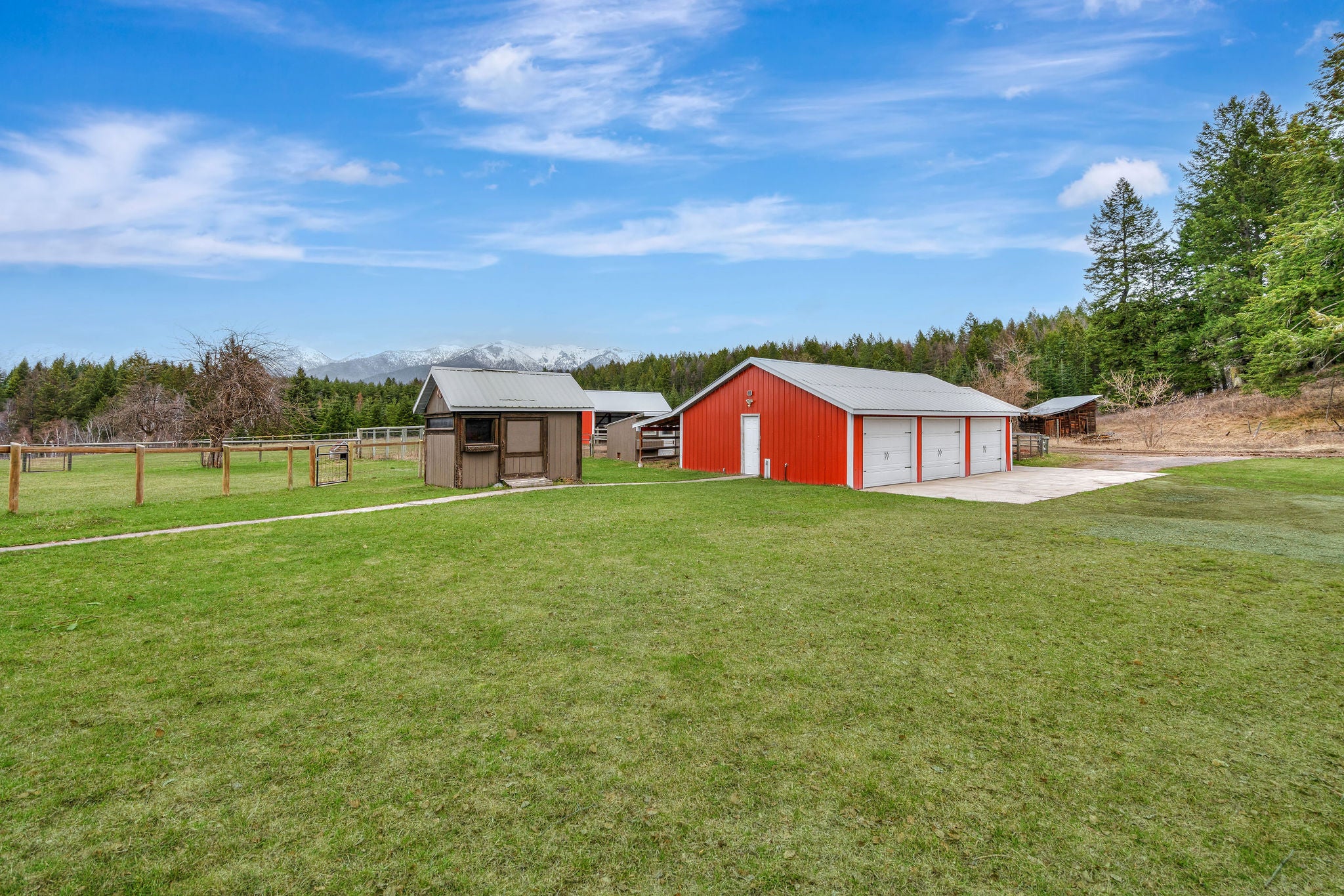 NO Covenants, NO Zoning, NO HOA & Horse Ready! Welcome to your Montana dream property in Kalispell, where space, functionality, and breathtaking Swan Mountain views come together on nearly 3.5 acres across two parcels. Offering almost 360-degree mountain views, this property provides the rare opportunity to purchase the home with 2.0 acres or expand with an additional 1.47-acre neighboring parcel that is also offered for sale (Also listed as MLS#30068229). With the property bordering over 150 acres of FWP (Fish, Wildlife, & Park) Block Management Area & also located less than 5 minutes from State land, this property is ideal for those seeking both privacy and recreation.Inside, the home offers a warm and inviting open-concept layout with hardwood floors, exposed beams, and a spacious living area. The kitchen features granite countertops, stainless steel appliances, a gas range, farmhouse sink, custom cabinetry with soft-close cabinets and drawers, and tile flooring, flowing seamlessly into a formal dining area. Recent updates include brand new interior paint and new vinyl flooring downstairs, along with modern comforts such as a heat pump with central A/C and a propane furnace. The main level features a mudroom with built-ins, a full bathroom, a guest bedroom, a bonus office space with custom desk and mirror, and a stunning en-sutie primary suite complete with hardwood floors, dual closets with built-ins, a vanity area, walk-in closet, and en suite bath. Upstairs, youll find a bonus room, two additional bedrooms, including one with a walk-in closet.The lower level expands your living space with a large second living room featuring a cozy wood stove, built-in storage, a secure room with custom cabinetry and safe, additional bedroom with built-in bunk beds, laundry room with cabinetry, utility room with water softener and filtration system, and multiple storage areas. Thoughtful details like a laundry chute and exterior firewood access add convenience and charm. Designed for both everyday living and outdoor enjoyment, the property features a half-circle driveway, fenced pasture and yard spaces, RV parking with electric hookup and grey water tank, outdoor shower, & fire pit area; perfect for hosting or extended stays. Equestrian-ready amenities include a horse shelter with frost-free hydrants, automated water heater at the pasture, fenced pasture, chicken coop, garden with greenhouse, and a large 5-bay pole barn, along with a 3-car garage, carport, and well house.With a covered front porch, mature landscaping, a covered back deck, & a beautiful weeping willow tree, this property offers the perfect blend of comfort and Montana lifestyle. Whether youre looking for a private retreat, hobby farm, or multi-use property with room to grow, this one truly has it all.