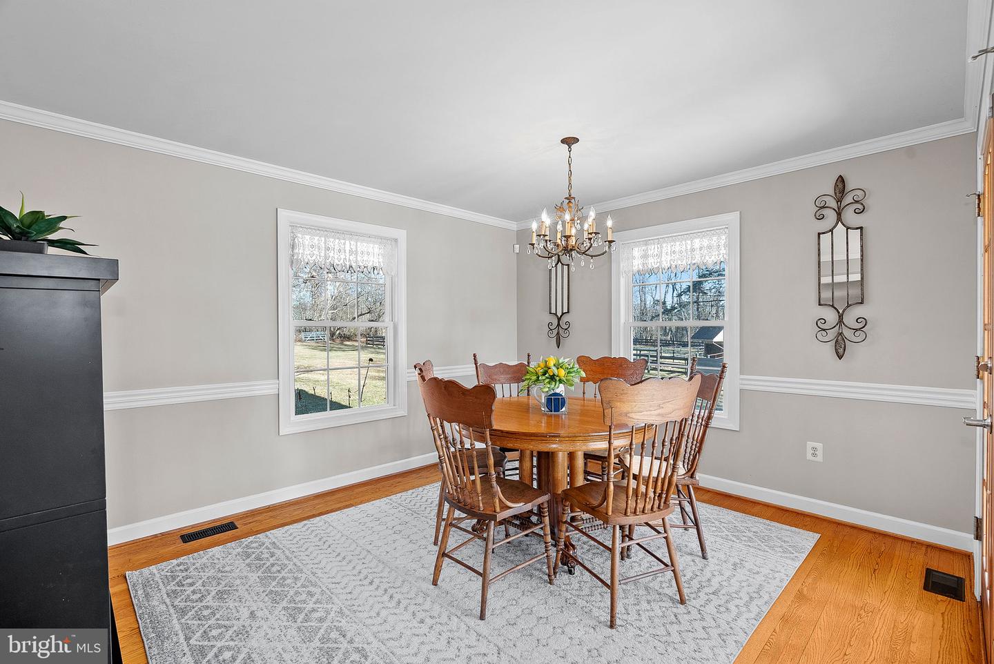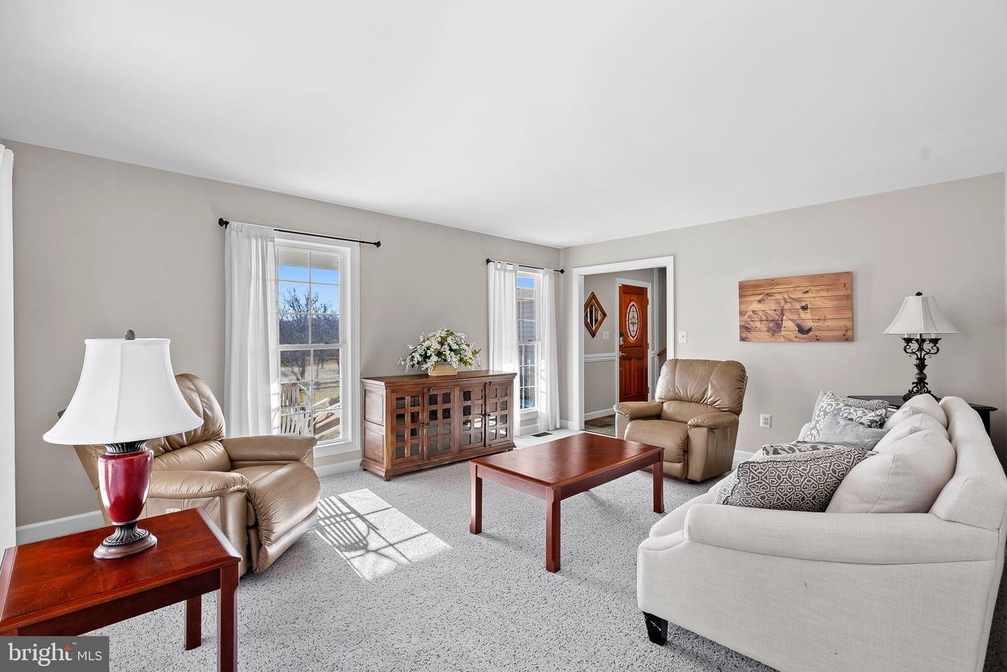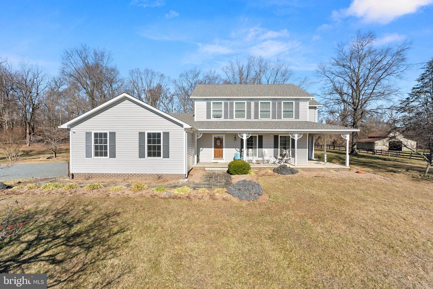 Charming Wrap-Around Front Porch Fresh, Neutral Paint Throughout Well Equipped Kitchen Sunny Breakfast Room w/Built-In Bench Seating Cozy Family Room with Stone Fireplace & Flat-Screen TV Formal Living & Dining Rooms (Dining Room walks out to the Covered Porch through Double French Doors!) Main Level Laundry Room w/Utility Sink & Added Storage All 4 Bedrooms Feature Ceiling Fans & Window Treatments Primary Suite with Private Full Bath Updated Hall Bath with New Vanity & Oversized Glass-Enclosed Shower Updated Lighting & Window Treatments Throughout Deck off Main Level walks down to the spacious back yard Fire Pit Large 1-Stall Barn w/Run-in Shed & 2 Fenced Paddocks (w/water/power) closest to the house Paved Driveway w/2-Car Side-Load Garage w/Plenty of Parking