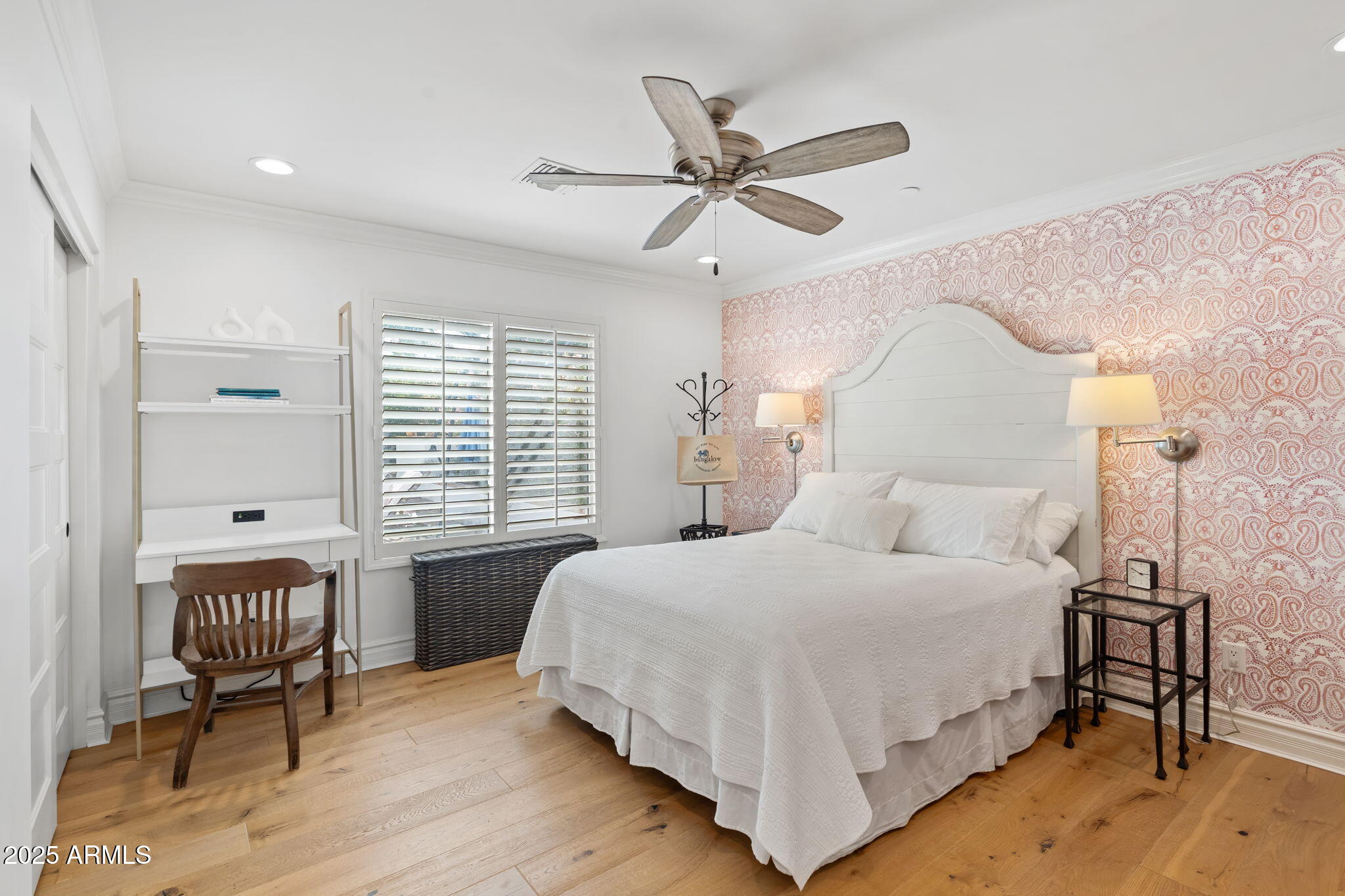 Perfectly located in the coveted Del streets of McCormick Ranch, just steps from the lake and scenic greenbelt, this Santa Barbara-style home has been beautifully transformedbeginning with a major addition and full remodel in 2016, followed by the creation of a luxurious new primary suite in 2019. The thoughtfully reimagined floor plan offers 5 bedrooms, plus an office and versatile bonus room.