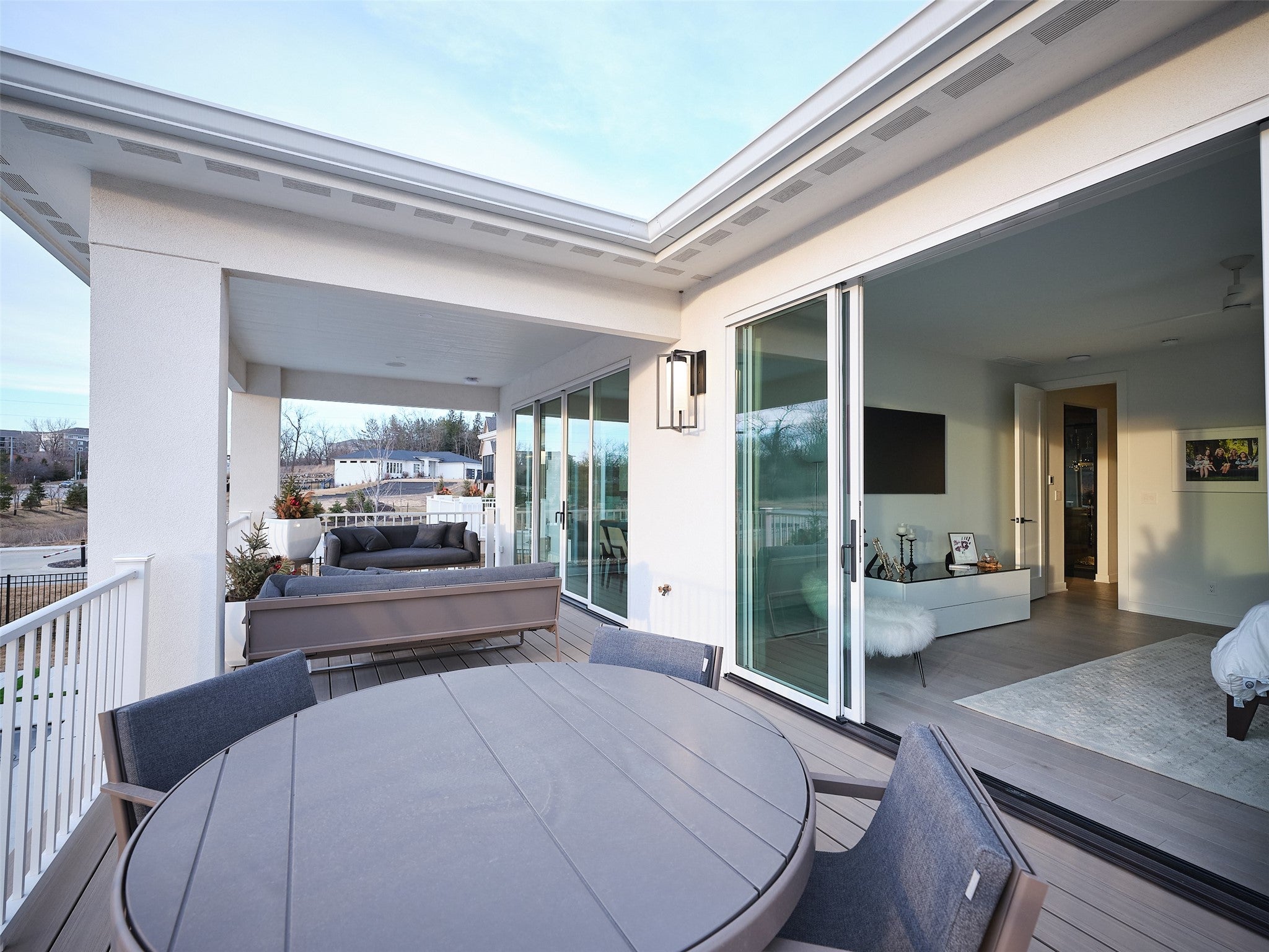 Marc Kris Modern Homes presents a true resort experience in this beautiful home nestled in the only private cul-de-sac in West Des Moines. Enjoy a heated 18 x 36 in-ground pool with fire pit, speakers, and professional Lounsbury landscaping. Inside, every detail is elevated with Italian cabinets, vanities, fixtures, tile, and a custom Italian master closet. Red oak stair treads and rare Spessart oak wall and refrigerator panels add global sophistication. Motorized Lutron blinds, Ketra lighting, a full-home water filtration system, insulated interior walls, and a Josh AI system create effortless comfort. The kitchen features Miele appliances and porcelain countertops from Spain. Wellness continues with a Tylo sauna and a Fantech fresh-air system. A home where luxury, technology, and serenity meet.