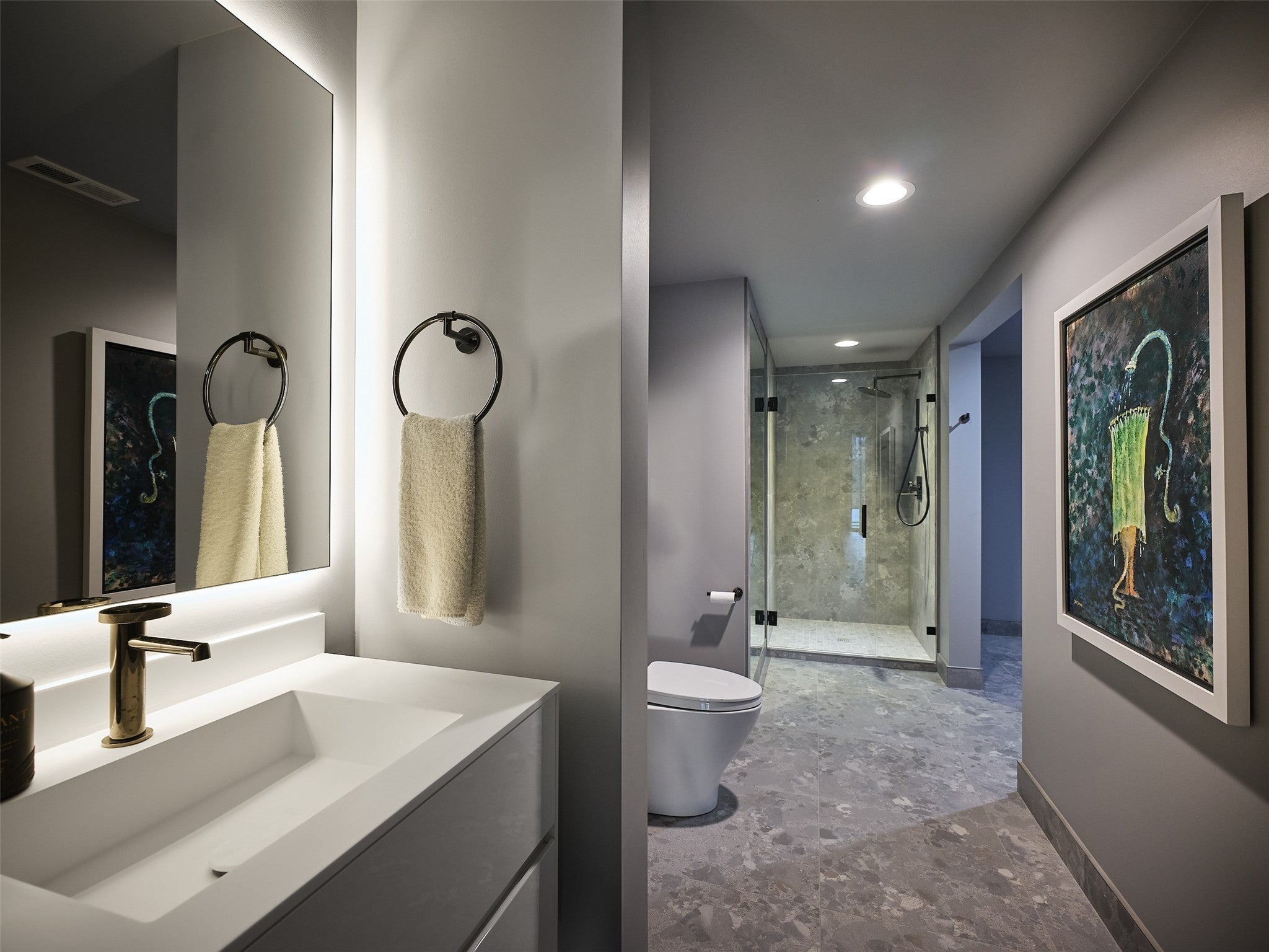 Meticulously reimagined residence where modern luxury meets thoughtful, energy-efficient design. Built on an existing foundation and completely reconstructed, this home showcases engineered framing, closed-cell spray foam insulation, Andersen 400 windows, and a sleek stucco exterior accented with sustainable ACRE siding. Inside, enjoy 10 ceilings, wide-plank white oak floors, solid-core doors, and refined modern finishes throughout. The chefs kitchen features custom Italian Aster Cucine cabinetry, quartz waterfall island, full slab backsplash, and a premium appliance suite including Sub-Zero, Wolf, and Miele. Spa-inspired bathrooms offer radiant heated floors, designer tile, and floating vanities. Additional highlights include a covered heated patio, landscaped yard with irrigation, smart-home wiring, dual-zone HVAC, and a finished lower level with guest suite and flex space. Designed for comfort, efficiency, and longevity this is modern living at its finest.