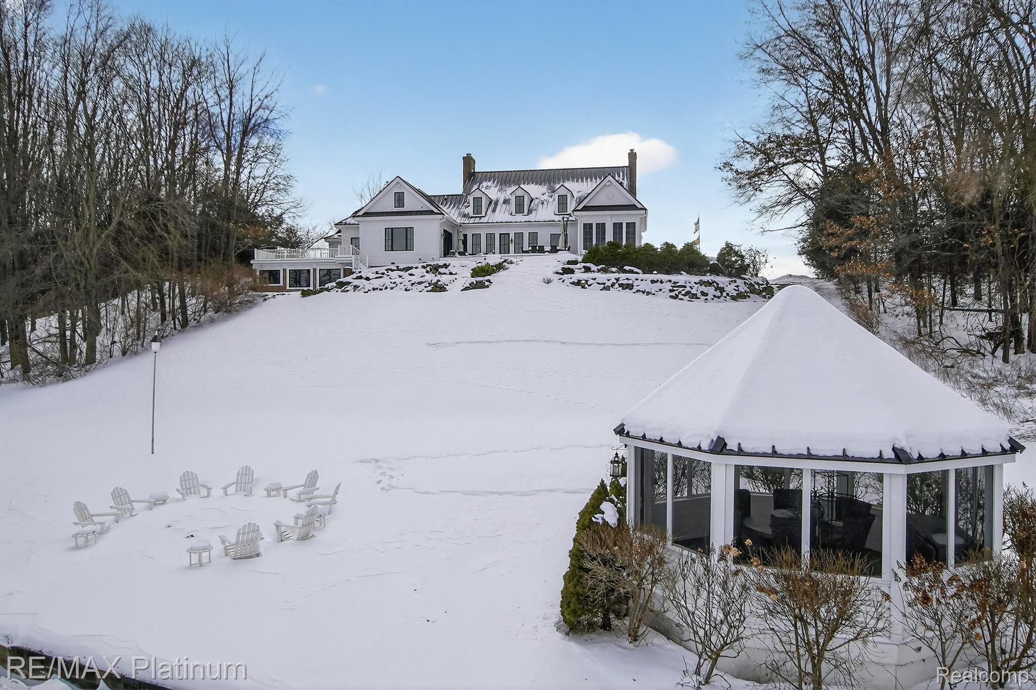 Spectacular waterfront estate! Live a life of luxury and leisure in this exquisite homestead, as soon as you pull through the gate and down the circular driveway you will never want to leave. Cape cod syle with black metal roof and all new Pella black framed windows gives stunning views to the lake, along with new trex on multiple decks.