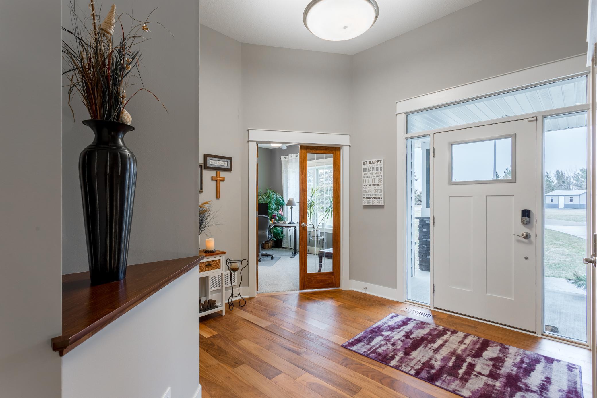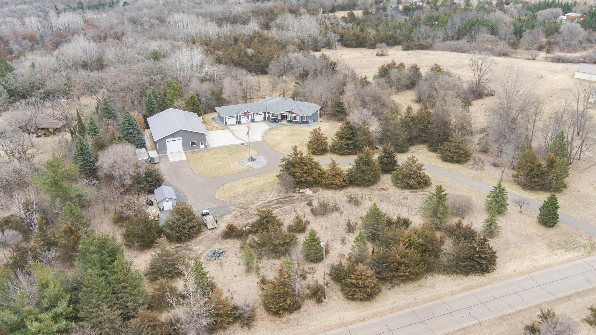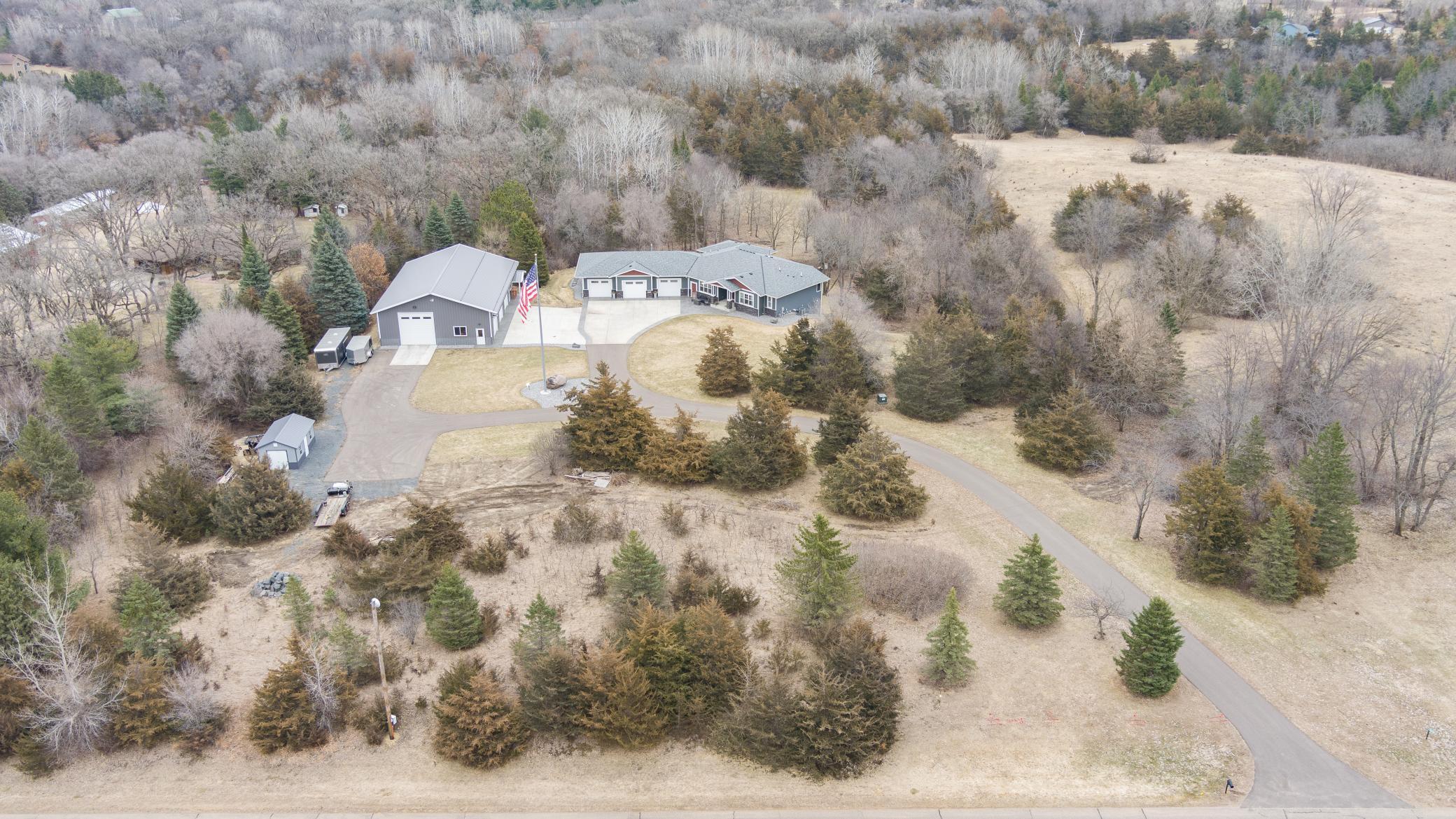 Experience exceptional privacy, craftsmanship, and lifestyle at 20620 Otero Ave in Hastings, a stunning one-owner estate set on 7.58 picturesque acres. Designed with both comfort and entertaining in mind, this remarkable property blends refined living spaces with extraordinary outbuildings and breathtaking natural surroundings.Inside the home, youll find 3 bedrooms and 3 bathrooms within a beautifully designed open-concept layout highlighted by soaring 11-foot ceilings and rich hardwood flooring throughout the main level. The chefs kitchen features stainless steel appliances, abundant cabinetry, and a spacious walk-in pantry, all flowing seamlessly into the main living and dining areasperfect for gatherings both large and small. Everyday living is made effortless with main-level laundry, a spacious mudroom, and thoughtfully designed storage throughout the home.Enjoy the beauty of the property year-round from the inviting three-season porch, or step outside to the expansive patio, ideal for entertaining while overlooking the peaceful acreage.For those seeking unmatched workspace and recreation potential, the property delivers in spectacular fashion. The fully finished and heated 47 x 32 attached garage offers exceptional space, while the impressive 64 x 45 finished and heated pole building elevates the property to a new level. Featuring four overhead doorsincluding a 14-foot door, this remarkable building includes an 18 x 13 office, loft storage, bath, and fully customizable party lighting, making it ideal for entertaining, business use, or showcasing a collection. A whole-property Sonos sound system connects the home, garage, and porch creating a seamless audio experience throughout.The 7.58 acre setting offers a private sanctuary with winding trails and abundant wildlife, where deer, fox, rabbits, squirrels, and a variety of birds regularly visit, delivering a true Northwoods-style experience just minutes from Hastings.This is a rare opportunity to own a meticulously cared-for property where luxury living meets unmatched functionality and natural beauty.