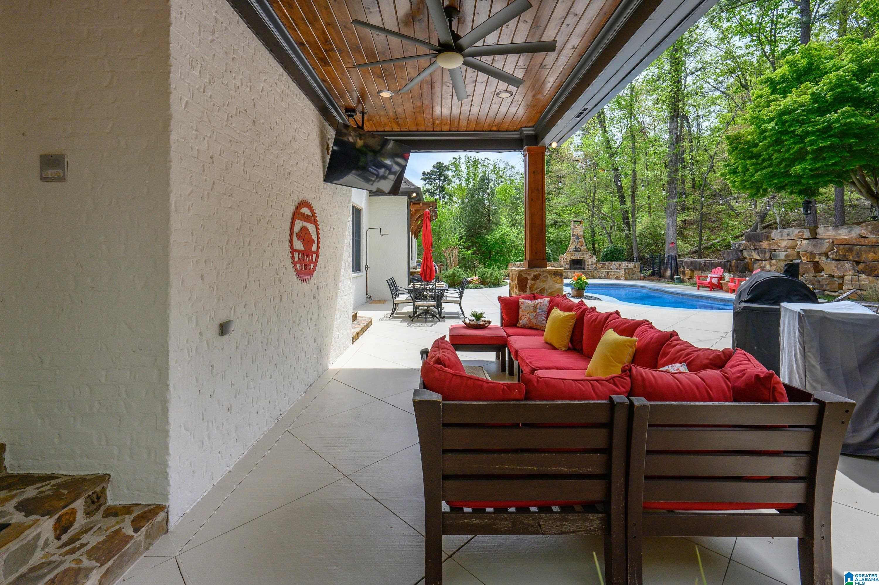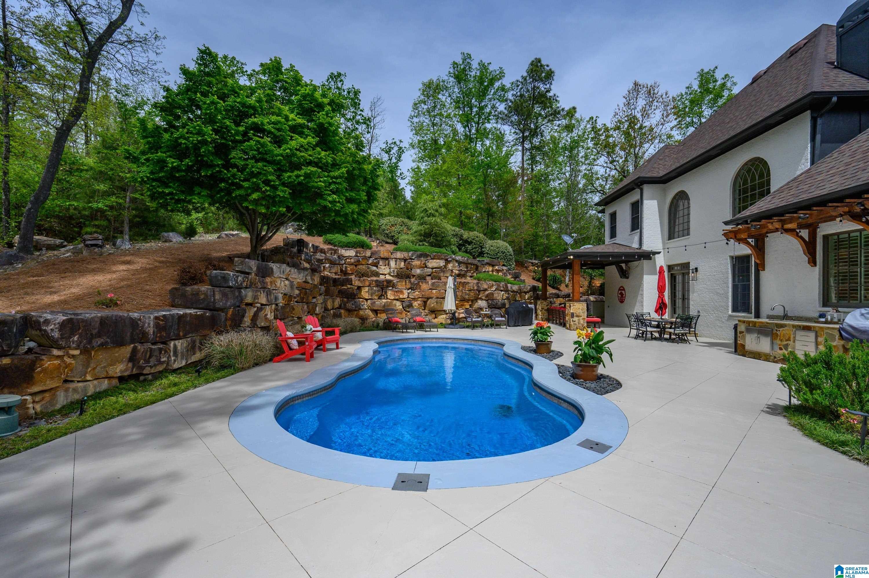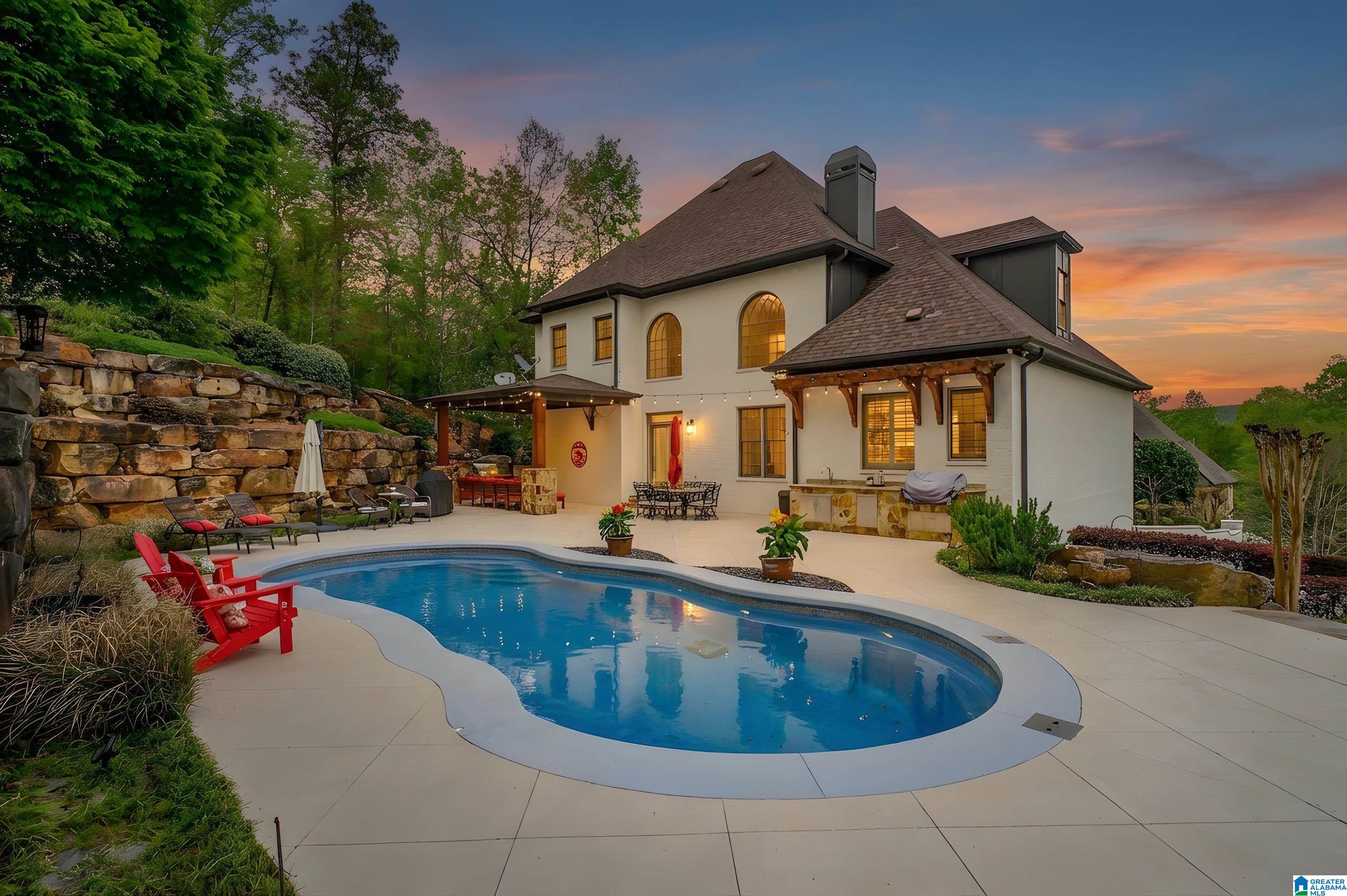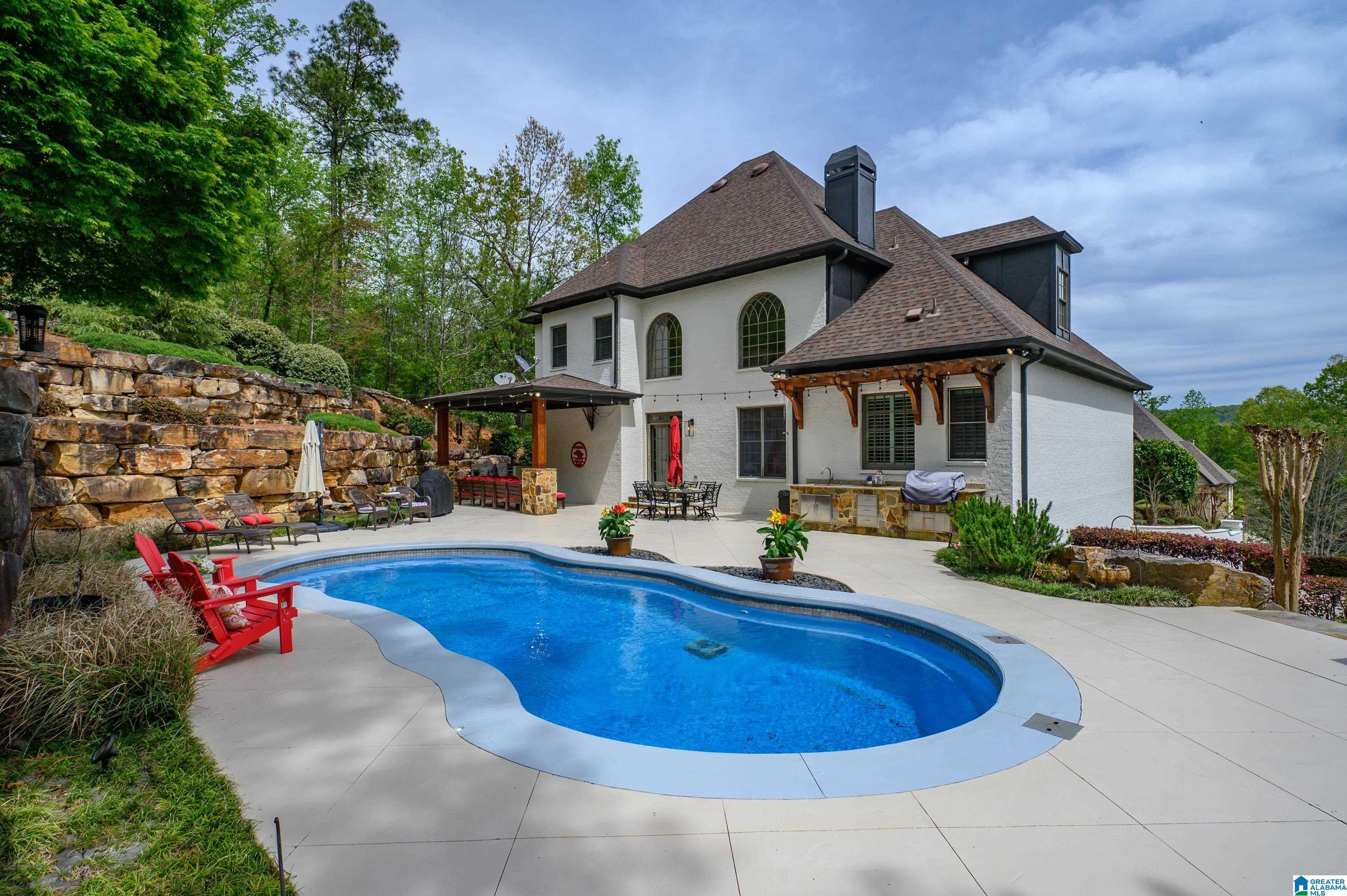 This stunning home is perfectly nestled on a private cul de sac lot in the gated Highland Lakes Community. It features 5 bedrooms & 5.5 baths & multiple gathering areas. The 2 story foyer opens to a formal dining room. The chefs kitchen offers Viking appliances, built-in Sub-Zero refrigerator, stone countertops, walk-in pantry & a cozy keeping room off the kitchen. The great room w/ soaring ceilings overlooks a resort like private backyard which features a heated, in-ground salt water pool, wood burning fireplace w/ seating, outdoor kitchen w/ grill, & a covered patio. The large primary bedroom features tray ceilings & a spa like bath w/ dual sinks, separate tub & shower. Upstairs has 4 bedrooms, 3 full baths & a bonus room. The finished basement has a den, office (currently set up as a bedroom & a large media room that seats 8. The split driveway has a 2 car garage on the main level & 2 car garage in the basement & allows for plenty of parking. Zoned for Oak Mountain Schools.