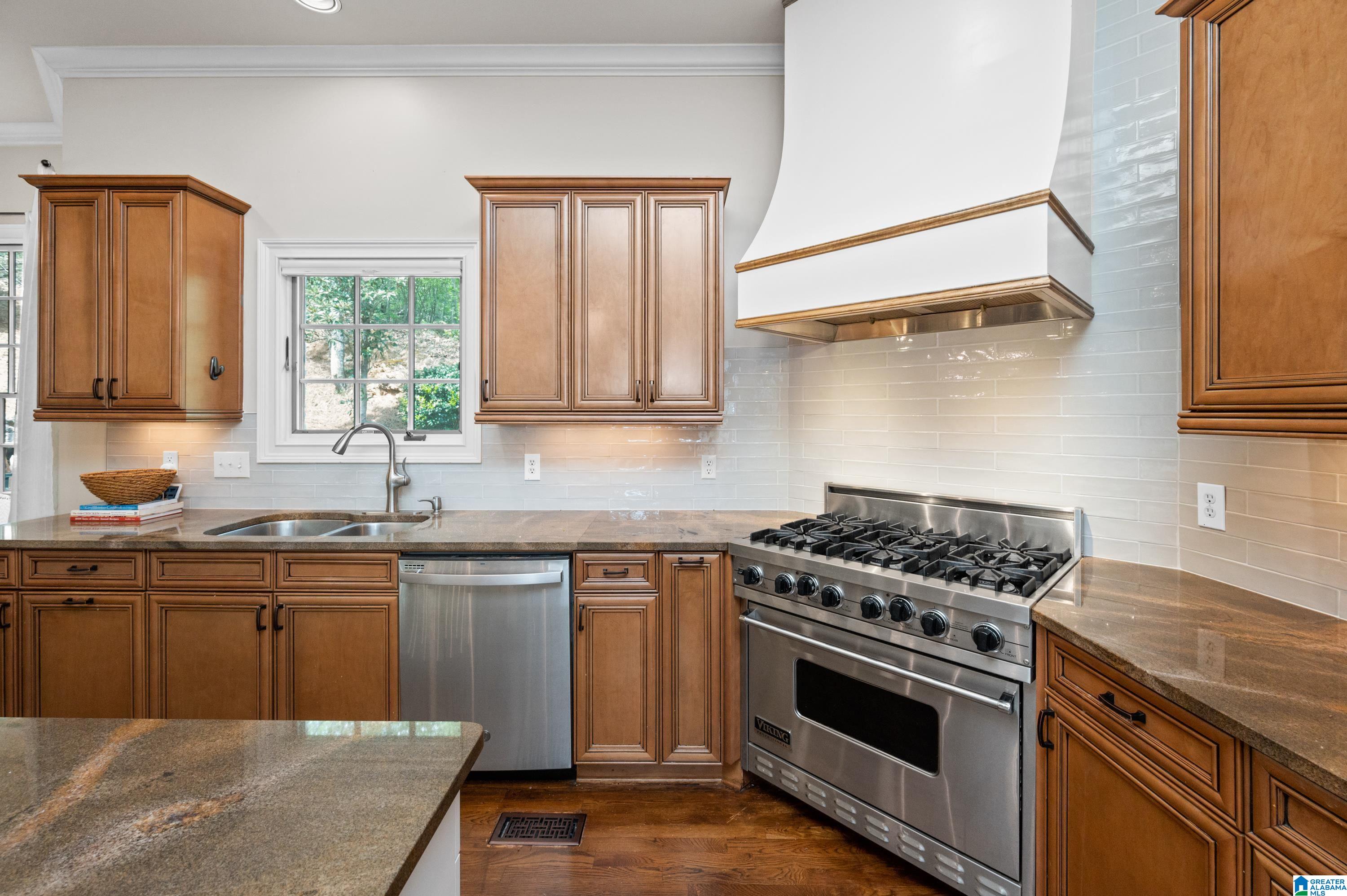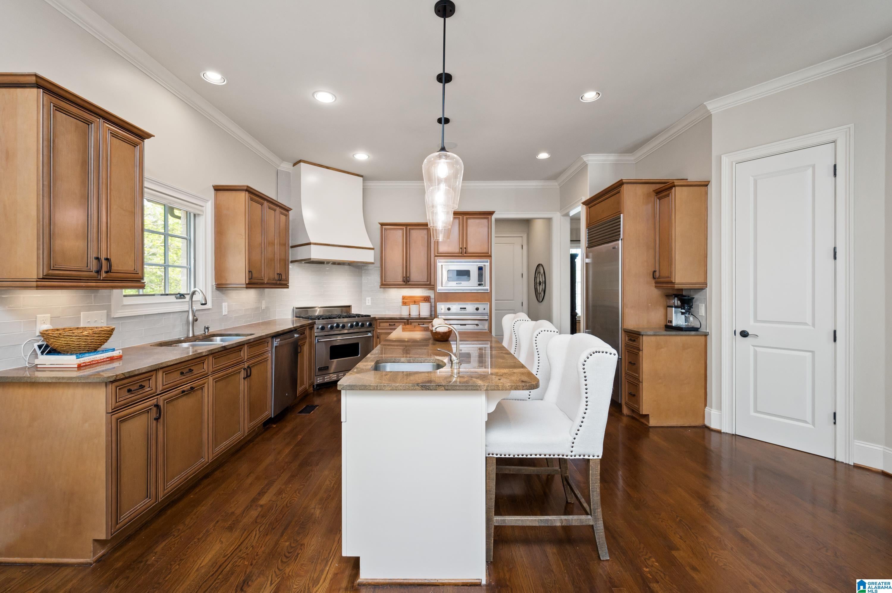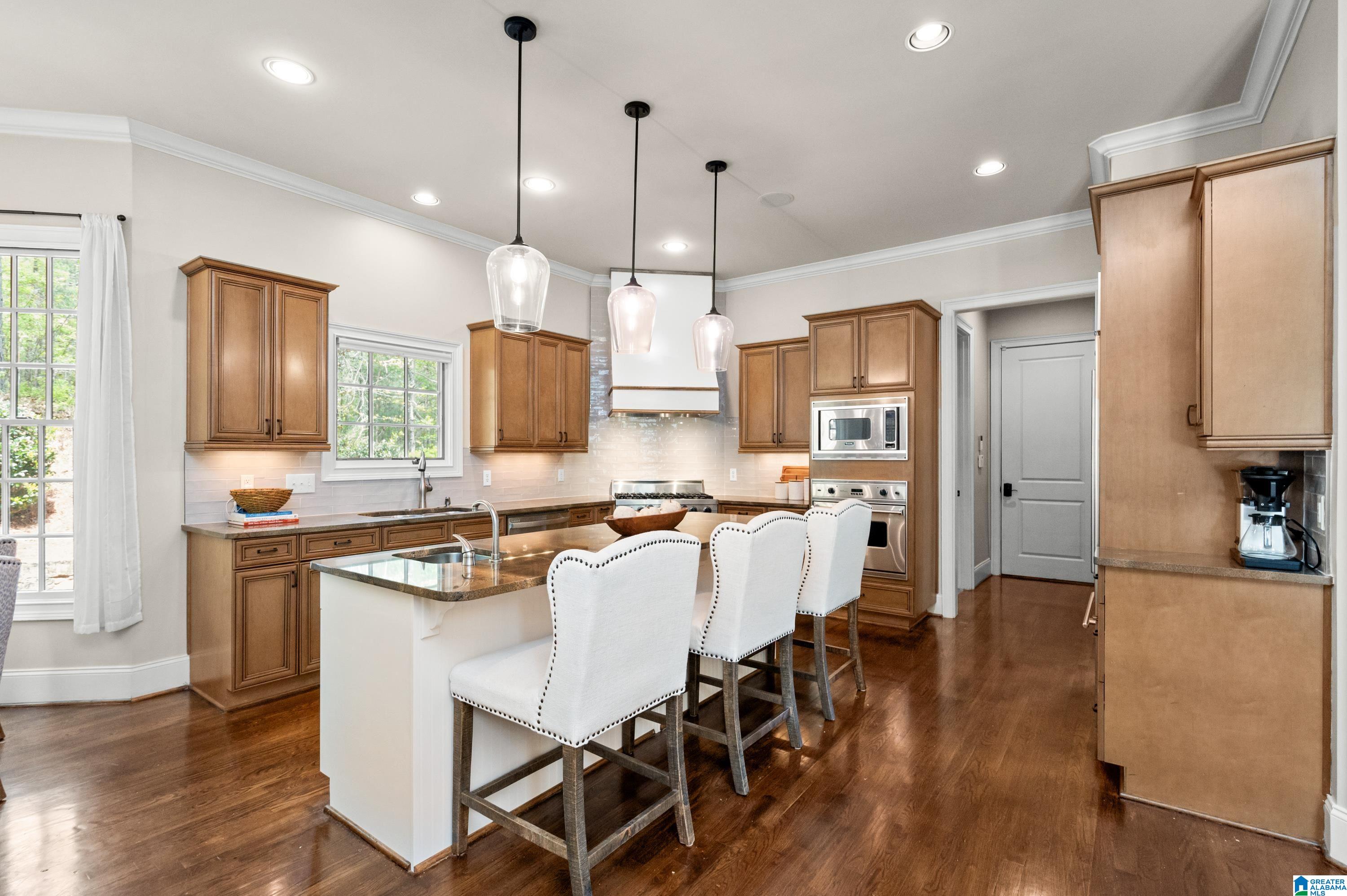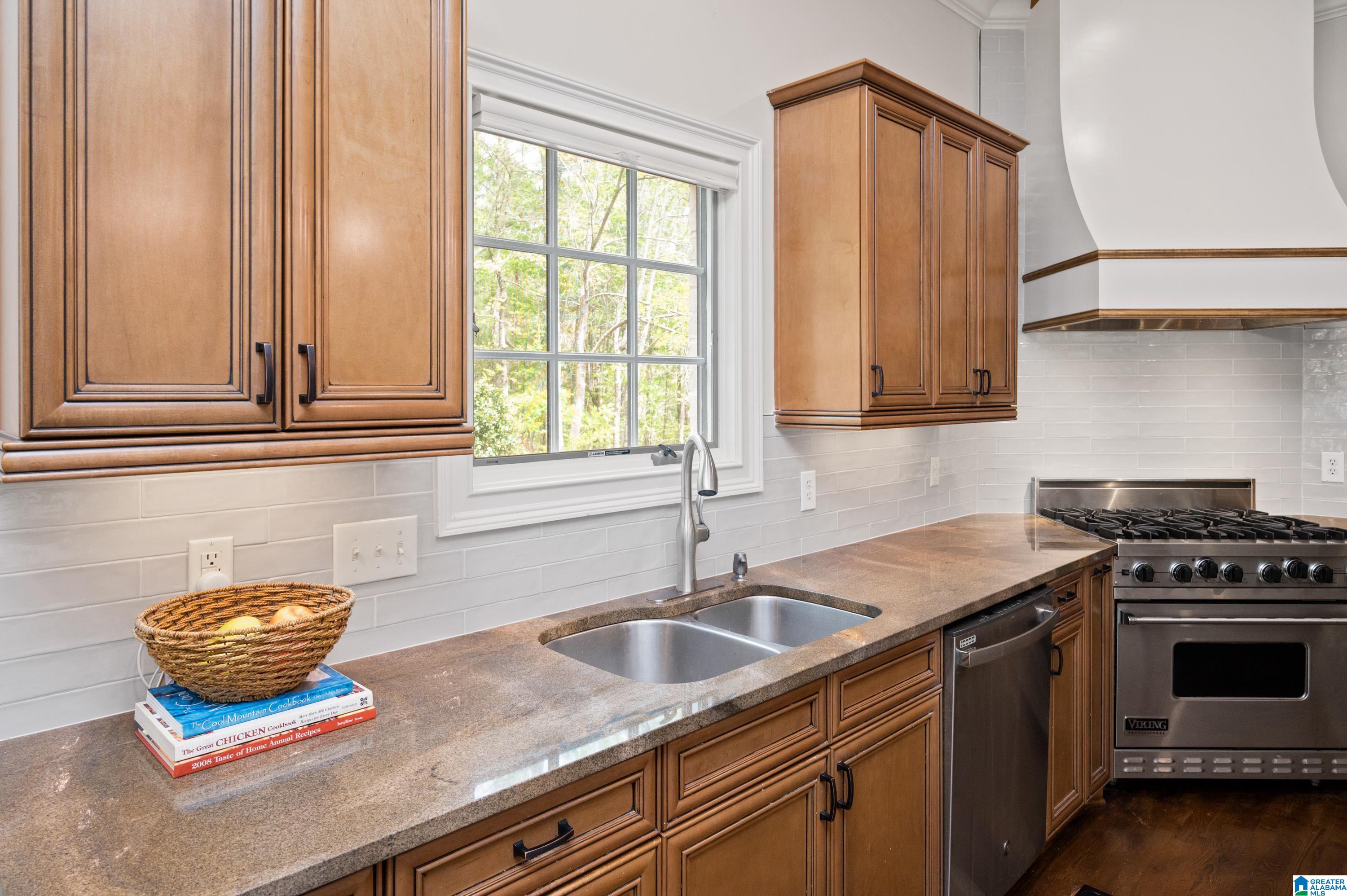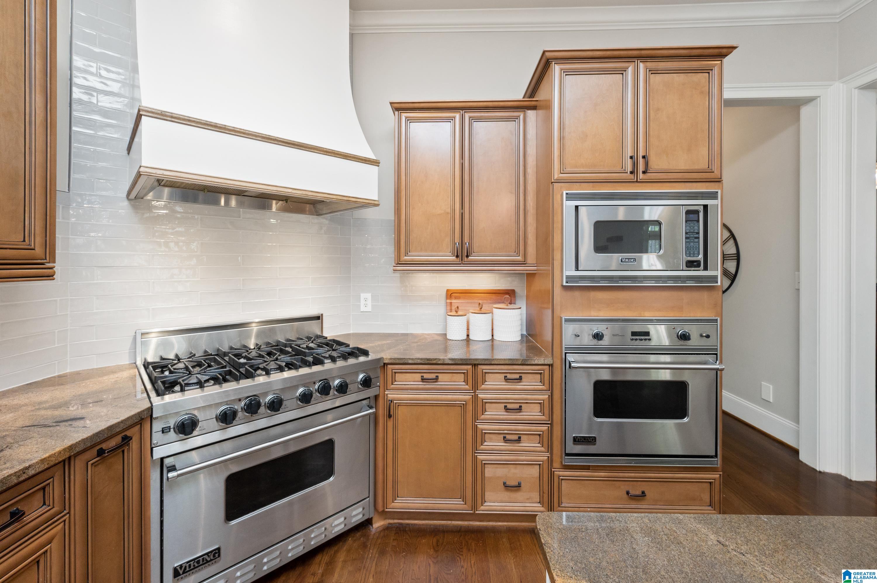 This stunning home is perfectly nestled on a private cul de sac lot in the gated Highland Lakes Community. It features 5 bedrooms & 5.5 baths & multiple gathering areas. The 2 story foyer opens to a formal dining room. The chefs kitchen offers Viking appliances, built-in Sub-Zero refrigerator, stone countertops, walk-in pantry & a cozy keeping room off the kitchen. The great room w/ soaring ceilings overlooks a resort like private backyard which features a heated, in-ground salt water pool, wood burning fireplace w/ seating, outdoor kitchen w/ grill, & a covered patio. The large primary bedroom features tray ceilings & a spa like bath w/ dual sinks, separate tub & shower. Upstairs has 4 bedrooms, 3 full baths & a bonus room. The finished basement has a den, office (currently set up as a bedroom & a large media room that seats 8. The split driveway has a 2 car garage on the main level & 2 car garage in the basement & allows for plenty of parking. Zoned for Oak Mountain Schools.