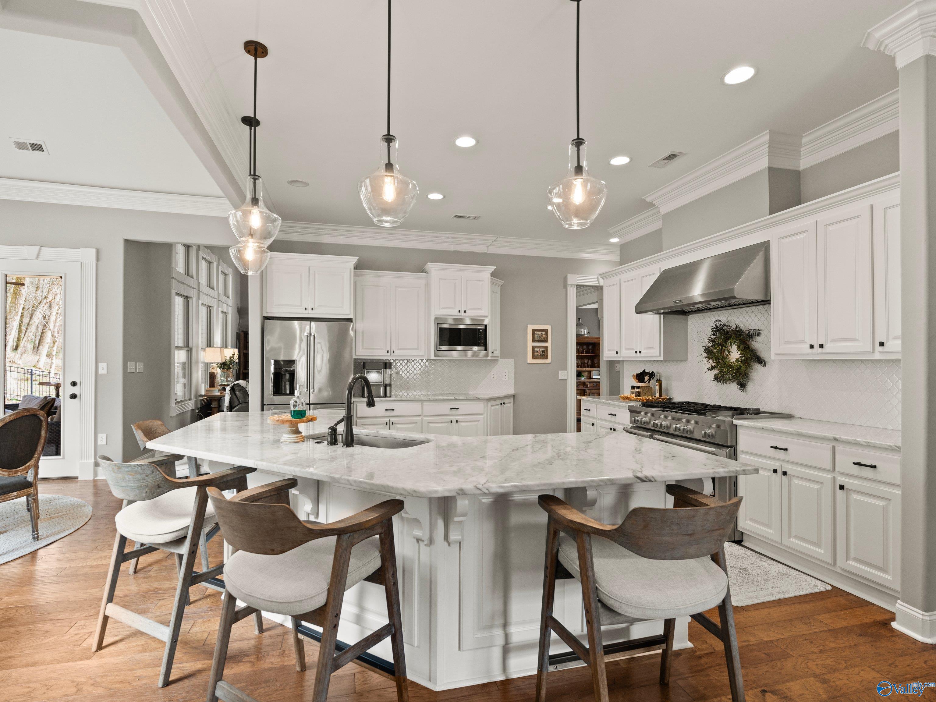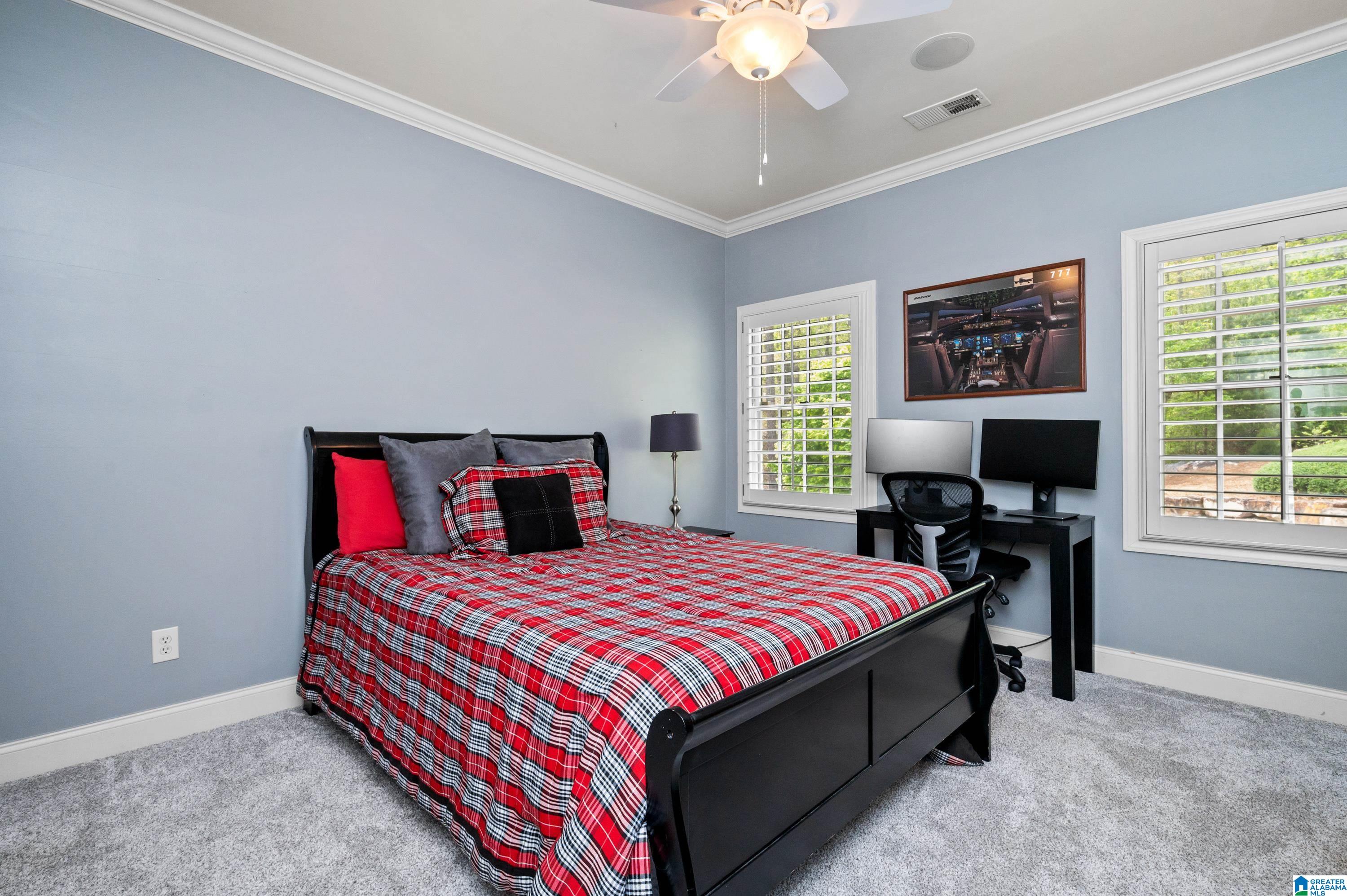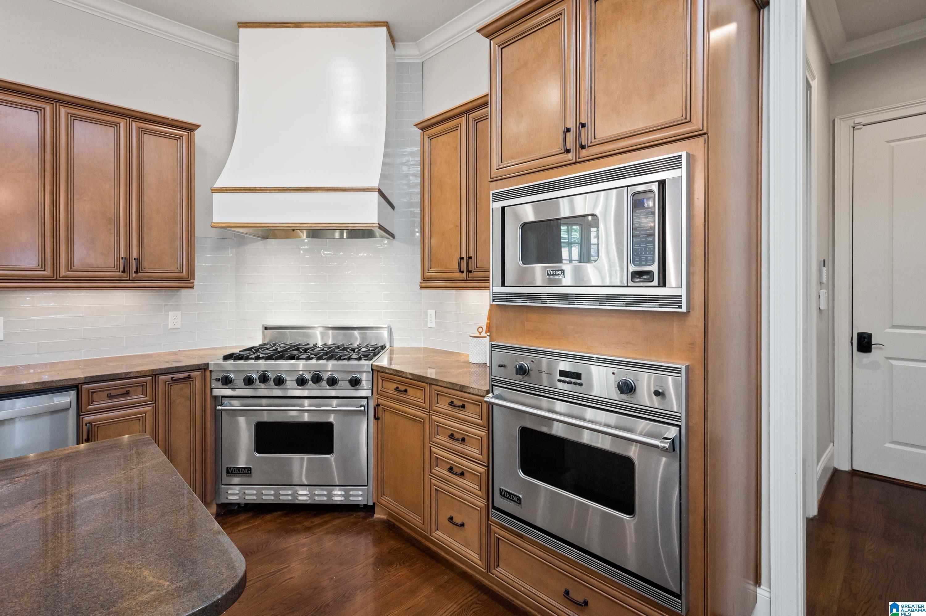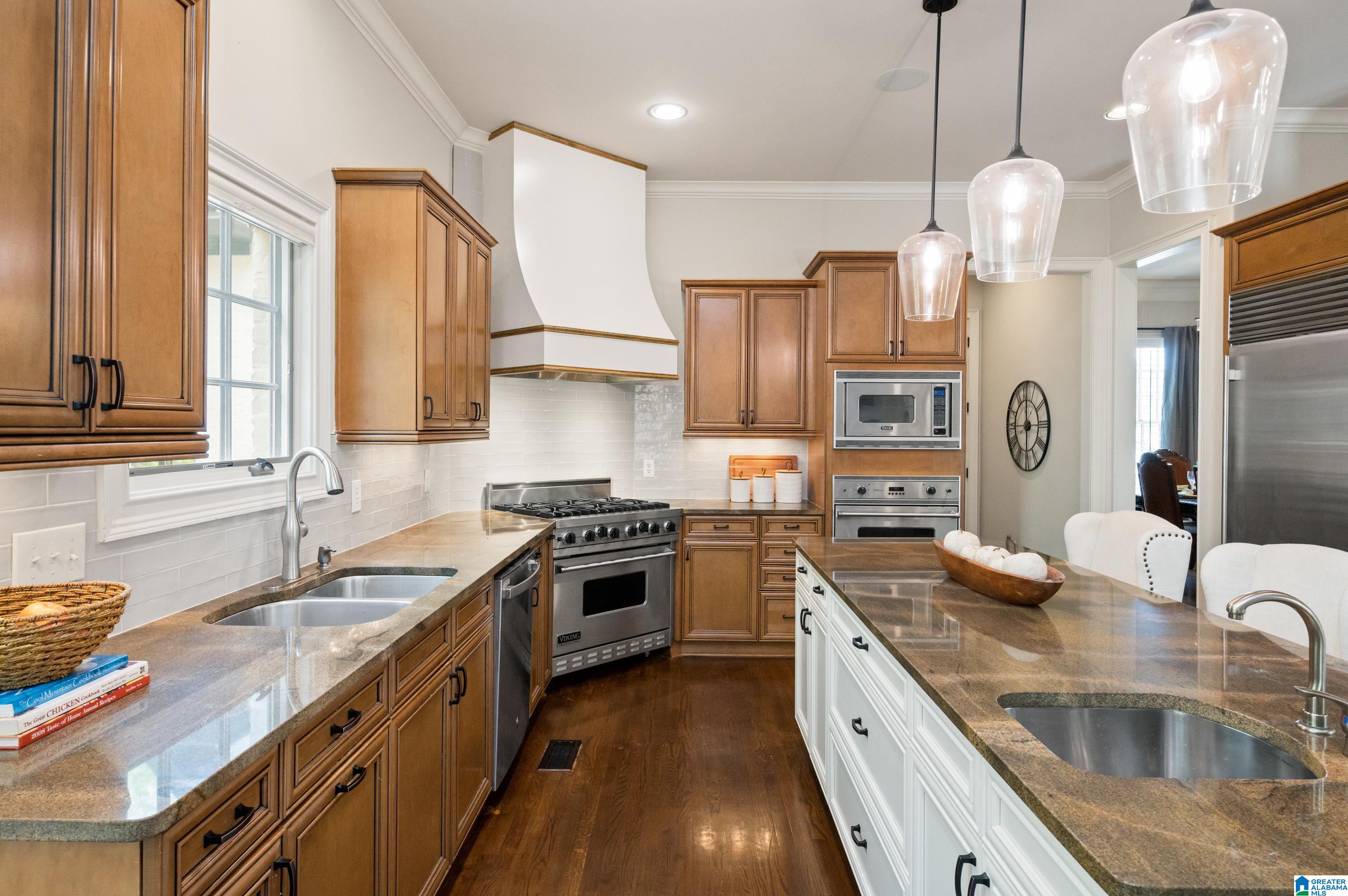 This stunning home is perfectly nestled on a private cul de sac lot in the gated Highland Lakes Community. It features 5 bedrooms & 5.5 baths & multiple gathering areas. The 2 story foyer opens to a formal dining room. The chefs kitchen offers Viking appliances, built-in Sub-Zero refrigerator, stone countertops, walk-in pantry & a cozy keeping room off the kitchen. The great room w/ soaring ceilings overlooks a resort like private backyard which features a heated, in-ground salt water pool, wood burning fireplace w/ seating, outdoor kitchen w/ grill, & a covered patio. The large primary bedroom features tray ceilings & a spa like bath w/ dual sinks, separate tub & shower. Upstairs has 4 bedrooms, 3 full baths & a bonus room. The finished basement has a den, office (currently set up as a bedroom & a large media room that seats 8. The split driveway has a 2 car garage on the main level & 2 car garage in the basement & allows for plenty of parking. Zoned for Oak Mountain Schools.