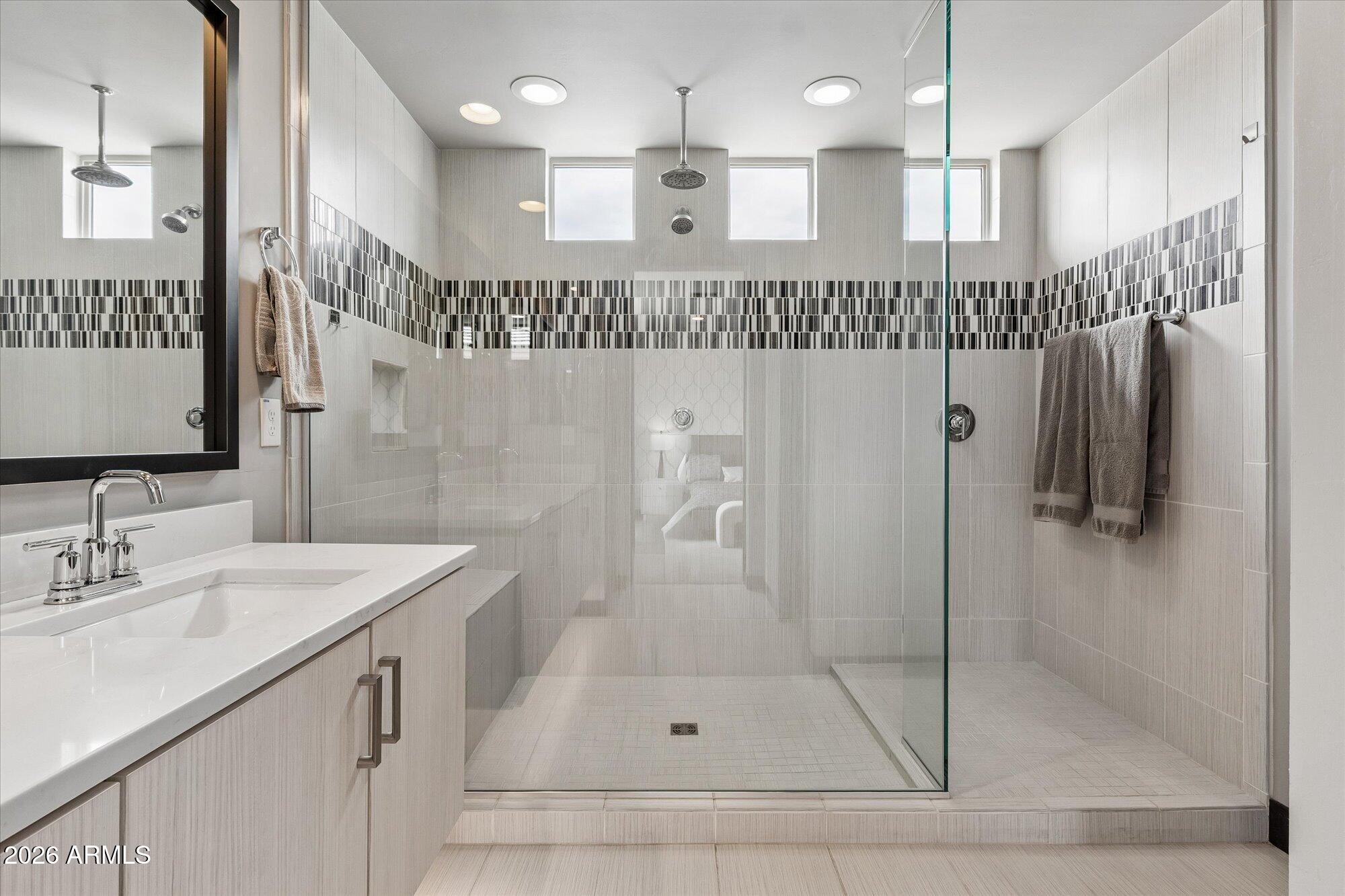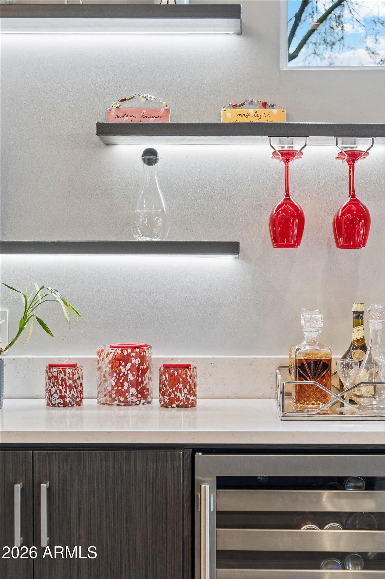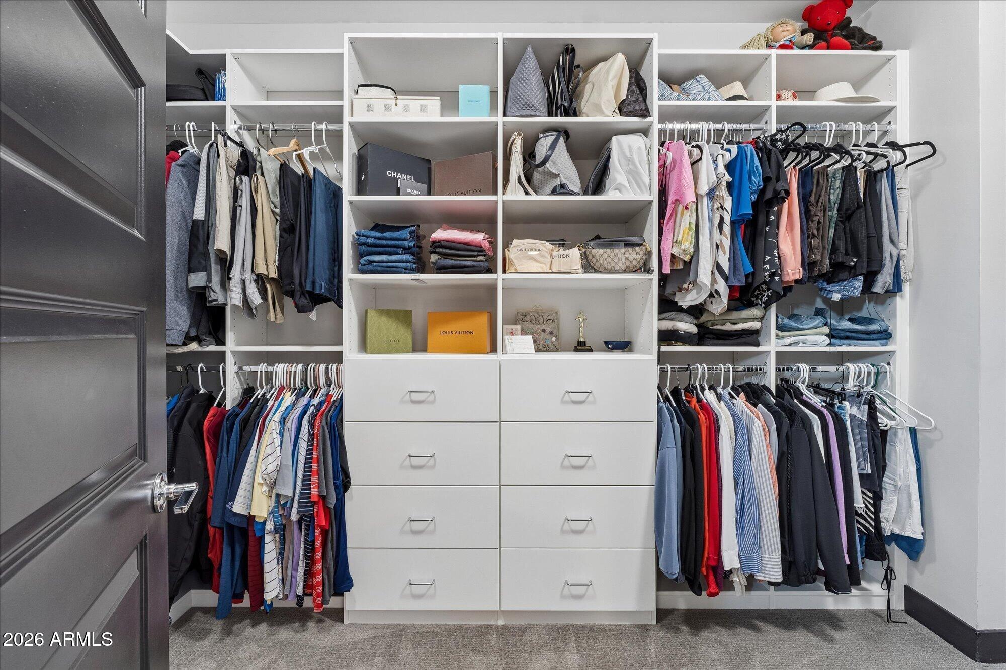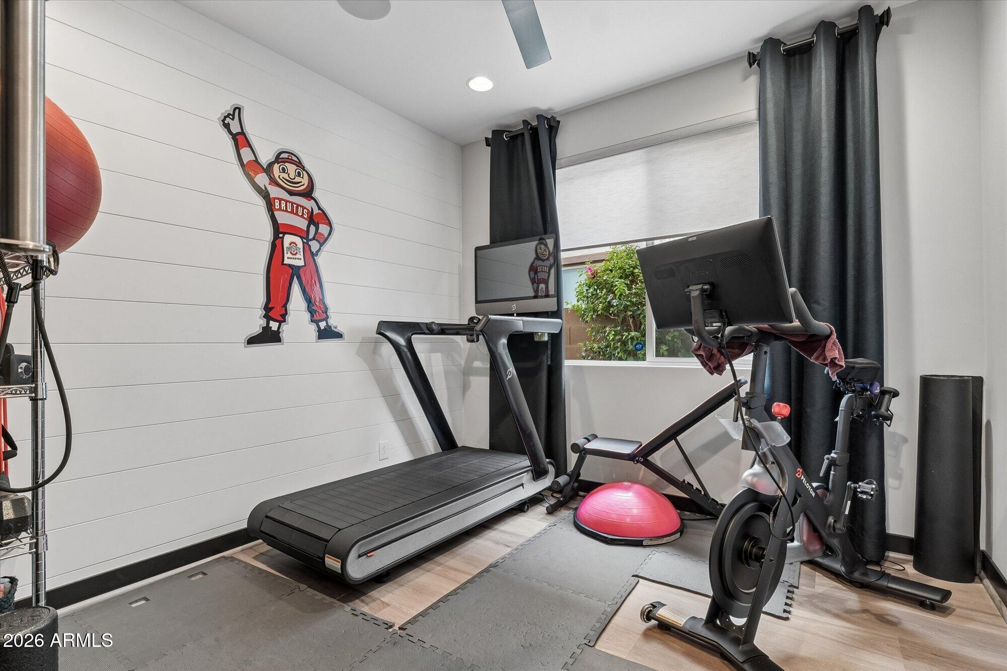 Situated on one of the most desirable streets in Sky Crossing, this former model home offers a rare combination of thoughtful design, premium upgrades, and an unbeatable location just moments from the communitys most sought-after amenities. Set on a premium extended corner lot-larger than most for this floor plan-on a quiet, no-outlet street with two cul-de-sacs, the home is just a short 2-minute walk to the main park, community center, and Sky Crossing Elementary. Enjoy convenient access to the Loop 101 and SR-51, making commuting and getting around the Valley effortless. Inside, the home showcases a beautifully upgraded kitchen featuring black stainless KitchenAid appliance suite with gas cooktop, a striking quartz waterfall island, full slab quartz backsplash, extended cabinetry with integrated beverage cooler, and custom lighting details throughout. The adjacent great room is designed for both comfort and entertaining, complete with a custom fireplace, built-in shelving, surround sound, and automated shades. The main floor bonus room offers versatility for a home office, gym, or additional living space, while the upstairs loft adds even more flexibility. The primary suite is a true retreat with designer finishes, a spa-inspired bathroom featuring floating vanities, an oversized walk-in shower with rain head, and a custom walk-in closet. Step outside to a thoughtfully designed backyard with mature landscaping, an expansive covered patio with built-in speakers, a full outdoor kitchen with BBQ and beverage cooler, bistro lighting, and multiple areas to relax or entertain. Additional highlights include luxury vinyl flooring, upgraded trim and door package, glass panel garage door, tankless water heater, EV charger outlet, and a new A/C system installed in 2025. With its model-quality finishes, oversized lot, prime location, and close proximity to Sky Crossings top amenities, this home offers an exceptional opportunity in one of Desert Ridges most sought-after communities. Additional upgrades/updates can be found in the docs tab!