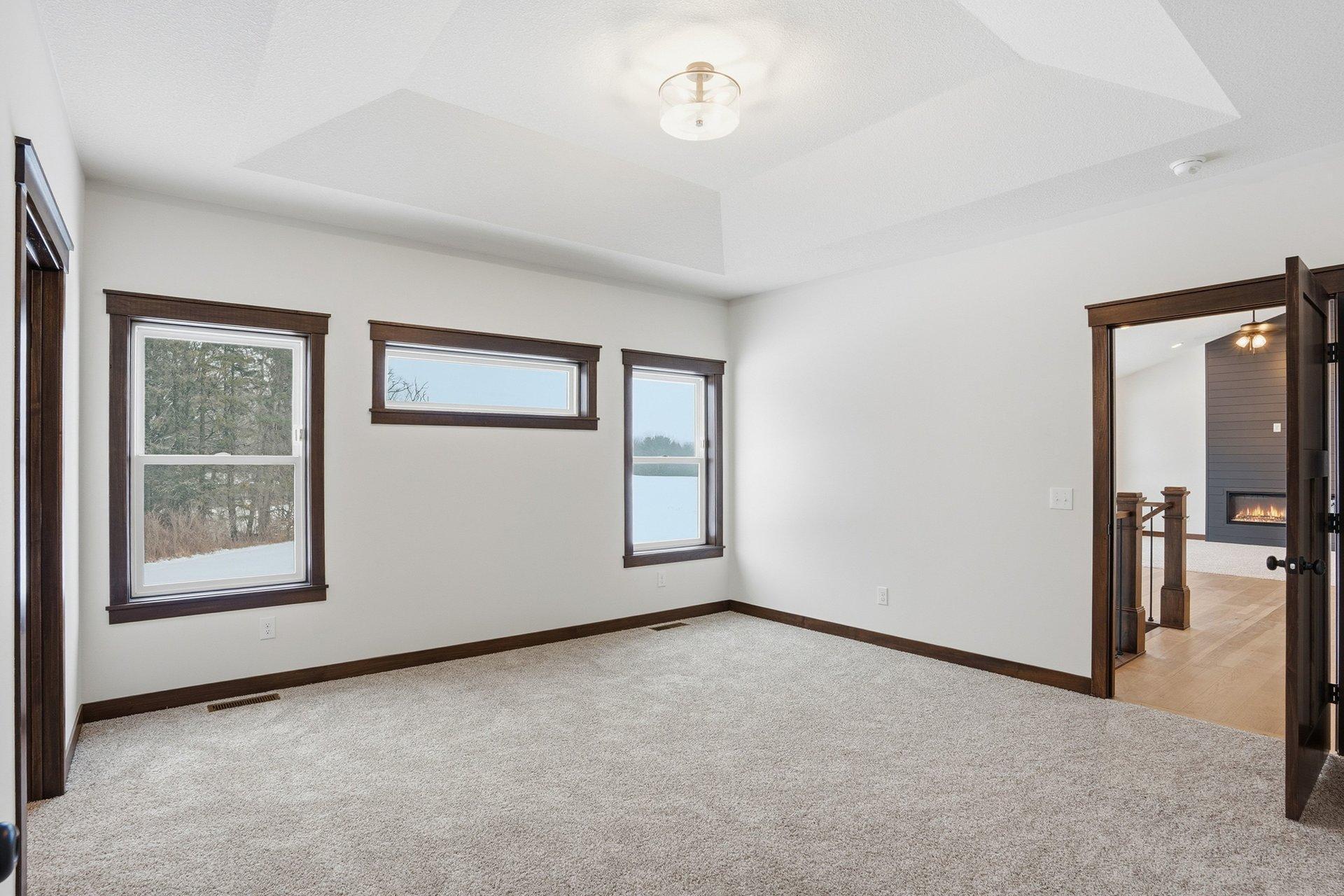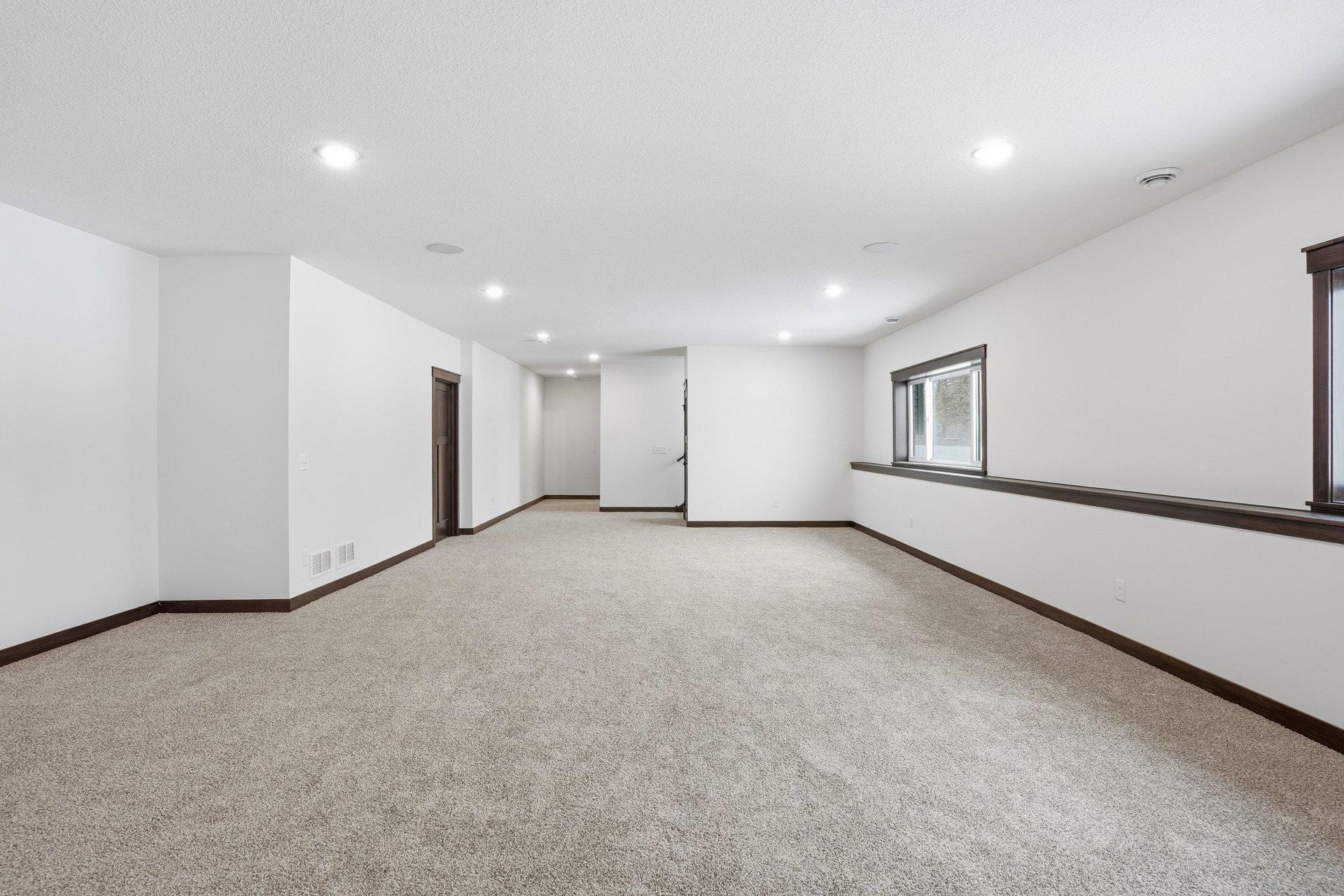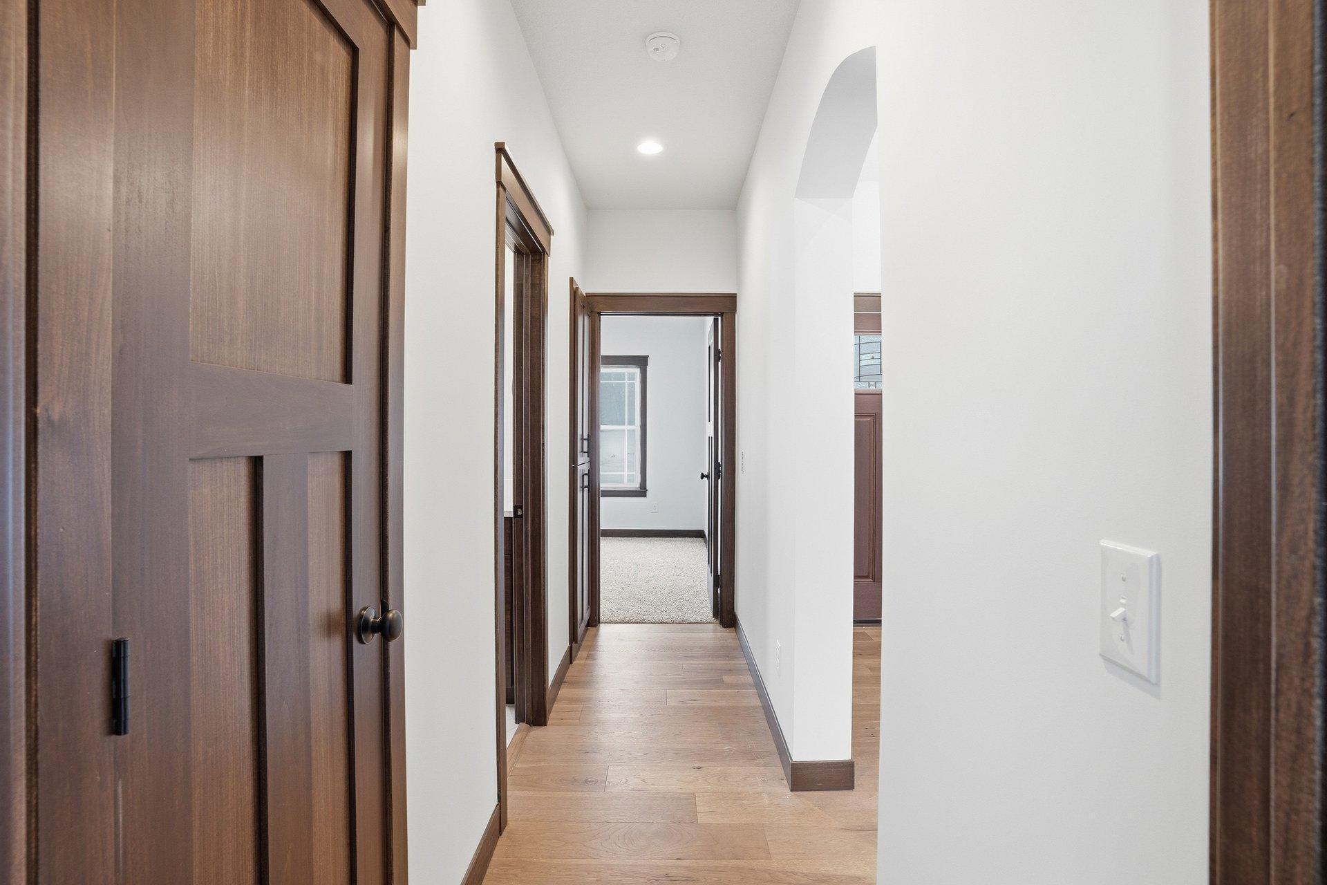 Welcome to The Sedona, an exceptional executive rambler nestled in Ham Lakes premier development, Swedish Chapel Estates. Situated on a private 1.11-acre corner cul-de-sac lot, this beautifully designed luxury home offers refined finishes, functional living, and an inviting open floor plan ideal for both everyday comfort and entertaining. A welcoming front covered porch leads into a gracious foyer and opens to the stunning great room, featuring a stone-front gas fireplace with custom built-in, 11 ceiling with custom beams, an ideal retreat for relaxing evenings. The open-concept gourmet kitchen is a chefs dream, showcasing custom cabinetry, a large center island, Quartz countertops, stainless steel appliances, and a spacious walk-in corner pantry with a custom coffee bar. The adjacent dining room with shiplap ceiling offers seamless access to the 14x25 screened porch and maintenance free Trex deck, perfect for enjoying Minnesotas seasons. The primary suite is a true sanctuary featuring a tray vault ceiling, large walk-incloset and a private and luxurious 3/4 bath featuring a double vanity and walk-in tile shower. Twoadditional main-level bedrooms, both with walk-in closets, provide flexibility for family, guests, orhome office needs. A thoughtfully designed mudroom with custom lockers, coat closet, and main-floor laundry adds everyday convenience. The fully finished walkout lower level expands the living space with a generous family room featuring an electric fireplace and full wet bar, perfect for entertaining. Discover the hidden surprise behind the custom Murphy door, leading to a secret room or wine cellar. This level also includes two additional bedrooms, a Jack-and-Jill bathroom, and a dedicated exercise room. The large four car garage with woodgrain garage doors with custom windows doubles as a mancave and is fully finished, insulated, heated and has a convenient floor drain! Located in the sought-after community of Ham Lake, residents enjoy a perfect balance of privacy, natural beauty, and convenience. Known for its spacious lots, scenic parks, trails, and lakes, Ham Lake offers a peaceful, upscale lifestyle while remaining close to shopping, dining, top-rated schools, and easy access to major highways for commuting to the Twin Cities. This remarkable home offers luxury, space, and serenity in one of the north metros most desirable neighborhoods, an exceptional opportunity to call Swedish Chapel Estates Home.