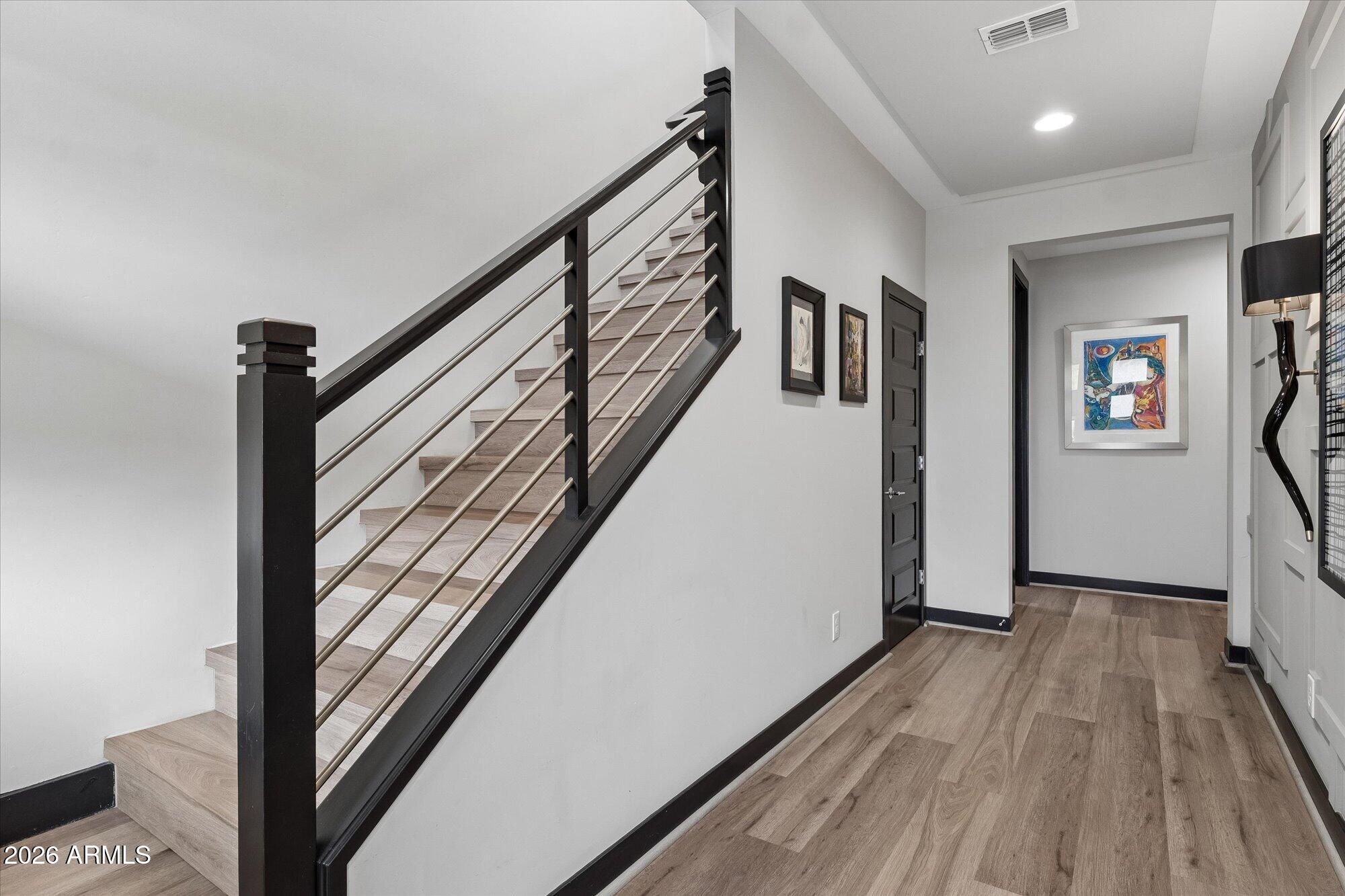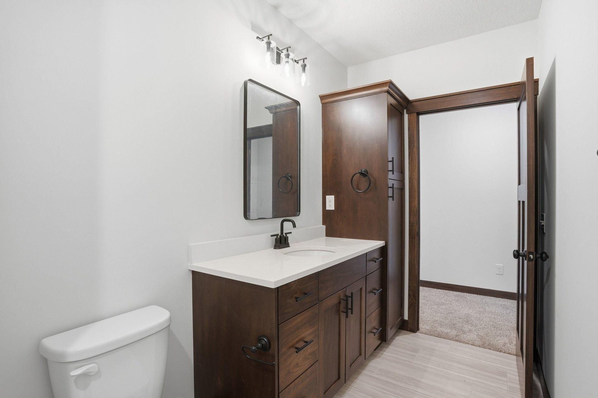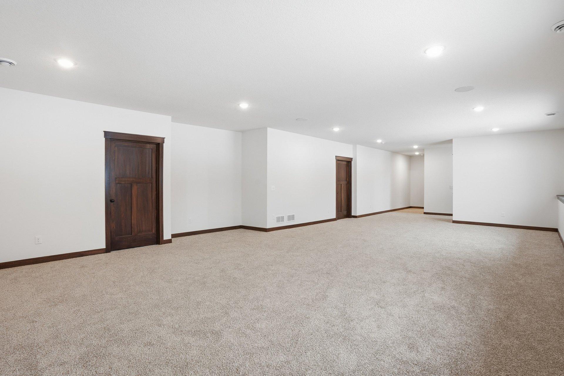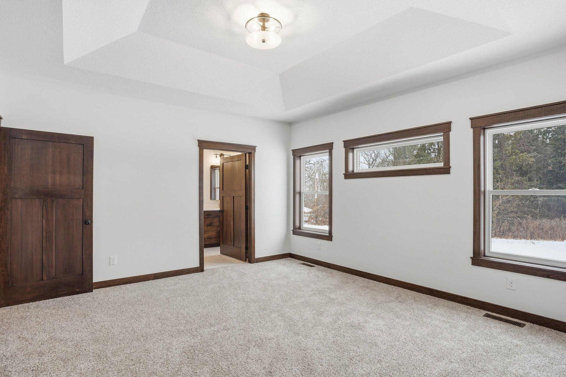 Welcome to The Sedona, an exceptional executive rambler nestled in Ham Lakes premier development, Swedish Chapel Estates. Situated on a private 1.11-acre corner cul-de-sac lot, this beautifully designed luxury home offers refined finishes, functional living, and an inviting open floor plan ideal for both everyday comfort and entertaining. A welcoming front covered porch leads into a gracious foyer and opens to the stunning great room, featuring a stone-front gas fireplace with custom built-in, 11 ceiling with custom beams, an ideal retreat for relaxing evenings. The open-concept gourmet kitchen is a chefs dream, showcasing custom cabinetry, a large center island, Quartz countertops, stainless steel appliances, and a spacious walk-in corner pantry with a custom coffee bar. The adjacent dining room with shiplap ceiling offers seamless access to the 14x25 screened porch and maintenance free Trex deck, perfect for enjoying Minnesotas seasons. The primary suite is a true sanctuary featuring a tray vault ceiling, large walk-incloset and a private and luxurious 3/4 bath featuring a double vanity and walk-in tile shower. Twoadditional main-level bedrooms, both with walk-in closets, provide flexibility for family, guests, orhome office needs. A thoughtfully designed mudroom with custom lockers, coat closet, and main-floor laundry adds everyday convenience. The fully finished walkout lower level expands the living space with a generous family room featuring an electric fireplace and full wet bar, perfect for entertaining. Discover the hidden surprise behind the custom Murphy door, leading to a secret room or wine cellar. This level also includes two additional bedrooms, a Jack-and-Jill bathroom, and a dedicated exercise room. The large four car garage with woodgrain garage doors with custom windows doubles as a mancave and is fully finished, insulated, heated and has a convenient floor drain! Located in the sought-after community of Ham Lake, residents enjoy a perfect balance of privacy, natural beauty, and convenience. Known for its spacious lots, scenic parks, trails, and lakes, Ham Lake offers a peaceful, upscale lifestyle while remaining close to shopping, dining, top-rated schools, and easy access to major highways for commuting to the Twin Cities. This remarkable home offers luxury, space, and serenity in one of the north metros most desirable neighborhoods, an exceptional opportunity to call Swedish Chapel Estates Home.