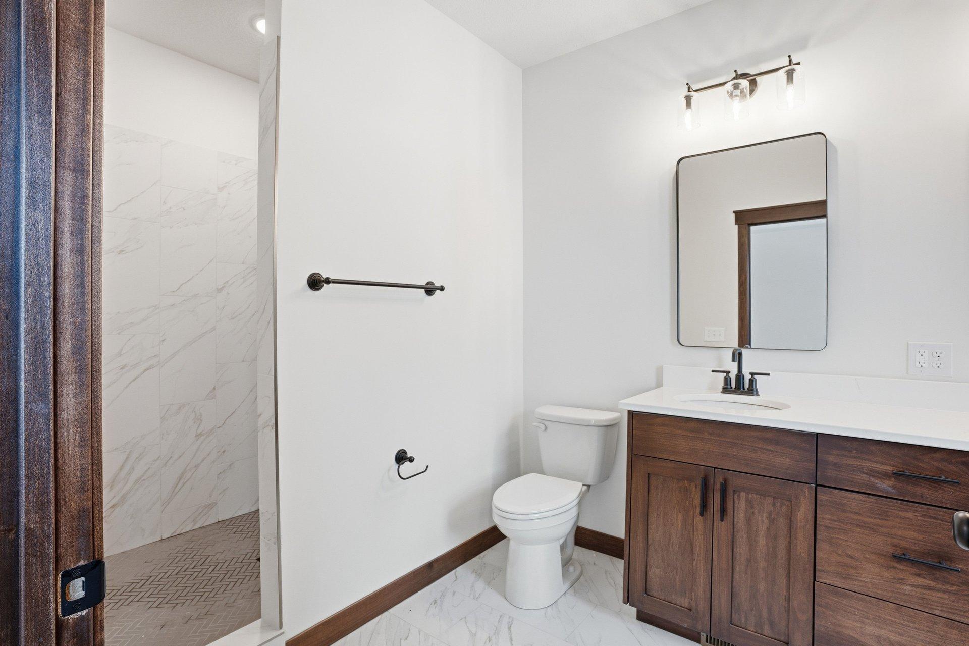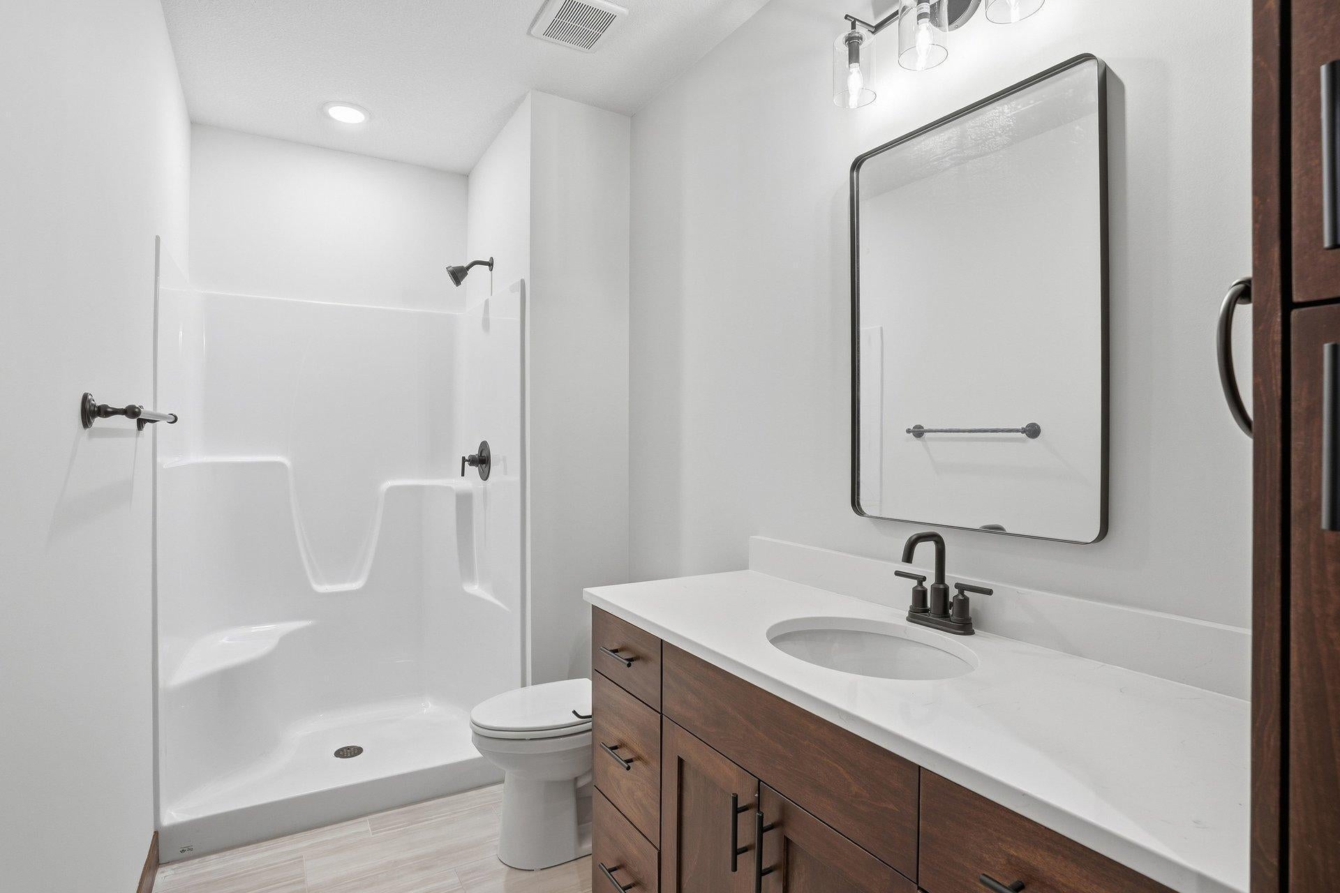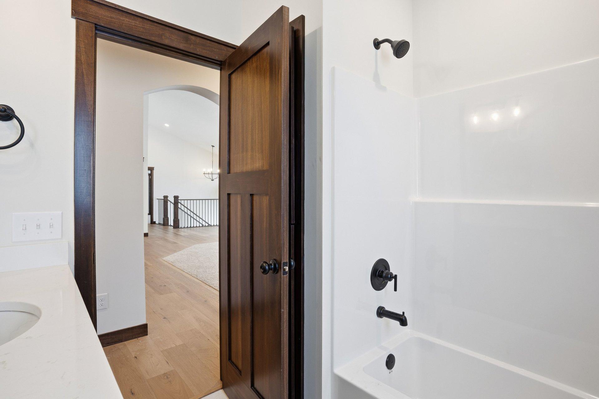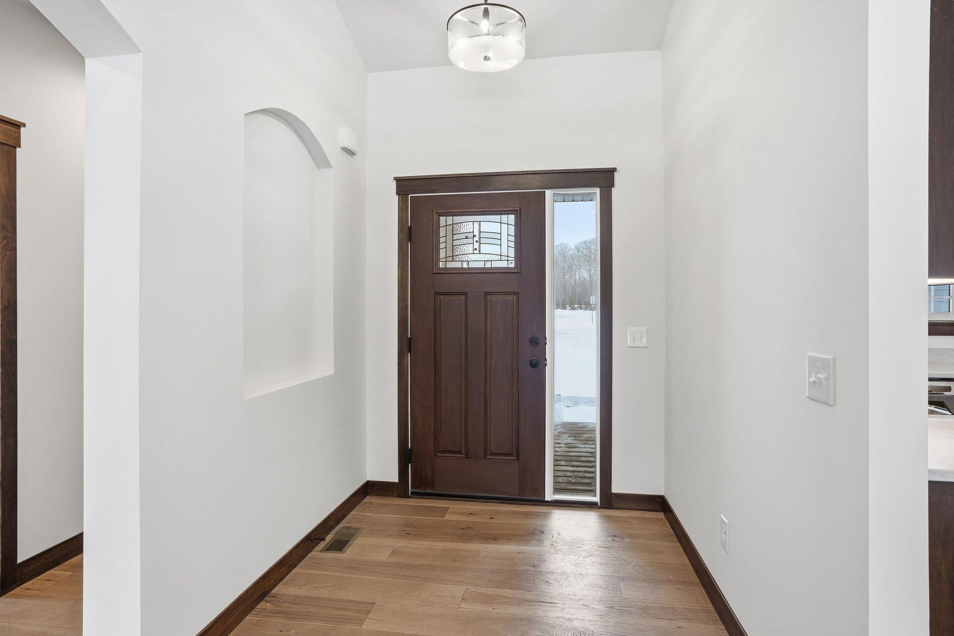 Welcome to 4282 159th Avenue NE in the highly desirable Kohler Farms development in Ham Lake, where modern design meets peaceful, spacious living. This stunning Eternity Homes Tahoe rambler offers thoughtfully designed one-level living with an open-concept layout perfect for todays lifestyle. The vaulted main living area is filled with natural light, enhanced by striking black Andersen windows and rich engineered wood flooring throughout the main spaces. The kitchen is both stylish and functional, featuring oversized modern cabinetry, quartz countertops, and a generous walk-in pantry, ideal for everyday living and effortless entertaining. Quality craftsmanship shines in every detail, from the stained, onsite-finished trim and doors to the impressive 8-foot doors on both levels. The smart split-bedroom design provides privacy, with the owners suite set apart as its own retreat. Enjoy a seamless flow from the bedroom to a spa-like bath and into a spacious walk-in closet with direct access to the laundry room, true convenience and comfort. The finished walkout lower level expands your living space with 9-foot ceilings and large windows, creating a bright and welcoming environment perfect for gatherings, relaxation, or recreation. The oversized 4-car garage is a standout feature and is fully finished, insulated and includes a garage heater, making it ideal for car enthusiasts, hobbyists, or extra storage year-round. Kohler Farms is one of Ham Lakes newest and most sought-after communities, offering a blend of newer construction homes, spacious homesites, and a serene setting surrounded by nature. Residents enjoy a quiet, neighborhood feel while still being within easy reach of everyday conveniences. Living in Ham Lake means embracing a lifestyle that balances tranquility and accessibility. The area is known for its abundant green space, lakes, and outdoor recreation. Spend weekends exploring nearby parks, trails, and golf courses, or enjoy local favorites like Ham Lake Park and Majestic Oaks Golf Club. With a strong sense of community, local events, and convenient access to shopping, dining, and major commuting routes, Ham Lake offers the perfect place to call home. If youre looking for a beautifully crafted home in a growing community that offers space, privacy, and a connection to the outdoors, this Kohler Farms rambler is a must-see.