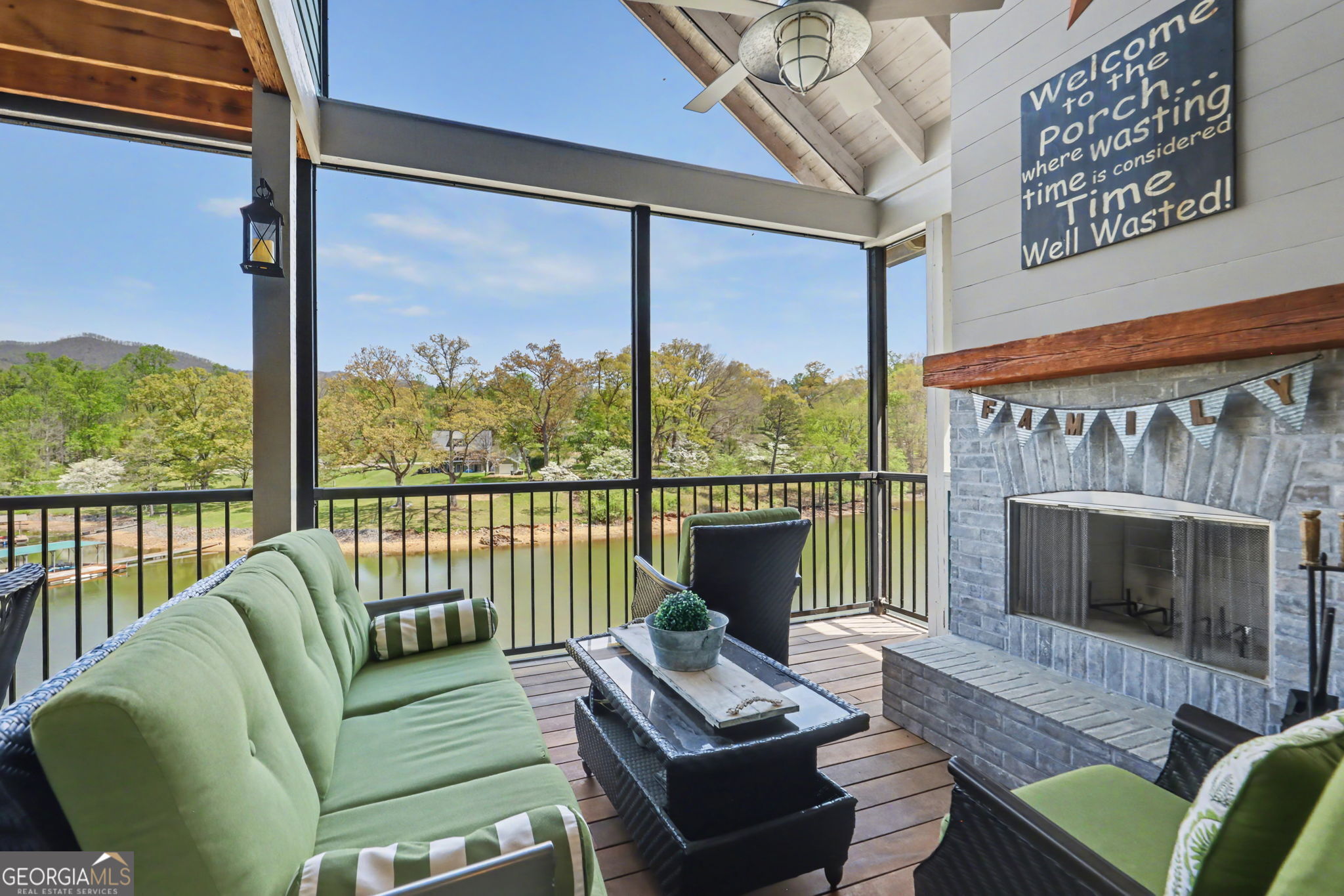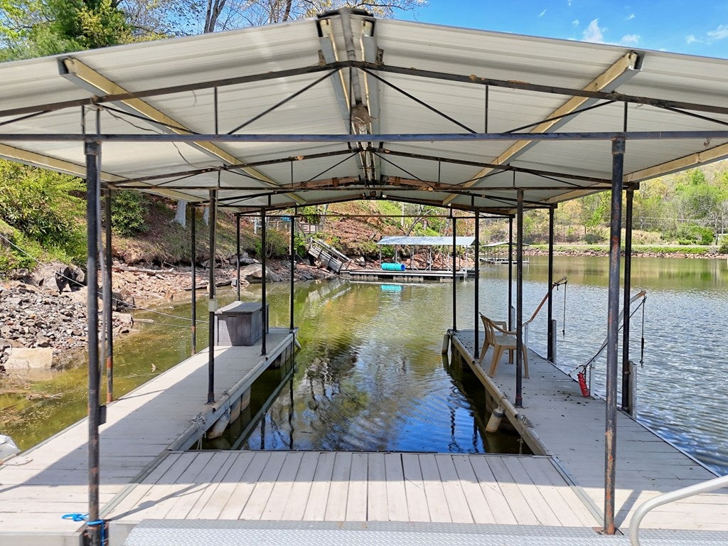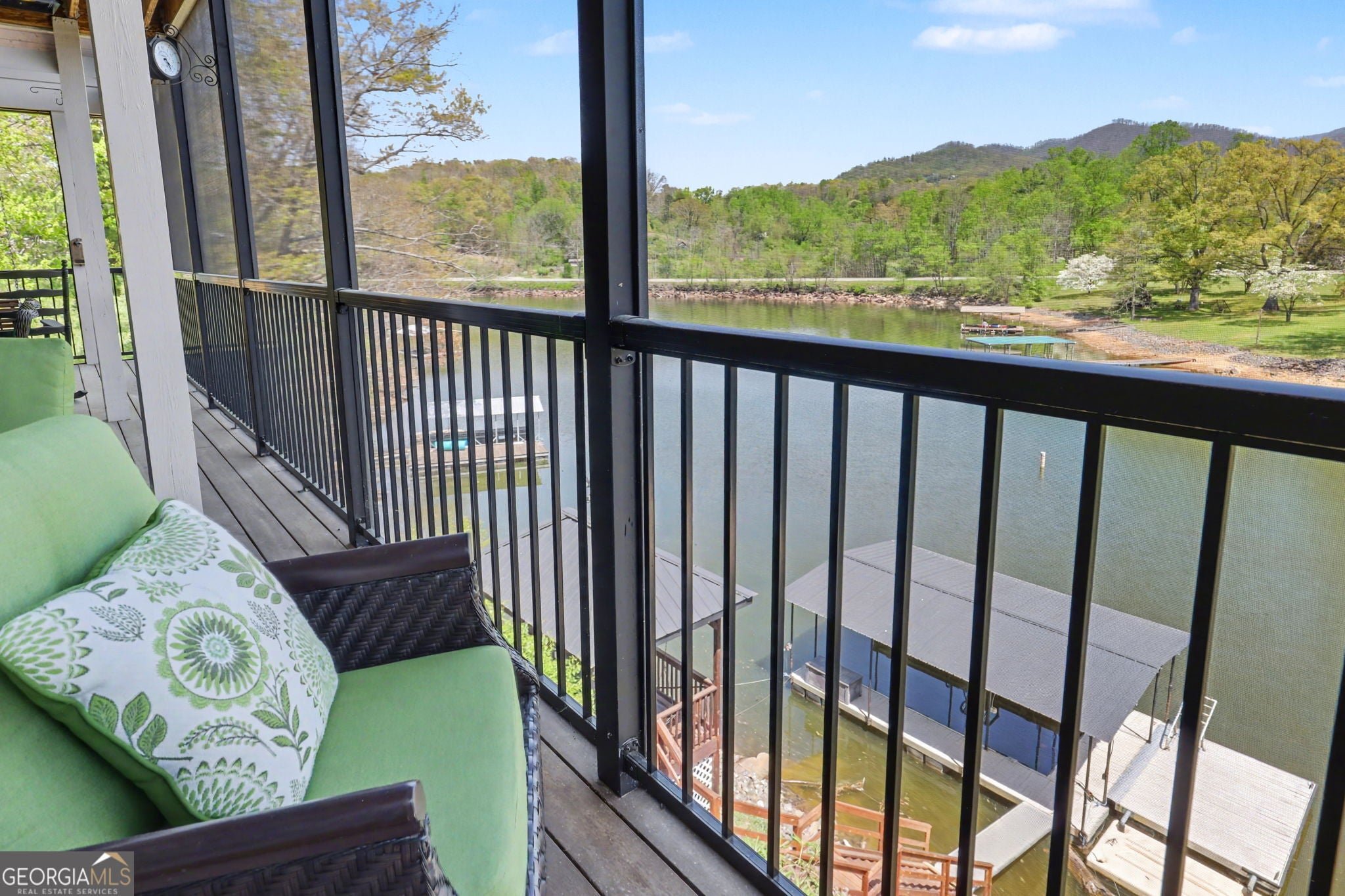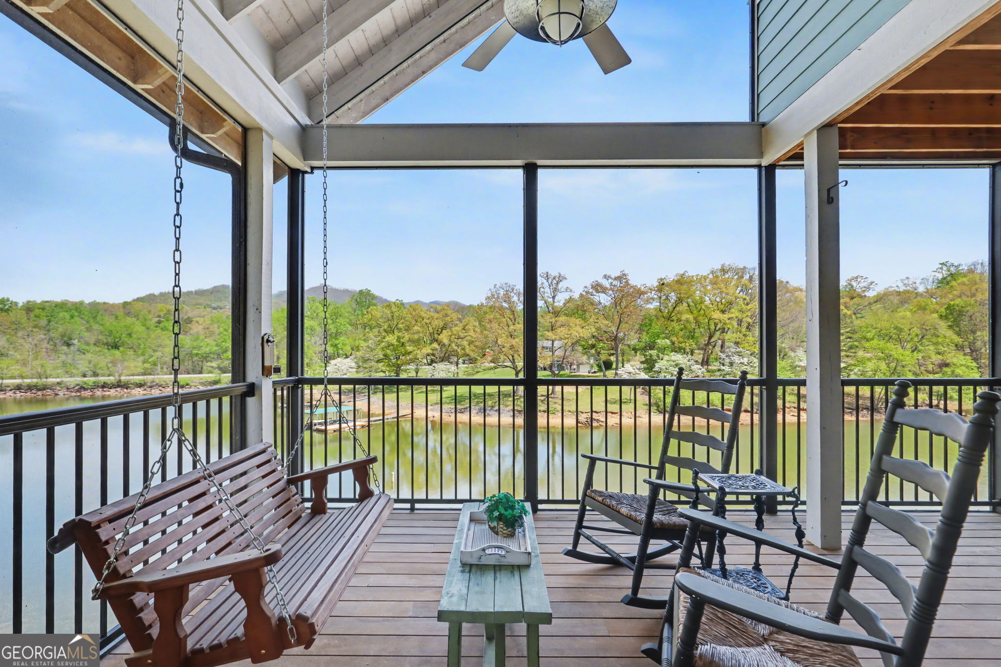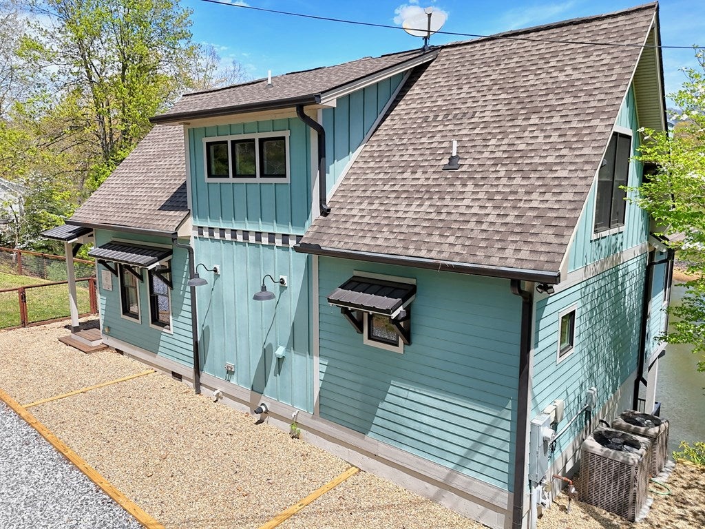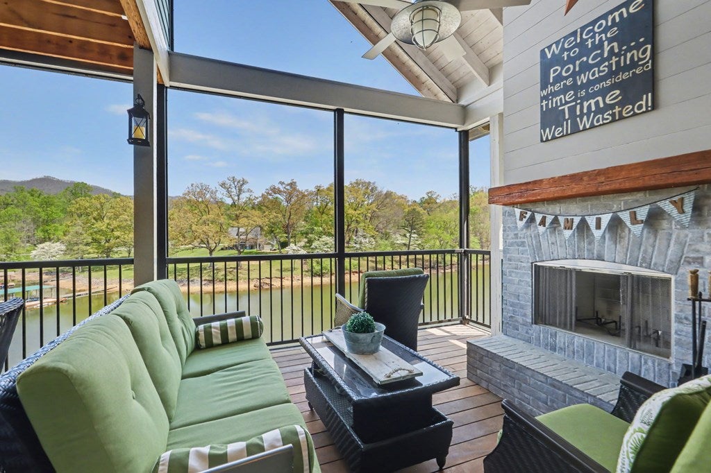 Enjoy year-round water and seamless indoor-outdoor living in this fully furnished, turnkey lakefront retreat on Lake Chatuge. Built by a builder for his own family, this thoughtfully designed home is ideally positioned in a quiet no-wake zone offering calm deep water, perfect for swimming, kayaking, and relaxing in every season. The 3BR/2BA/2HBA home features an open-concept layout with cathedral ceilings, exposed beams, a gas log fireplace with custom built-in surround. The main level opens directly onto a full-length screened porch, with a wood burning fire place and Tiger wood decking. This creates an ideal extension of the living space for entertaining or unwinding while taking in peaceful lake and mountain views. The kitchen is well appointed with granite countertops, stainless steel appliances, dishwasher, a gas cooktop, built in wall oven and microwave, coffee bar and pantry. The main level also offers convenient single-level living with a primary bed room and private bath with custom tiled walk-in shower. 1/2 bath and laundry complete this level. Upstairs, youll find two guest bedrooms, a full bath, tile shower and a charming sleeping porch with custom convertible hanging swings/beds. The lower level provides additional flexibility with a family room, half bath, bonus room, and access to another large deck. A lakeside gazebo, fenced side yard, and storage building. Aluminum covered single-slip dock with swim platform and jet ski dock completes this exceptional lakefront offering.