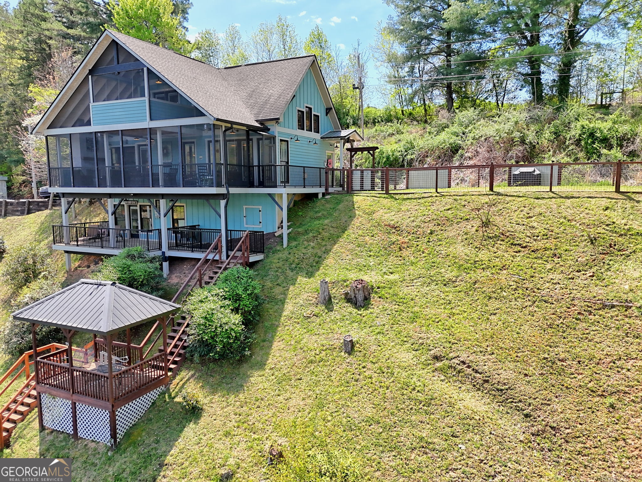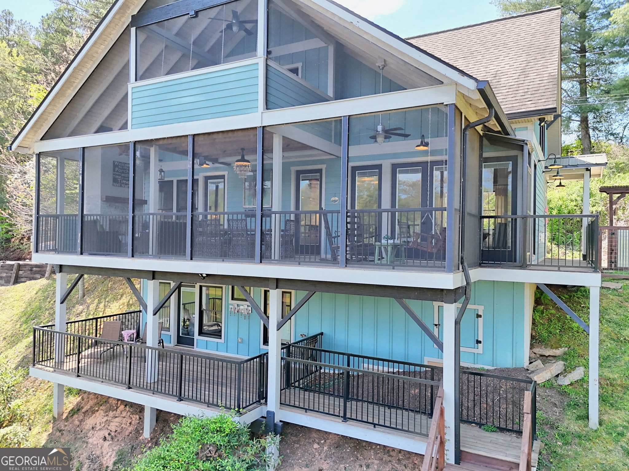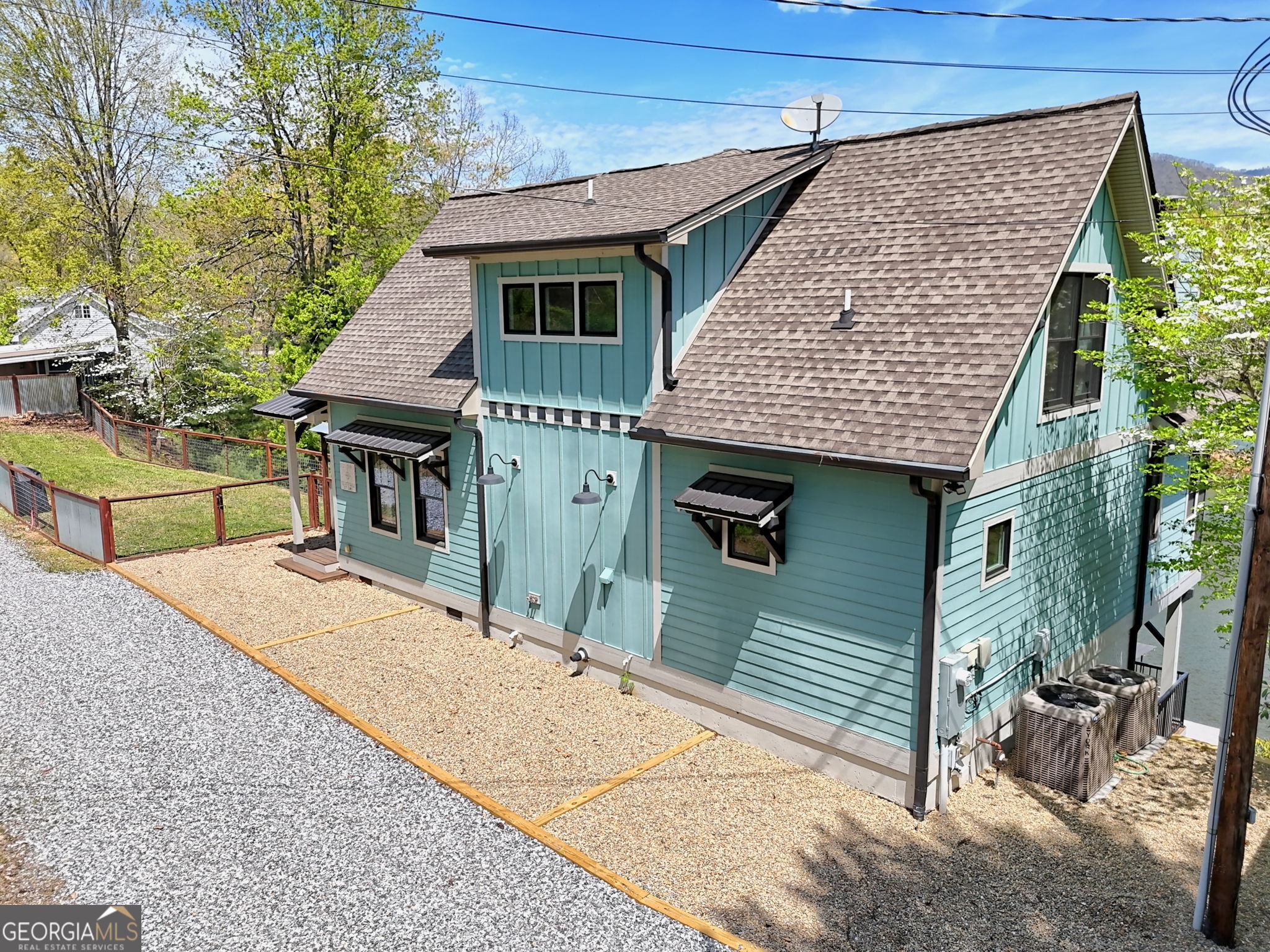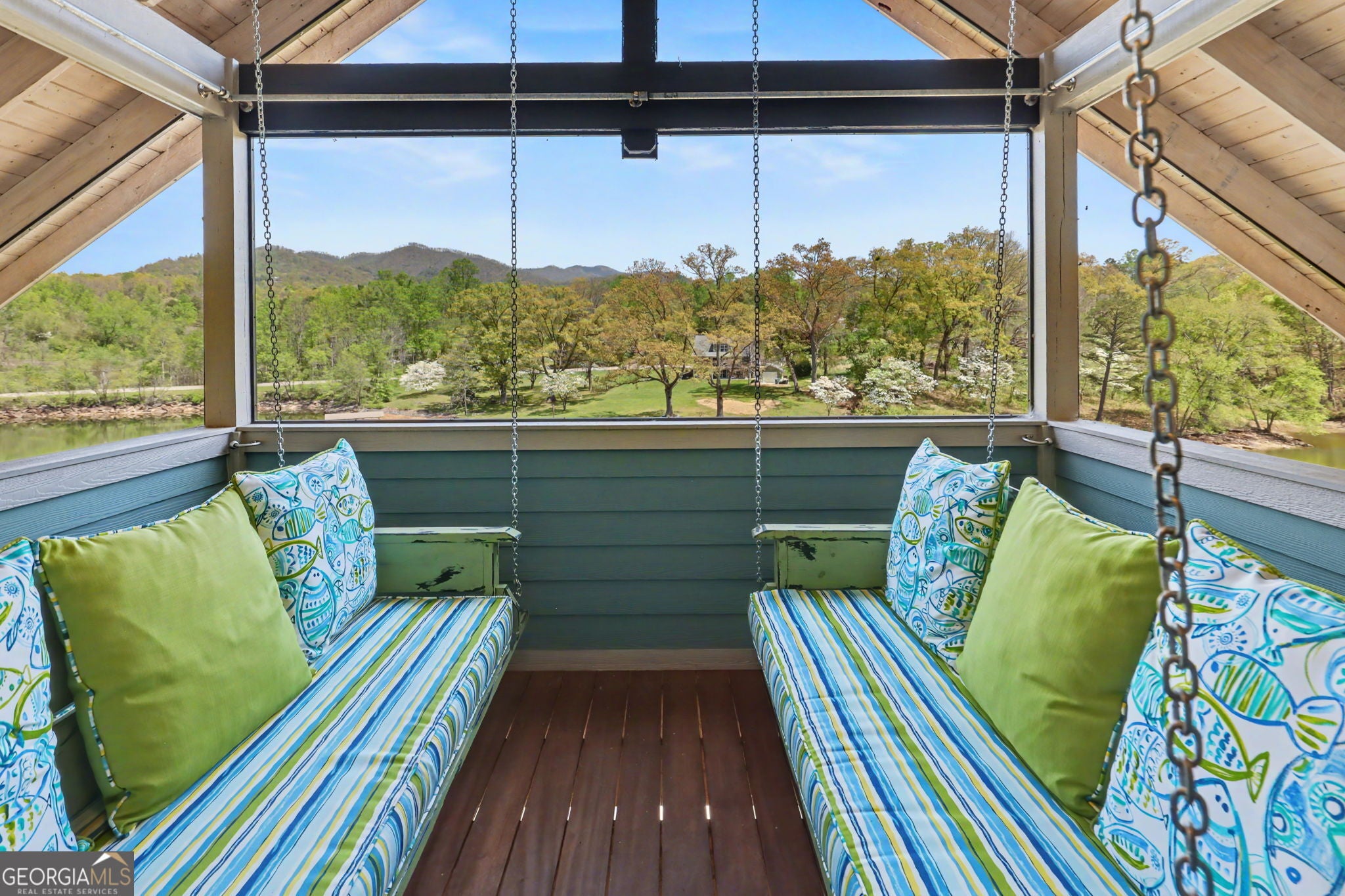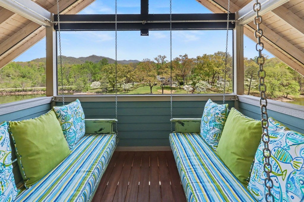 Enjoy year-round water and seamless indoor-outdoor living in this fully furnished, turnkey lakefront retreat on Lake Chatuge. Built by a builder for his own family, this thoughtfully designed home is ideally positioned in a quiet no-wake zone offering calm deep water, perfect for swimming, kayaking, and relaxing in every season. The 3BR/2BA/2HBA home features an open-concept layout with cathedral ceilings, exposed beams, a gas log fireplace with custom built-in surround. The main level opens directly onto a full-length screened porch, with a wood burning fire place and Tiger wood decking. This creates an ideal extension of the living space for entertaining or unwinding while taking in peaceful lake and mountain views. The kitchen is well appointed with granite countertops, stainless steel appliances, dishwasher, a gas cooktop, built in wall oven and microwave, coffee bar and pantry. The main level also offers convenient single-level living with a primary bed room and private bath with custom tiled walk-in shower. 1/2 bath and laundry complete this level. Upstairs, youll find two guest bedrooms, a full bath, tile shower and a charming sleeping porch with custom convertible hanging swings/beds. The lower level provides additional flexibility with a family room, half bath, bonus room, and access to another large deck. A lakeside gazebo, fenced side yard, and storage building. Aluminum covered single-slip dock with swim platform and jet ski dock completes this exceptional lakefront offering.
