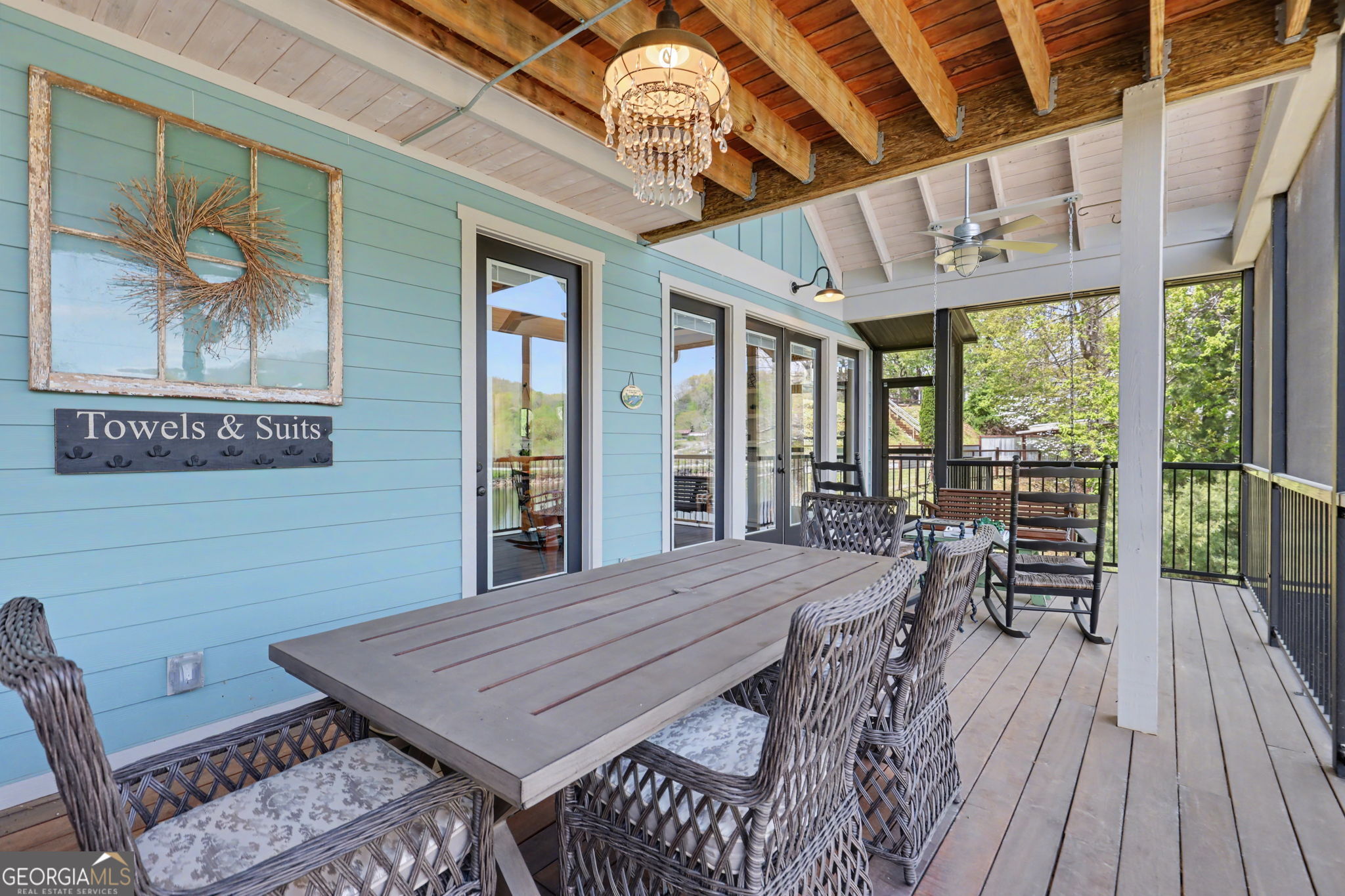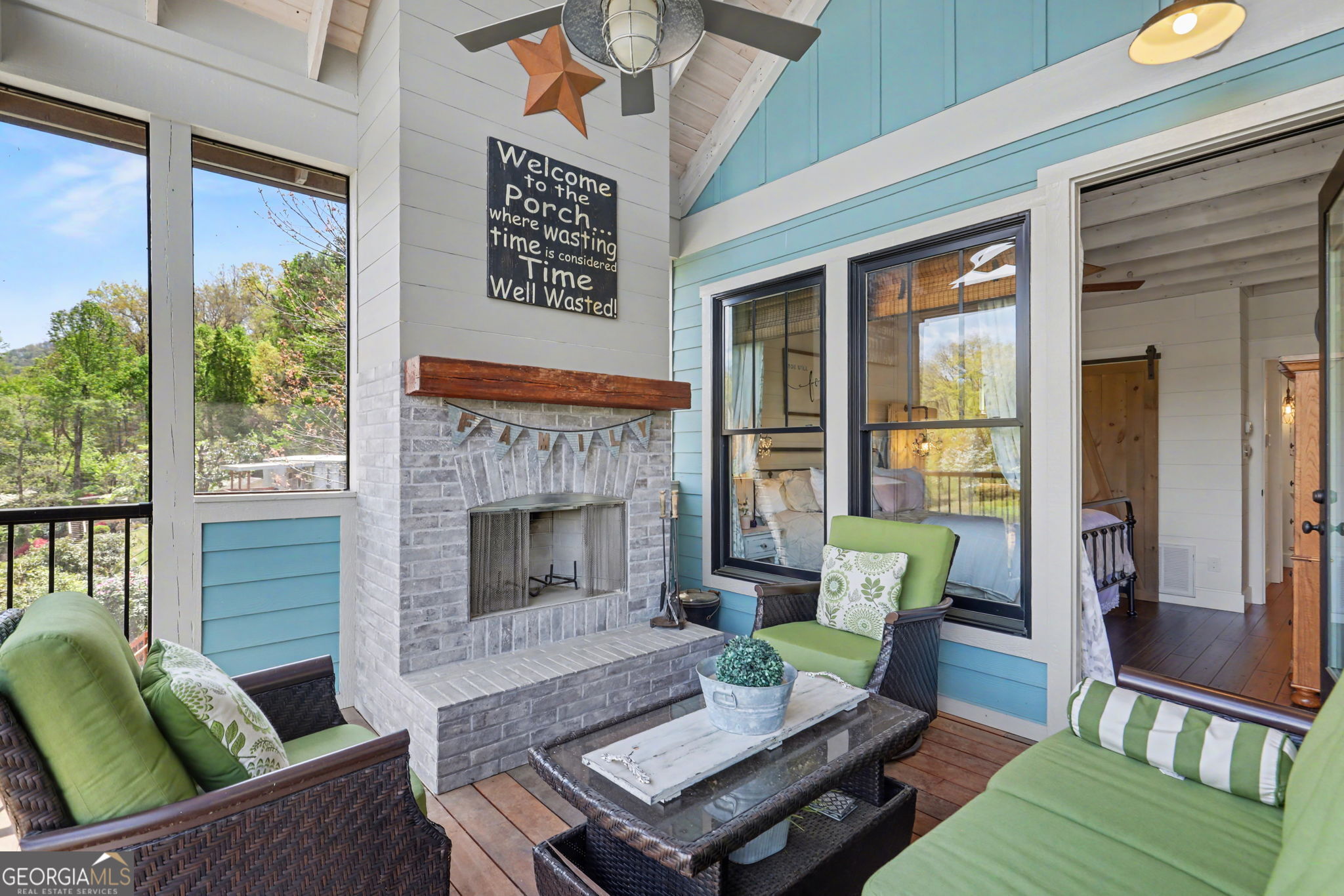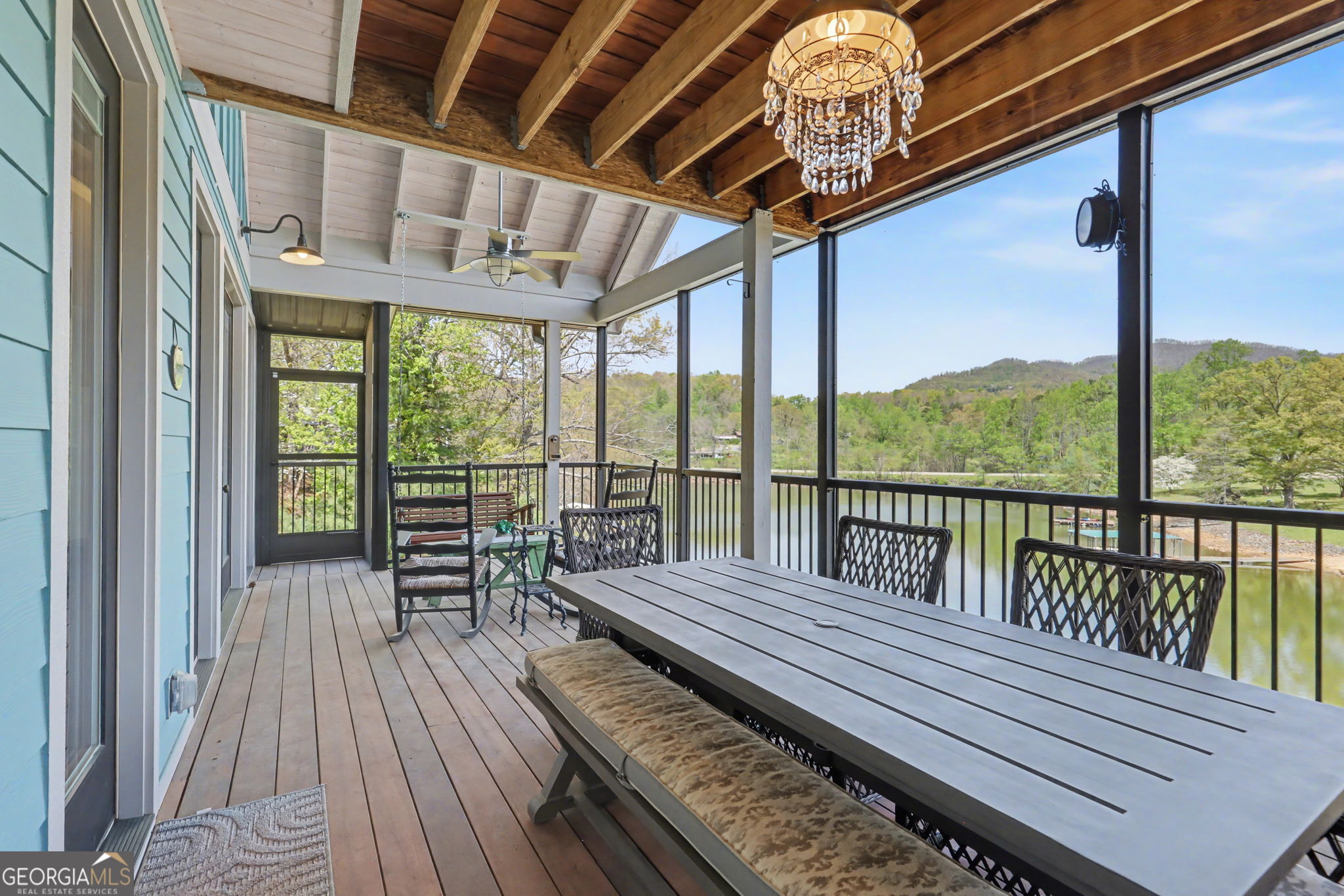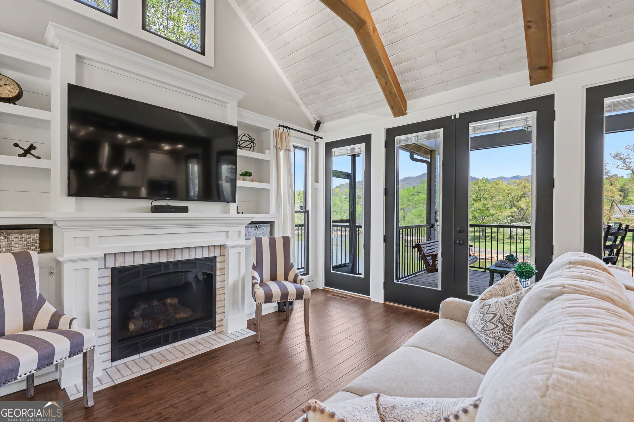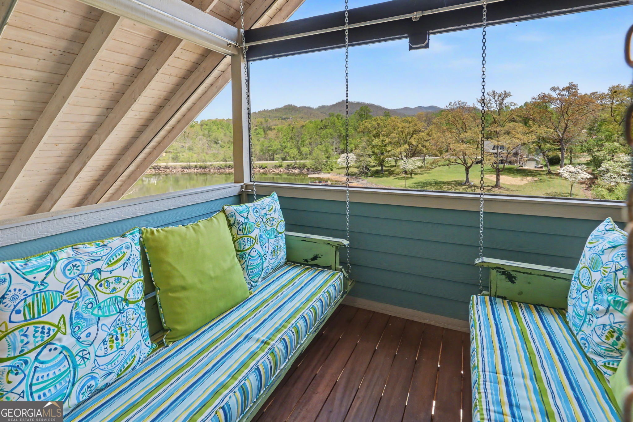 Enjoy year-round water and seamless indoor-outdoor living in this fully furnished, turnkey lakefront retreat on Lake Chatuge. Built by a builder for his own family, this thoughtfully designed home is ideally positioned in a quiet no-wake zone offering calm deep water, perfect for swimming, kayaking, and relaxing in every season. The 3BR/2BA/2HBA home features an open-concept layout with cathedral ceilings, exposed beams, a gas log fireplace with custom built-in surround. The main level opens directly onto a full-length screened porch, with a wood burning fire place and Tiger wood decking. This creates an ideal extension of the living space for entertaining or unwinding while taking in peaceful lake and mountain views. The kitchen is well appointed with granite countertops, stainless steel appliances, dishwasher, a gas cooktop, built in wall oven and microwave, coffee bar and pantry. The main level also offers convenient single-level living with a primary bed room and private bath with custom tiled walk-in shower. 1/2 bath and laundry complete this level. Upstairs, youll find two guest bedrooms, a full bath, tile shower and a charming sleeping porch with custom convertible hanging swings/beds. The lower level provides additional flexibility with a family room, half bath, bonus room, and access to another large deck. A lakeside gazebo, fenced side yard, and storage building. Aluminum covered single-slip dock with swim platform and jet ski dock completes this exceptional lakefront offering.