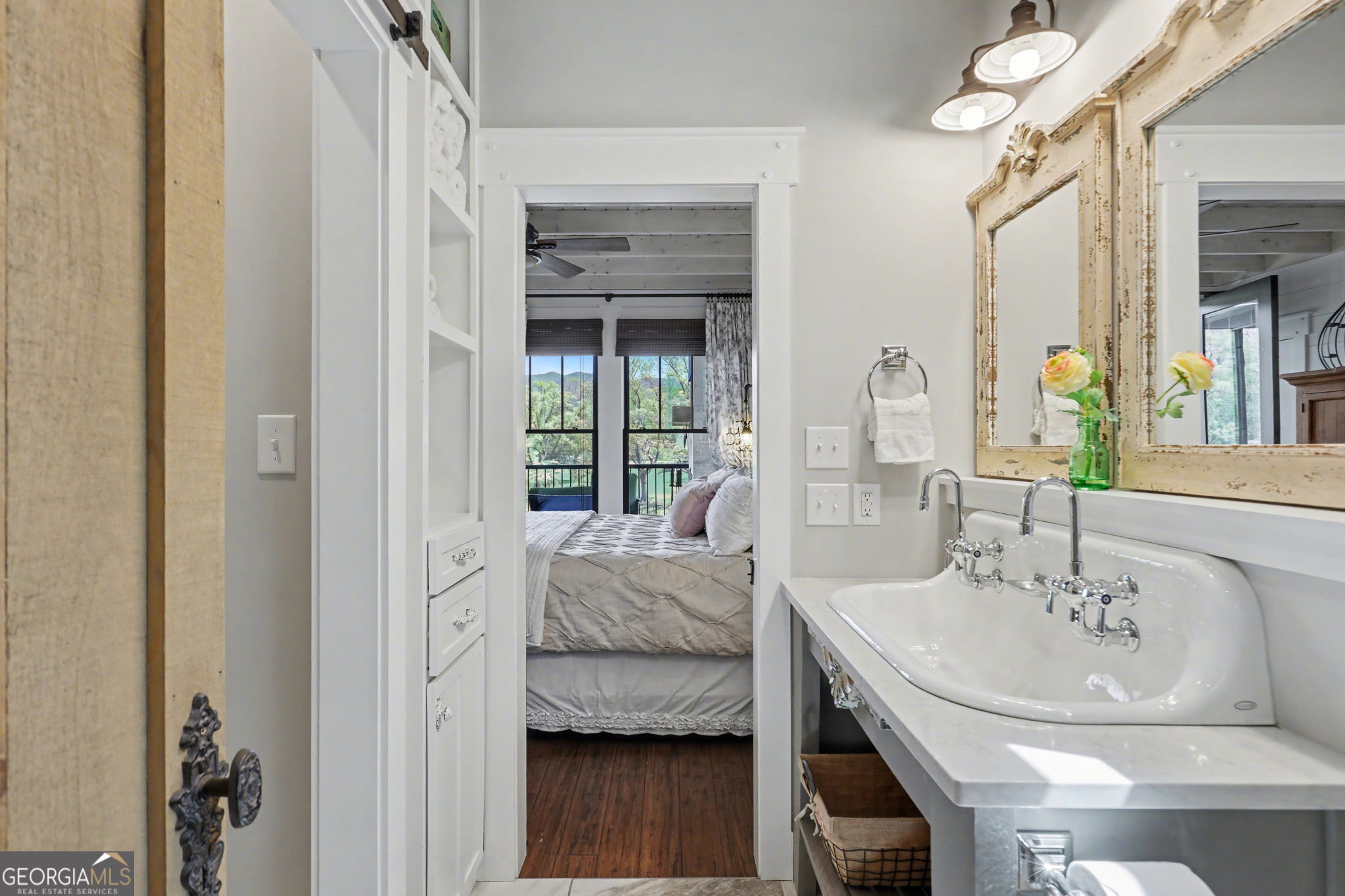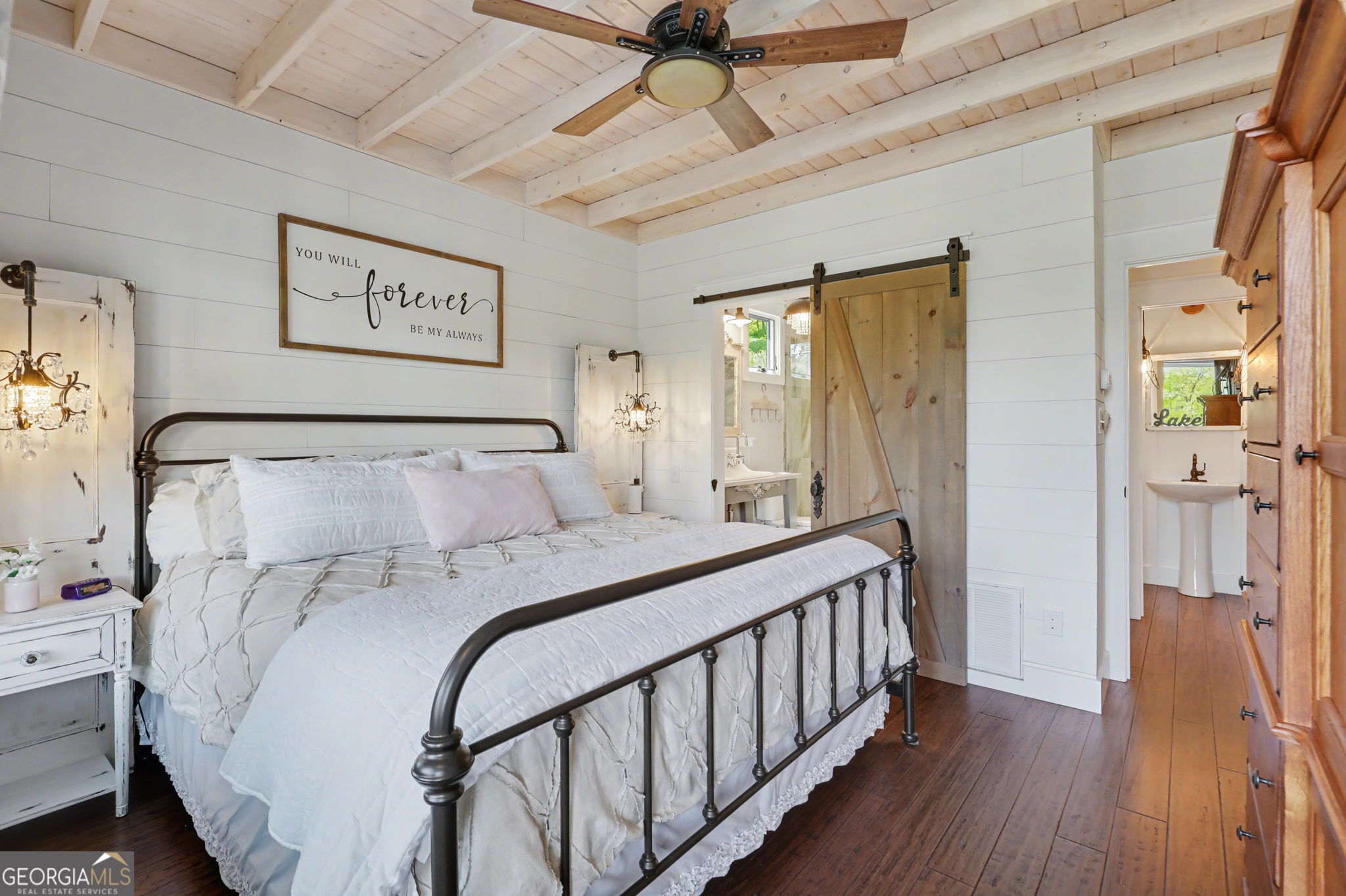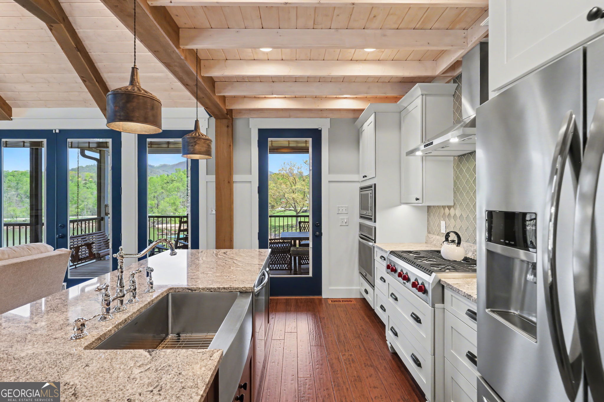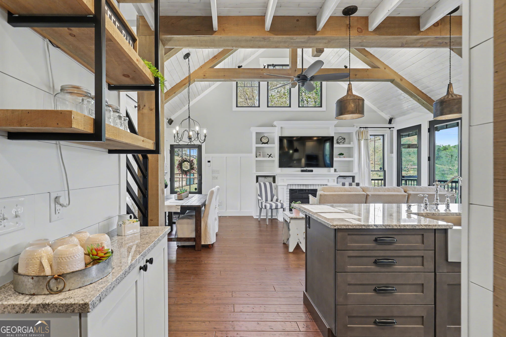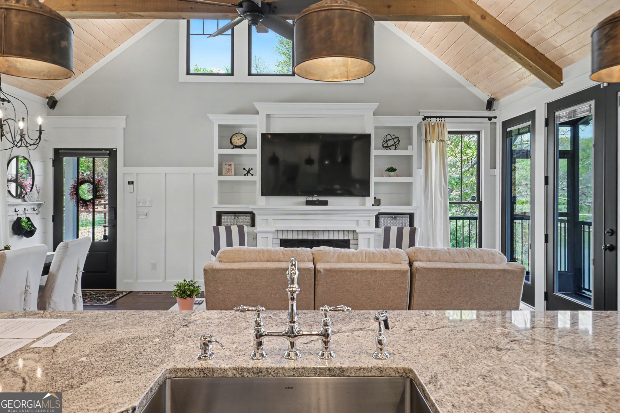 Enjoy year-round water and seamless indoor-outdoor living in this fully furnished, turnkey lakefront retreat on Lake Chatuge. Built by a builder for his own family, this thoughtfully designed home is ideally positioned in a quiet no-wake zone offering calm deep water, perfect for swimming, kayaking, and relaxing in every season. The 3BR/2BA/2HBA home features an open-concept layout with cathedral ceilings, exposed beams, a gas log fireplace with custom built-in surround. The main level opens directly onto a full-length screened porch, with a wood burning fire place and Tiger wood decking. This creates an ideal extension of the living space for entertaining or unwinding while taking in peaceful lake and mountain views. The kitchen is well appointed with granite countertops, stainless steel appliances, dishwasher, a gas cooktop, built in wall oven and microwave, coffee bar and pantry. The main level also offers convenient single-level living with a primary bed room and private bath with custom tiled walk-in shower. 1/2 bath and laundry complete this level. Upstairs, youll find two guest bedrooms, a full bath, tile shower and a charming sleeping porch with custom convertible hanging swings/beds. The lower level provides additional flexibility with a family room, half bath, bonus room, and access to another large deck. A lakeside gazebo, fenced side yard, and storage building. Aluminum covered single-slip dock with swim platform and jet ski dock completes this exceptional lakefront offering.