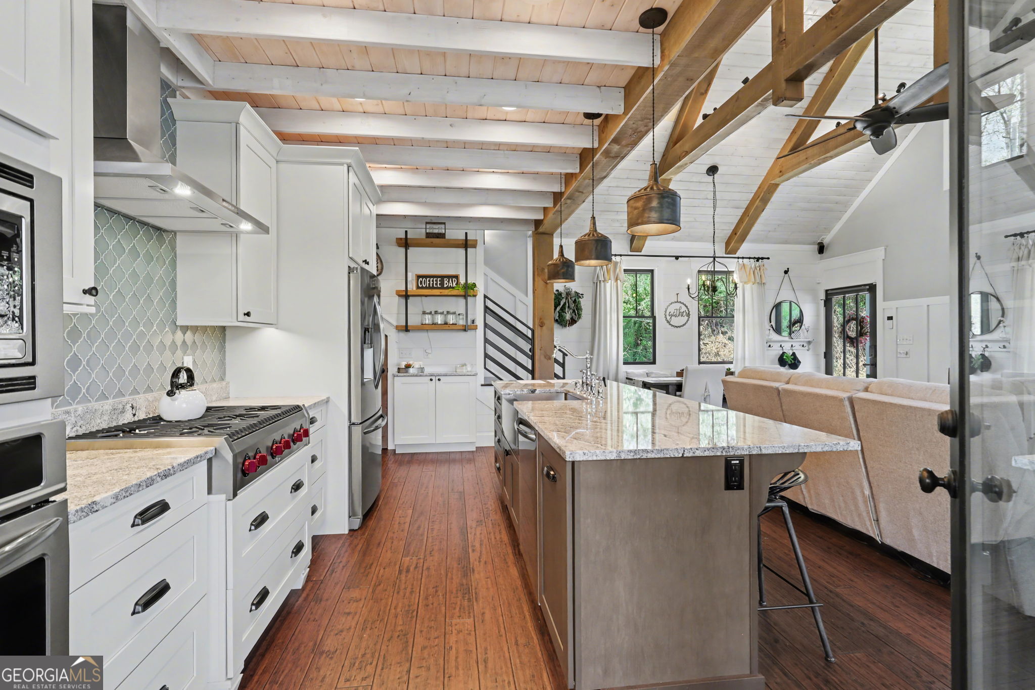 Experience inspired luxury in the coveted Roads End neighborhood, where thoughtful design meets elevated coastal living. This stunning 2,636 sq. ft. modern masterpiece welcomes you w/ open-concept main level crafted for both everyday comfort & refined entertaining. The chefs kitchen serves as true centerpiece, feat.