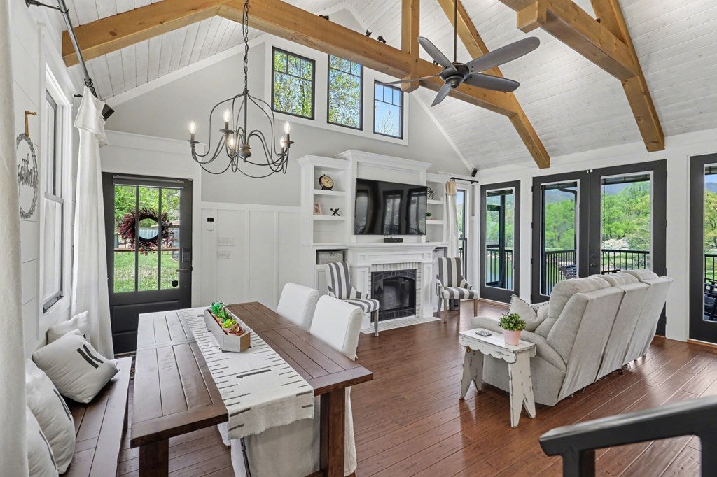 Enjoy year-round water and seamless indoor-outdoor living in this fully furnished, turnkey lakefront retreat on Lake Chatuge. Built by a builder for his own family, this thoughtfully designed home is ideally positioned in a quiet no-wake zone offering calm deep water, perfect for swimming, kayaking, and relaxing in every season.