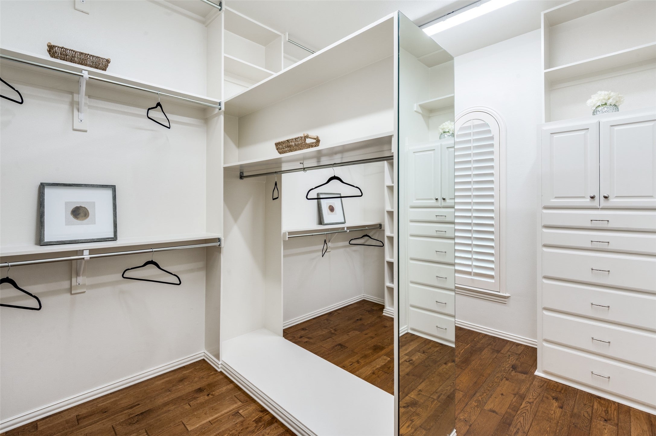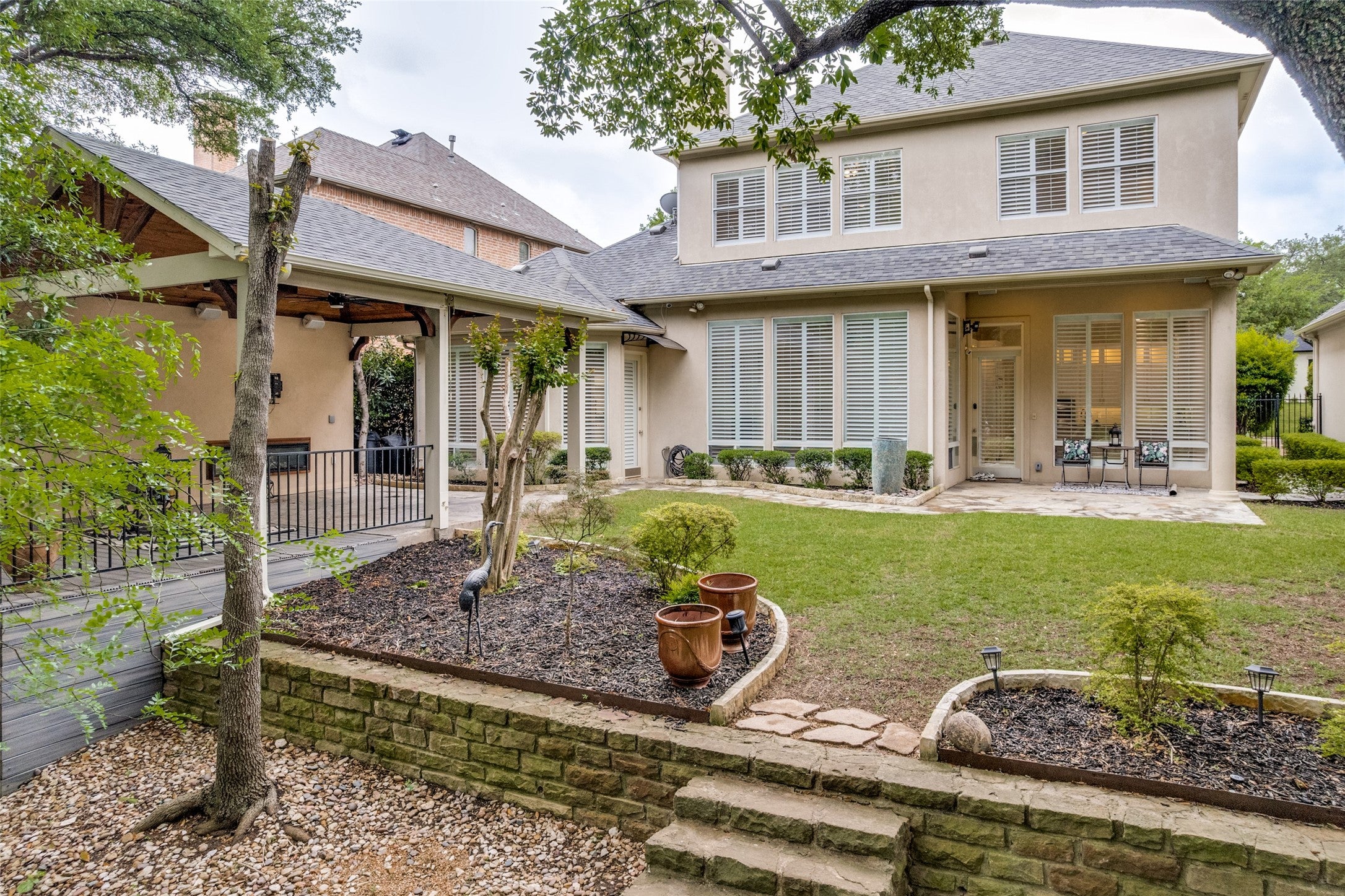 Steve Roberts custom on a wooded creek lot in exclusive Starwood. Double iron front doors open to a light-filled custom home with creek views from nearly every room, plus tall ceilings, built-in speakers, plantation shutters, and iron balusters throughout. The family room features a wall of windows, built-in entertainment center and bookshelves, and a gas-log fireplace with wood mantel. The gourmet kitchen offers an eat-in nook, bar seating, stainless steel appliances, double ovens, built-in refrigerator, gas cooktop, beverage refrigerator, and a walk-in pantry with built-ins. Art niches lead to the primary suite, complete with backyard access, tray ceiling detail, and a spa-like bathroom with seamless glass shower, dual vanities, and a walk-in closet with extensive built-ins. Upstairs, the game room includes a built-in desk and cabinetry, making it ideal for a study area, home office, or flex space. Both secondary bedrooms feature walk-in closets. The backyard is the showstopper: a covered stone patio leads to an outdoor living area with fireplace, speakers, dual ceiling fans, and a cedar-lined ceiling, all surrounded by mature trees and the natural beauty of the creek lot beyond. Starwood offers gated and guarded entry, a community clubhouse, fitness facility, swimming pools, tennis courts, playground, and wood-lined walking and biking trails through the creeks and greenbelt areas all just minutes from The Star, DNT, 121, Stonebriar, shopping, and dining.