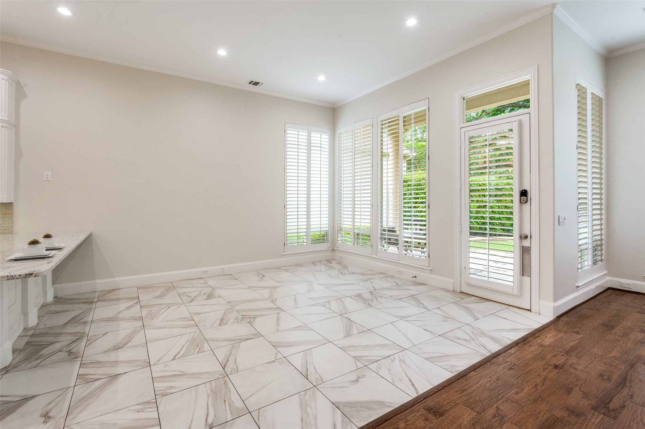Nestled on a spacious corner lot, this beautifully updated luxurious home has a living design with comfort and functionality. Over 300K of high end updates including Arcadia Oak Waterproof flooring throughout, solid 8 interior doors, complemented by extensive custom molding, mold casings, and plantation shutters for a timeless feel.