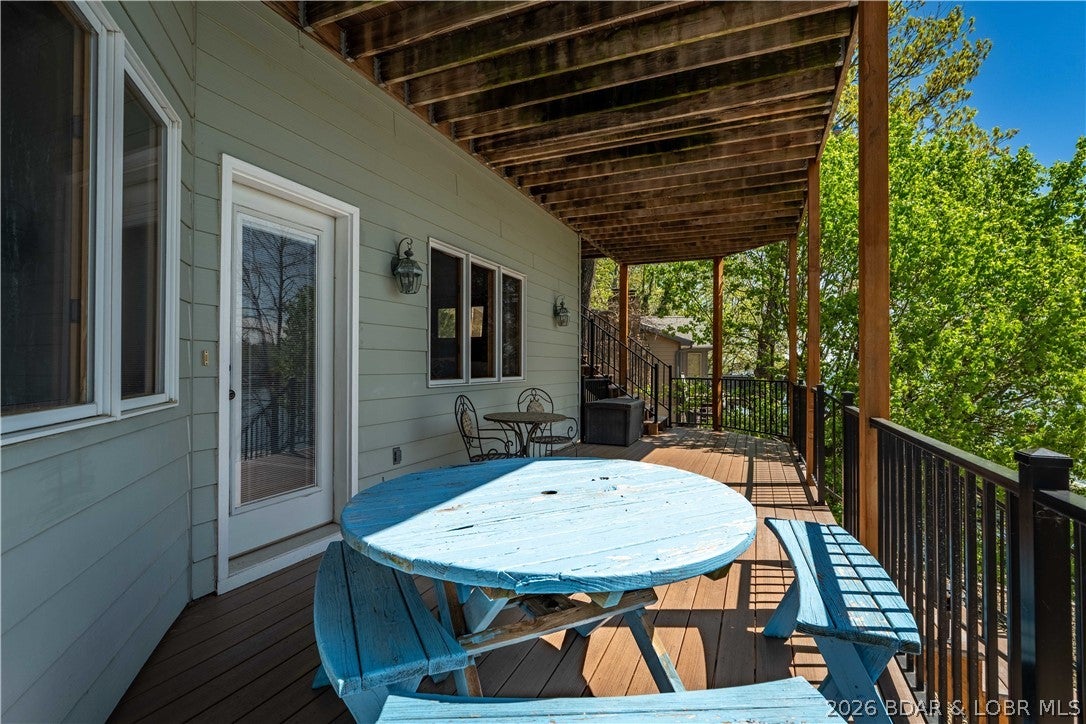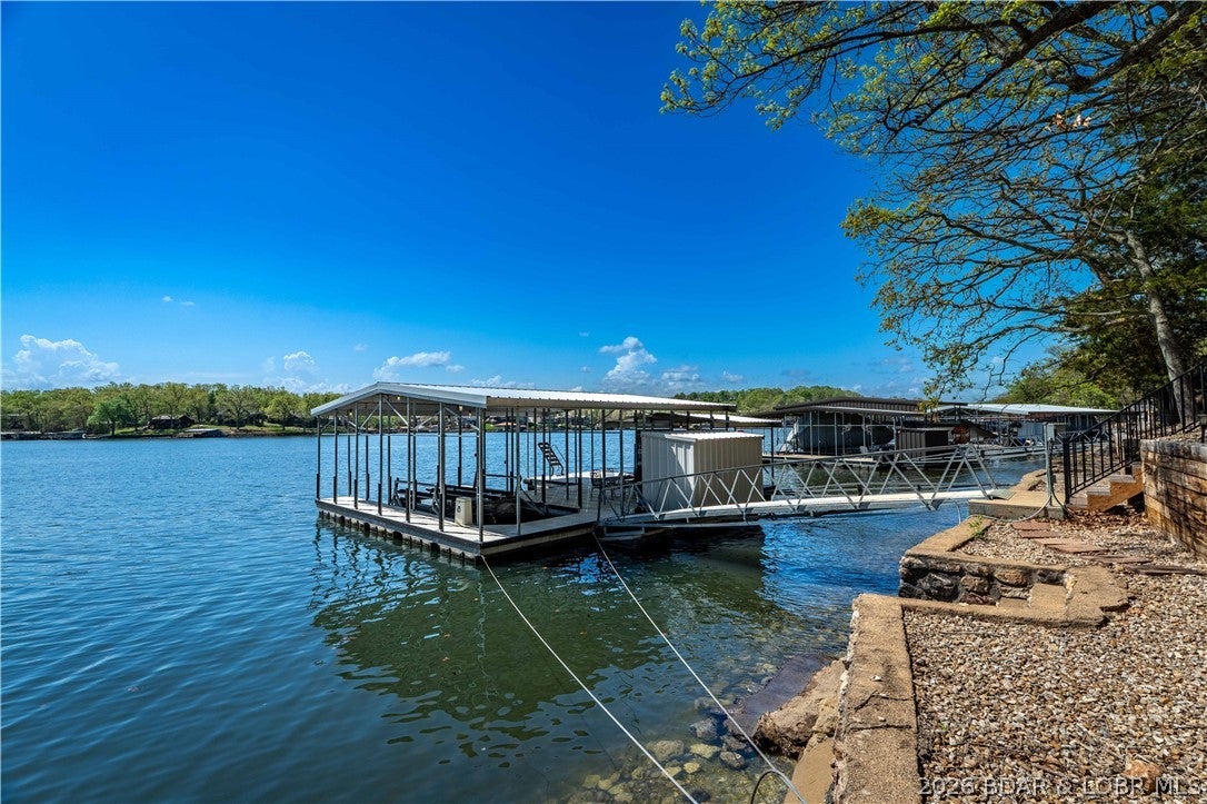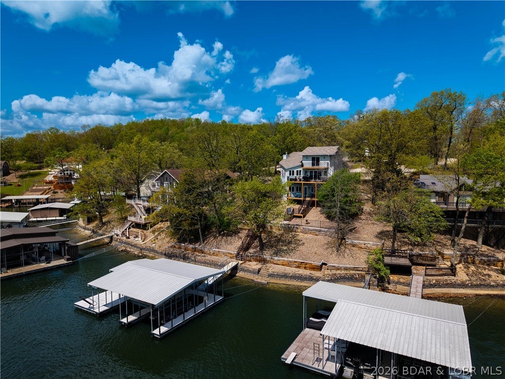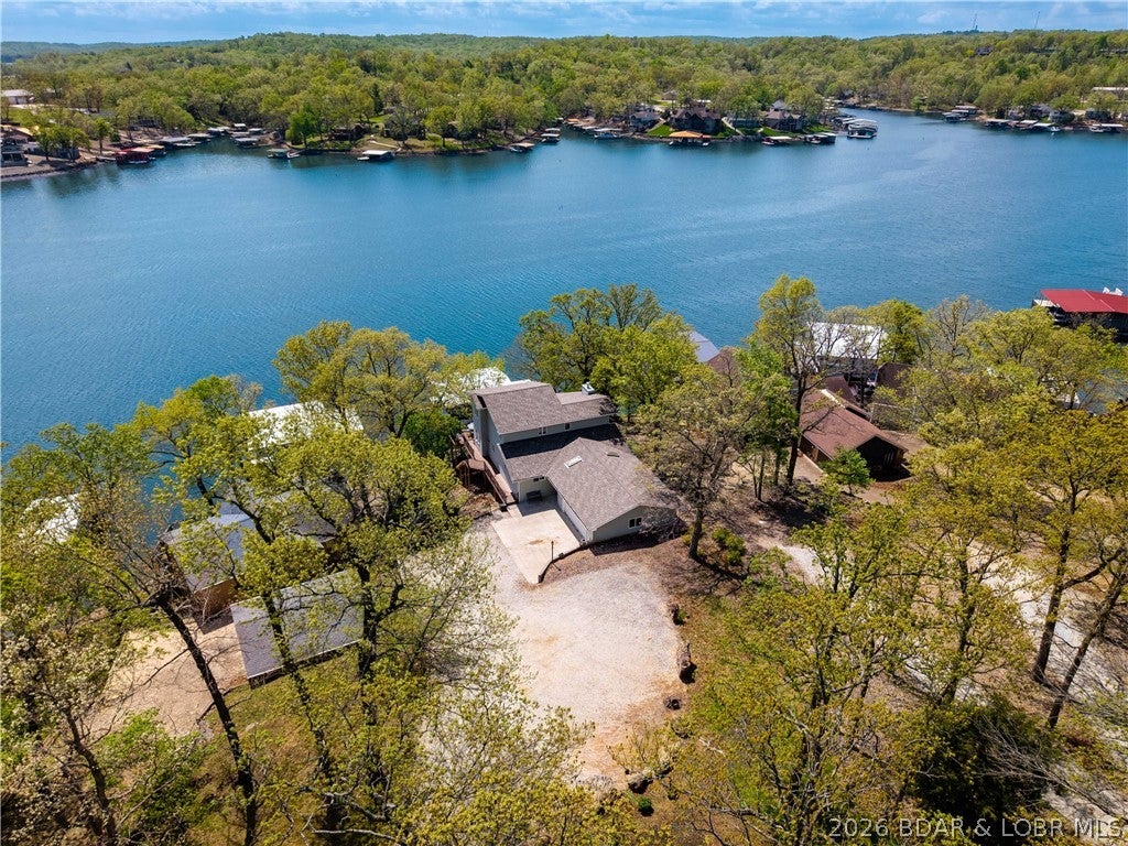 This property stands out with major updates already completed, while still offering the opportunity to add your own personal style. Situated on 100 of deep-water lakefront at the mouth of Easter Hollow Cove, the home captures wide channel views while enjoying protection from heavy wake. Inside, youll find an open layout with spacious rooms and abundant windows that bring in the lake from nearly every angle. Recent improvements include a fully updated kitchen, new flooring throughout the main level, fresh interior paint, new carpet upstairs and in the primary suite, plus a beautifully renovated primary bath with a modern design. Outdoor living is just as impressive with updated decking and railings spanning the home, a covered lower level, and a fenced backyard. The concrete dock, built by Ozark Barge in 2019, features a 6,000 lb poly lift, wet steps, and a lakeside tiki bar with refrigerator included. Set on approximately 0.80 acres with gentle topography and ample flat parking, the property also includes a detached 2-car garage connected by a breezeway, with space for a future shop or guest house.