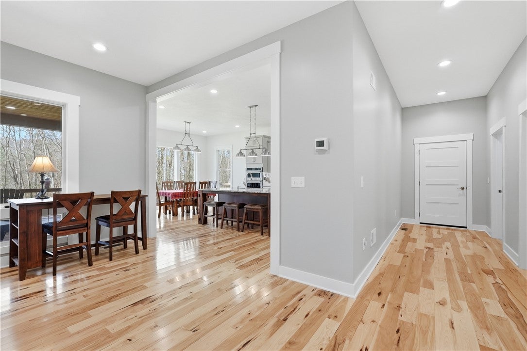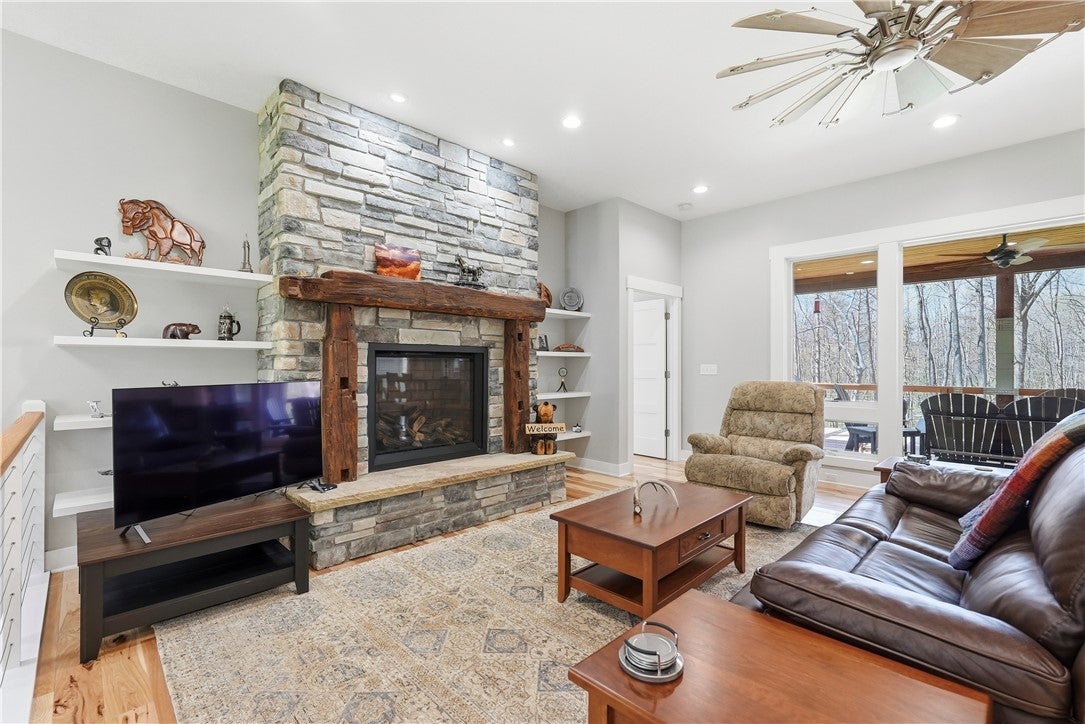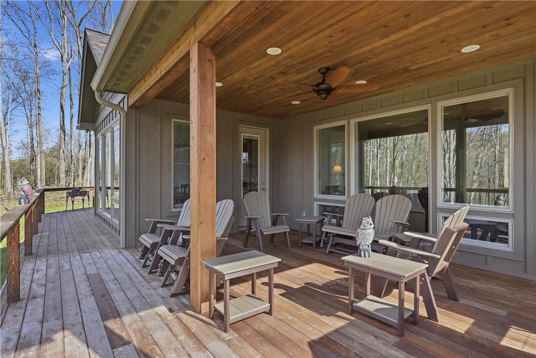 The Chatsworth Plan by Peachtree Residential. Quick Move-in! This beautifully designed 3-car garage home offers the perfect blend of style, comfort and functionality with an open-concept floor plan and thoughtfully selected upgrades throughout. From the moment you arrive, you are welcomed by a charming rocking chair front porch and an elegant single front door with sidelights. Inside, the foyer makes a memorable first impression with stained oak stair treads, designer chandelier and stained handrails with metal balusters. The formal Dining Room is beautifully appointed with wainscoting, an upgraded light fixture, and a stylish designer paint color. The spacious Family Room is the heart of the home, featuring a 42 direct vent fireplace with brick surround, cedar mantel and built-in bookcase. An impressive wall of windows, French door, and 8-foot sliding glass door flood the space with natural light and create seamless indoor-outdoor living. Step outside to the large covered back porch with extended grilling deck, ideal for entertaining, relaxing, or enjoying the expansive backyard with room for a small pool. The kitchen is designed for both everyday living and entertainment, showcasing a stunning 10-foot island, upgraded pendant lighting, quartz countertops, stainless steel appliances and abundant cabinetry. There is also easy access to the uncovered deck, making grilling convenient. The Primary Suite, on the main level, is a true retreat, highlighted by a vaulted ceiling with cedar beams, backyard view and private access to the covered porch. The spacious walk-in closet connects directly to the laundry room for added convenience. The laundry room is equipped with a sink, base cabinet and upper cabinets. Additional main-level features include engineered hardwood flooring, a functional mudroom with built-in bench and cubbies and a conveniently located powder room. Upstairs, youll find a versatile loft overlooking the foyer with open railing and a storage closet, along with three secondary bedrooms, each offering its own private bath. One of the secondary bedrooms also has access to unfinished space above the 2-car garage, offering potential for a future exercise room, expanded closet or flex space. This exceptional home combines timeless finishes, smart design and flexible living spaces - all in a move-in ready package. Come see why youll love living in Arden on Lanier! Call today! 20,000 Your Way Incentive* with the use of Sellers preferred lender with binding contract by 04/15/2026.