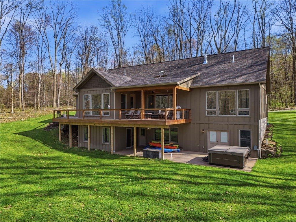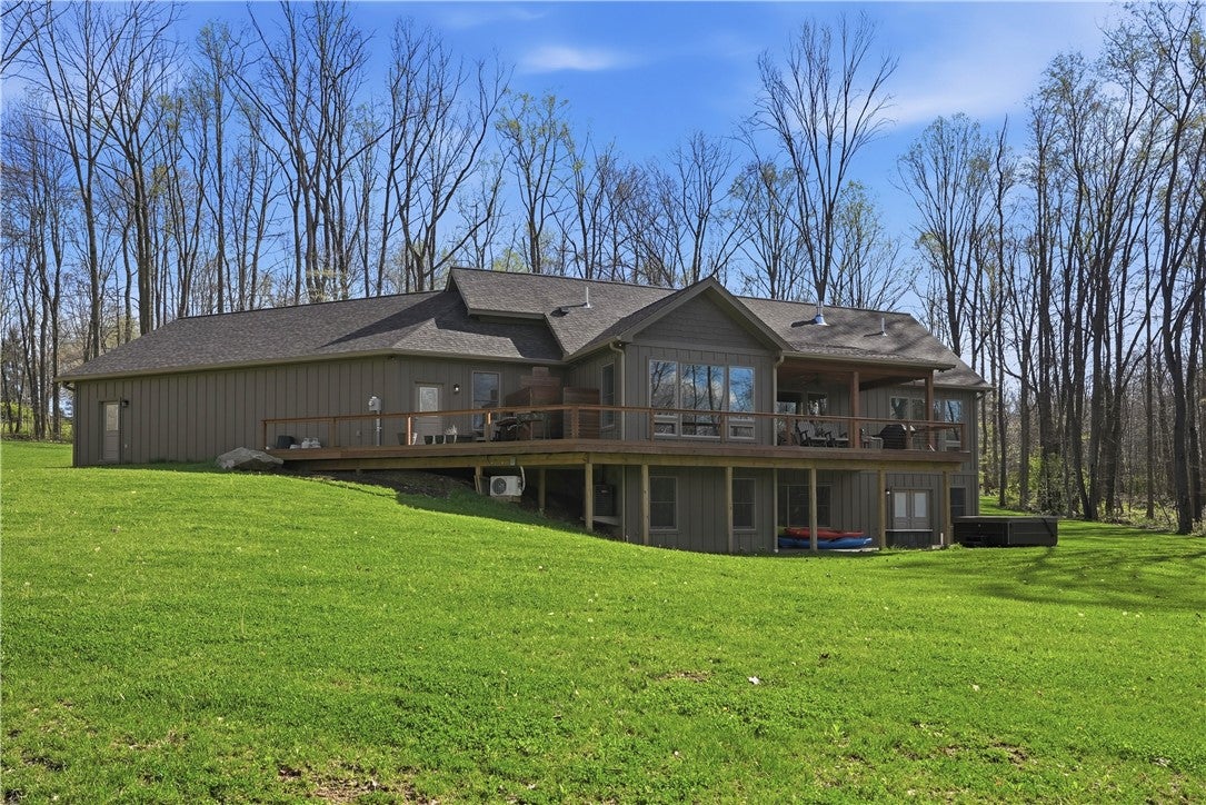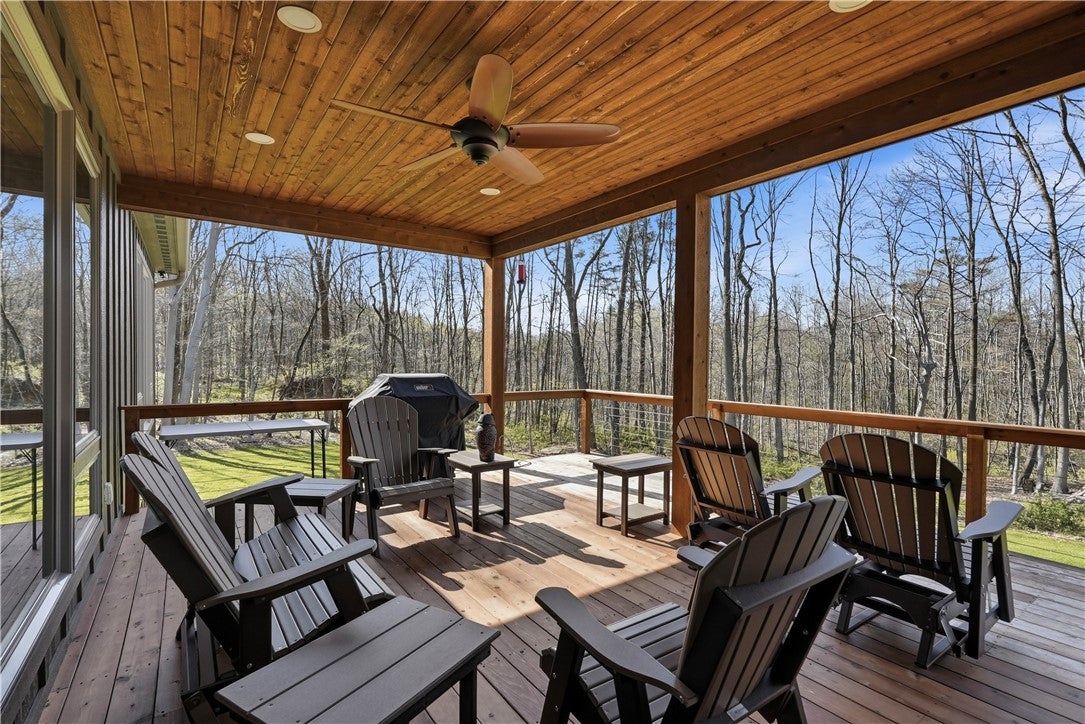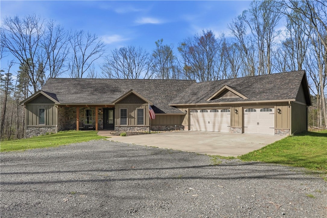 Rarely does a property offer this convergence of modern luxury and untouched natural beauty. Set on 14-plus private wooded acres beside McConnells Mill State Park, this meticulously maintained 2023 ranch home delivers the ultimate private retreat without sacrificing comfort or quality. Offering 2,309 finished square feet, three bedrooms, and three full bathrooms, every detail has been thoughtfully considered, from the beautifully grained hickory hardwood floors and stunning stone fireplace to the open-concept living spaces, western red cedar porches, and custom outdoor shower that together frame a lifestyle as breathtaking as the natural setting itself. Two creeks originate on the property, flowing into the park and feeding Breakneck Falls, a feature so rare it cannot be replicated. Inside, the spa-inspired primary suite, designer kitchen, and warm gathering spaces complete a home that is as beautiful as the land it sits on. This is not just a home, it is a lifestyle. Encompassing the spectacular Slippery Rock Creek Gorge, a National Natural Landmark formed by glacial lakes thousands of years ago, McConnells Mill State Park is celebrated for its dramatic rock formations, massive boulders, scenic overlooks, and waterfalls, all accessible from your own backyard.Entering via the covered front porch finished with western red cedar, the home opens to a stunning open-concept living room and eat-in kitchen anchored by a beautiful stone fireplace. Natural light pours over richly grained hickory hardwood floors and soft neutral gray walls, creating the perfect blank canvas. The primary suite enjoys a private corner with a spacious walk-in closet and a bath complete with an oversized shower and soaking tub. Designed for true single-floor living, the home features wide doorways for seamless flow. The second main-level bedroom offers ensuite access and a generous closet. The kitchen is built for gathering with a large island, stainless steel appliances, shaker cabinetry, and walk-out access to the oversized rear deck.Outdoor spaces are equally impressive. The expansive cedar-wrapped deck is partially covered for year-round enjoyment, complemented by a custom outdoor shower with sink. Fourteen-plus private acres offer trails and a seamless connection to the park, with two creeks originating on the property and flowing into Breakneck Falls. A lower patio with hot tub area enhances the outdoor experience. The finished basement includes a family room, an additional bedroom with ensuite access, and walk-out access to the patio. A 13x32 unfinished section, roughed in for plumbing, offers potential for an in-law suite, Airbnb, additional primary suite, or storage with double doors and walk-out access. An additional 22x19 area provides further flexibility. The attached 3-car garage accommodates large vehicles, includes a workbench, ample storage, and a private home office. A long, tree-lined driveway sets the tone for this secluded retreat, all just minutes from I-79 and 20 minutes to Cranberrys shopping and amenities. Have all the opportunity to live in basically new construction home, ready for your enjoyment!