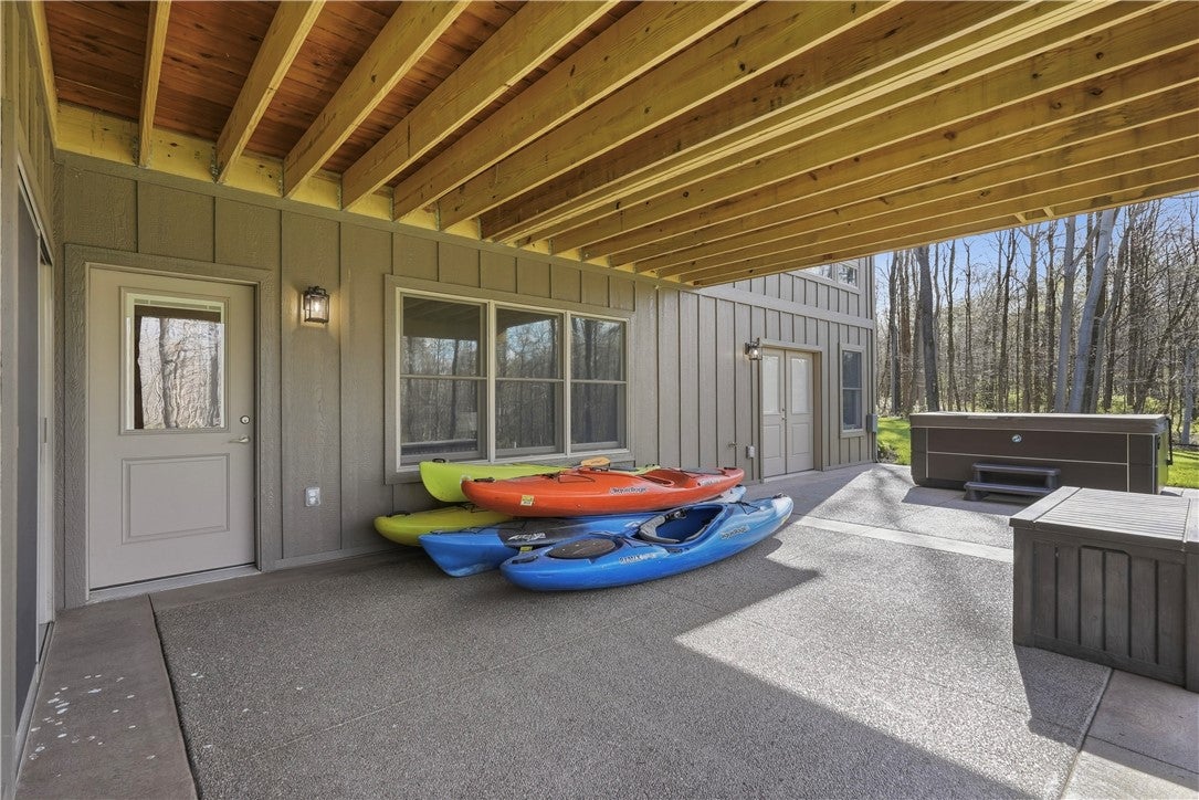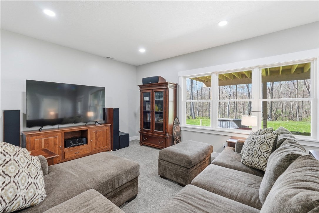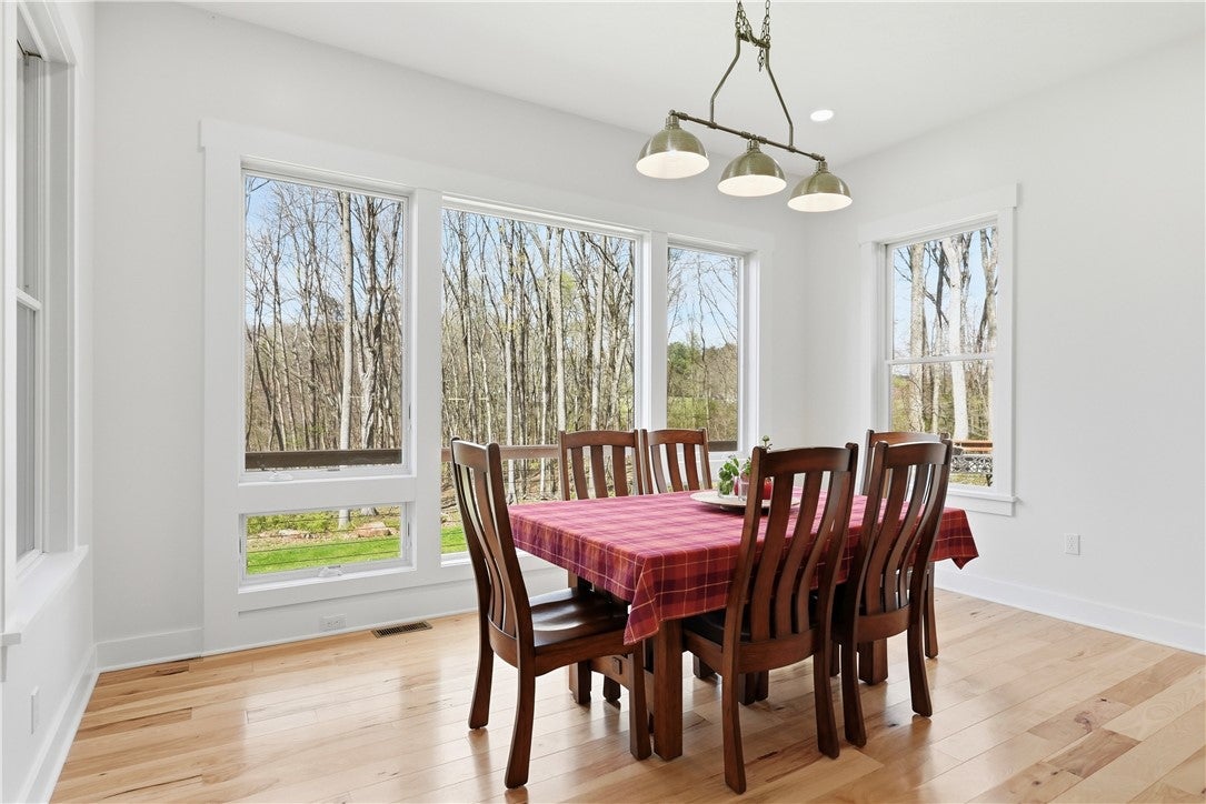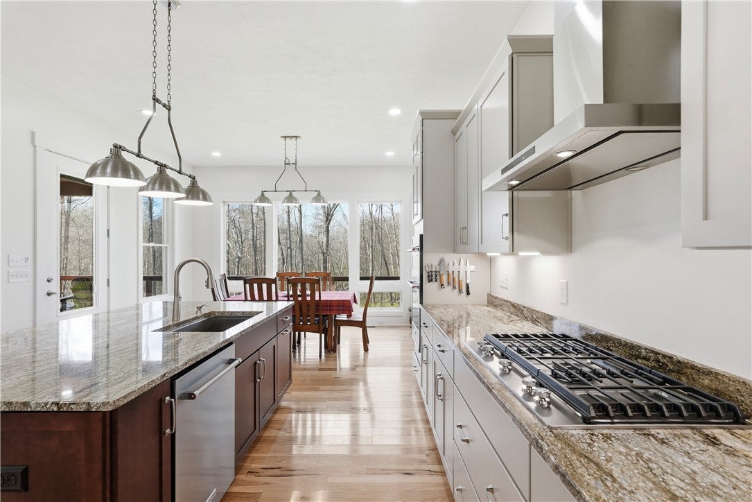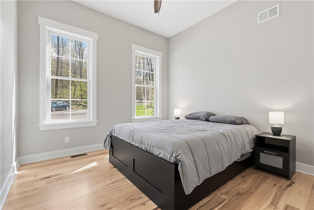 Rarely does a property offer this convergence of modern luxury and untouched natural beauty. Set on 14-plus private wooded acres beside McConnells Mill State Park, this meticulously maintained 2023 ranch home delivers the ultimate private retreat without sacrificing comfort or quality. Offering 2,309 finished square feet, three bedrooms, and three full bathrooms, every detail has been thoughtfully considered, from the beautifully grained hickory hardwood floors and stunning stone fireplace to the open-concept living spaces, western red cedar porches, and custom outdoor shower that together frame a lifestyle as breathtaking as the natural setting itself. Two creeks originate on the property, flowing into the park and feeding Breakneck Falls, a feature so rare it cannot be replicated. Inside, the spa-inspired primary suite, designer kitchen, and warm gathering spaces complete a home that is as beautiful as the land it sits on. This is not just a home, it is a lifestyle. Encompassing the spectacular Slippery Rock Creek Gorge, a National Natural Landmark formed by glacial lakes thousands of years ago, McConnells Mill State Park is celebrated for its dramatic rock formations, massive boulders, scenic overlooks, and waterfalls, all accessible from your own backyard.Entering via the covered front porch finished with western red cedar, the home opens to a stunning open-concept living room and eat-in kitchen anchored by a beautiful stone fireplace. Natural light pours over richly grained hickory hardwood floors and soft neutral gray walls, creating the perfect blank canvas. The primary suite enjoys a private corner with a spacious walk-in closet and a bath complete with an oversized shower and soaking tub. Designed for true single-floor living, the home features wide doorways for seamless flow. The second main-level bedroom offers ensuite access and a generous closet. The kitchen is built for gathering with a large island, stainless steel appliances, shaker cabinetry, and walk-out access to the oversized rear deck.Outdoor spaces are equally impressive. The expansive cedar-wrapped deck is partially covered for year-round enjoyment, complemented by a custom outdoor shower with sink. Fourteen-plus private acres offer trails and a seamless connection to the park, with two creeks originating on the property and flowing into Breakneck Falls. A lower patio with hot tub area enhances the outdoor experience. The finished basement includes a family room, an additional bedroom with ensuite access, and walk-out access to the patio. A 13x32 unfinished section, roughed in for plumbing, offers potential for an in-law suite, Airbnb, additional primary suite, or storage with double doors and walk-out access. An additional 22x19 area provides further flexibility. The attached 3-car garage accommodates large vehicles, includes a workbench, ample storage, and a private home office. A long, tree-lined driveway sets the tone for this secluded retreat, all just minutes from I-79 and 20 minutes to Cranberrys shopping and amenities. Have all the opportunity to live in basically new construction home, ready for your enjoyment!