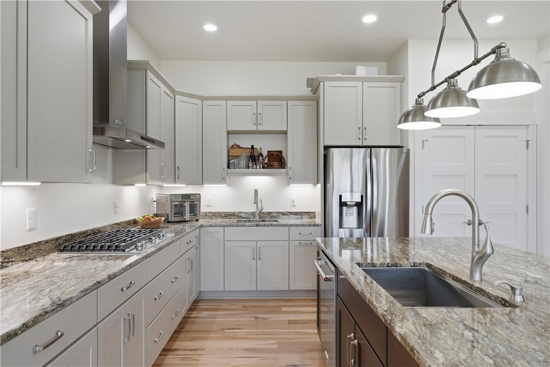 Welcoming an extraordinary Parade of Homes Gold Medal Winner that offers more than the little extras and will certainly leave a lasting impression. This stunning former model home features an award winning design and a wealth of luxury details. Heavy moldings, abundant character, an open floor plan, wide plank hardwood floors, a coffered ceiling, and mostly main level living.