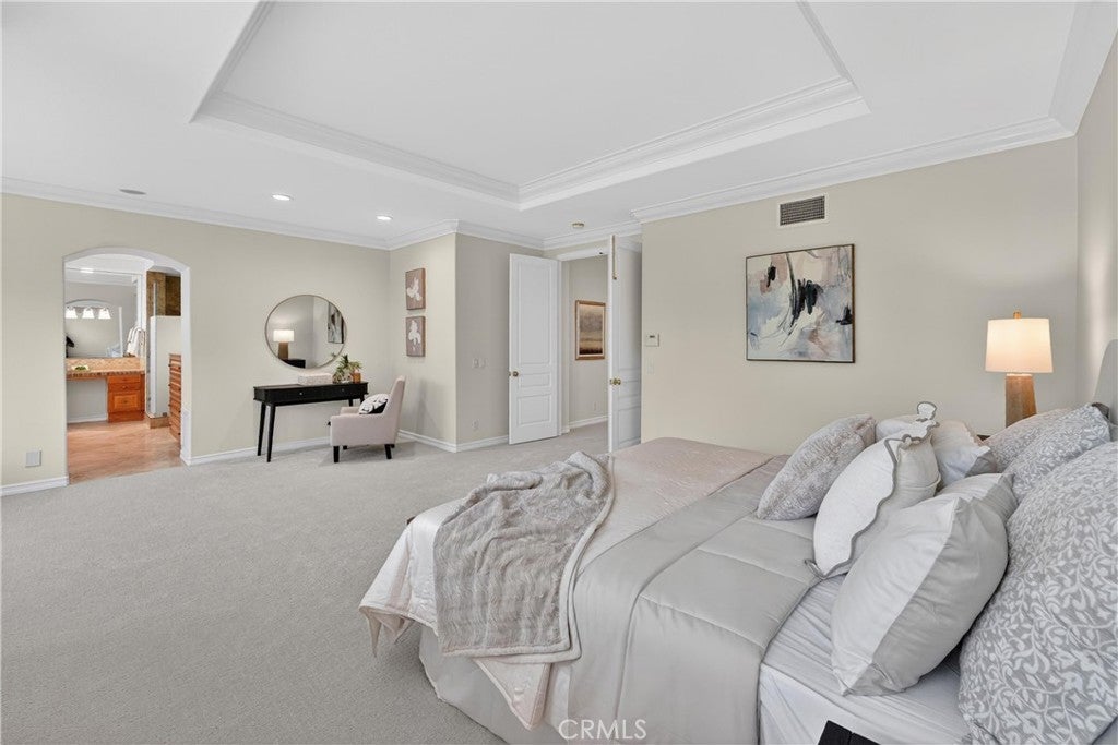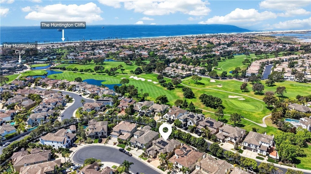 Welcome to an exceptional residence in the prestigious guard-gated community of The Peninsula at Huntington Seacliff, where refined coastal living meets timeless elegance. Ideally situated on a quiet cul-de-sac this expansive 4-bedroom, 4.5-bathroom home offers almost 3,700 square feet of thoughtfully designed living space. Designed for both comfort and sophistication, the home features a highly desirable main-level bedroom with a full en-suite bathperfect for guests or multi-generational living. PLUS, there is still a separate powder bath for guests. Each of the four bedrooms boasts its own private bathroom, offering ultimate privacy and convenience. One of the secondary bedrooms even features a walk in closet, built in bookcases and a private balcony. The formal living room welcomes you with soaring volume ceilings and an abundance of natural light streaming through stunning windows that frame picturesque views of the backyard. Two inviting fireplaceslocated in both the living room and family roomcreate warm, elegant gathering spaces throughout the home. The well-appointed interior includes all new LED lighting throughout, shutters, crown molding, new carpet, a large kitchen with a center island and generous storage, spacious laundry room with sink and laundry chute from upstairs, central vacuum system, a newer air conditioning system with 2 condensers for year-round comfort. Energy-efficient solar panels with a backup battery further enhance the homes modern appeal. Step outside to a beautifully designed backyard retreat that is very private as theres no house behind you. The yard includes a covered patio with recessed lighting and built-in barbecueideal for entertaining or enjoying relaxed coastal evenings. Additional highlights include a three-car garage with built in cabinets and gated front courtyard welcoming your guests and your packages! Recently painted inside and out, this Turnberry home (the largest tract in The Peninsula) is a rare opportunity to own a luxurious home in one of Huntington Beachs most sought-after communities. This unbeatable location just minutes from the renowned Huntington Club, the stunning beaches of Huntington Beach and within walking distance to Seacliff Elementary School, a National Blue Ribbon school repeatedly ranking one of the top elementary schools in California. Furthermore, residents have easy access to parks, gyms, grocery stores, Starbucks, restaurants and more all within walking or biking distance!