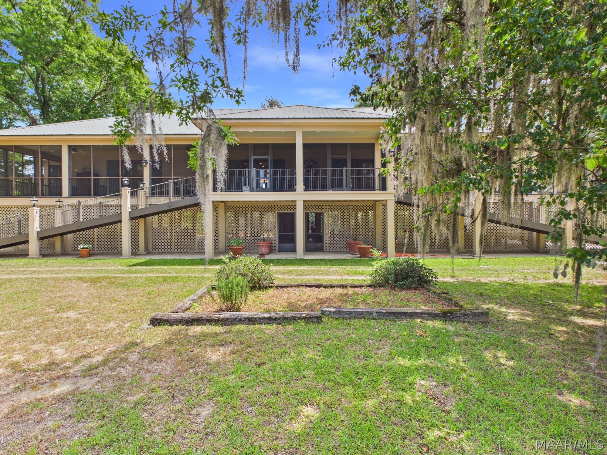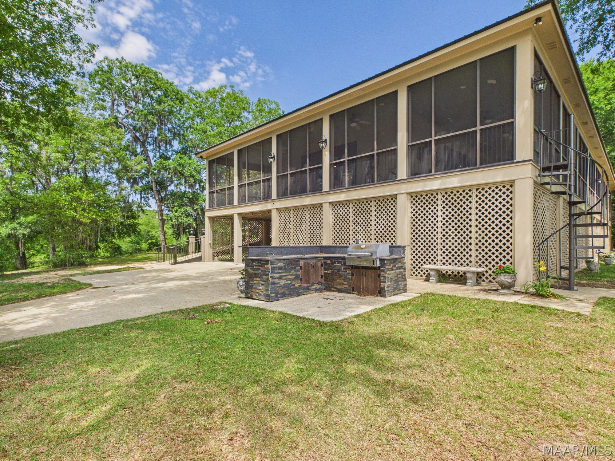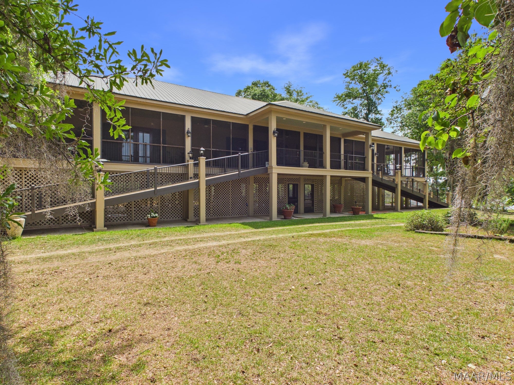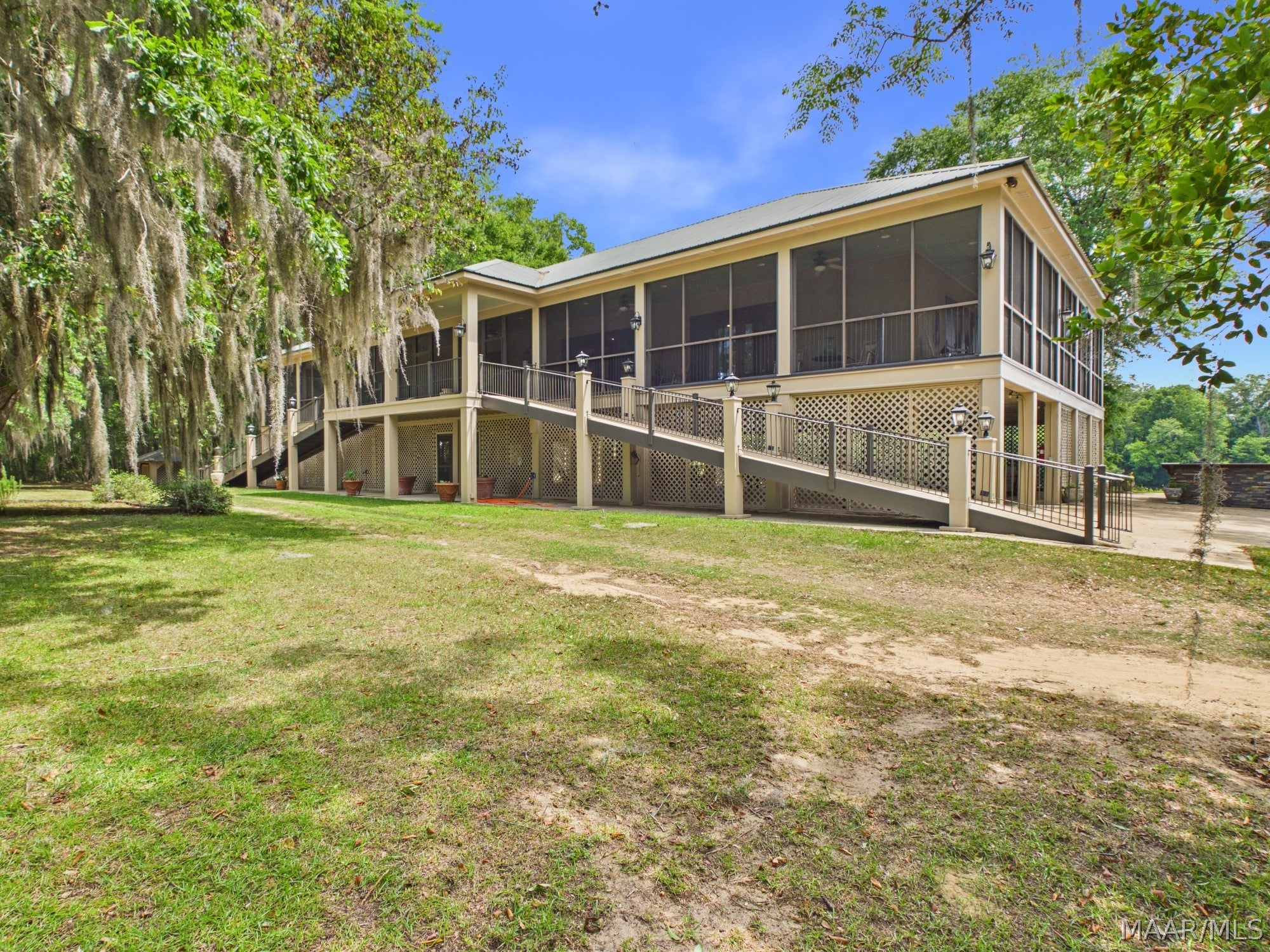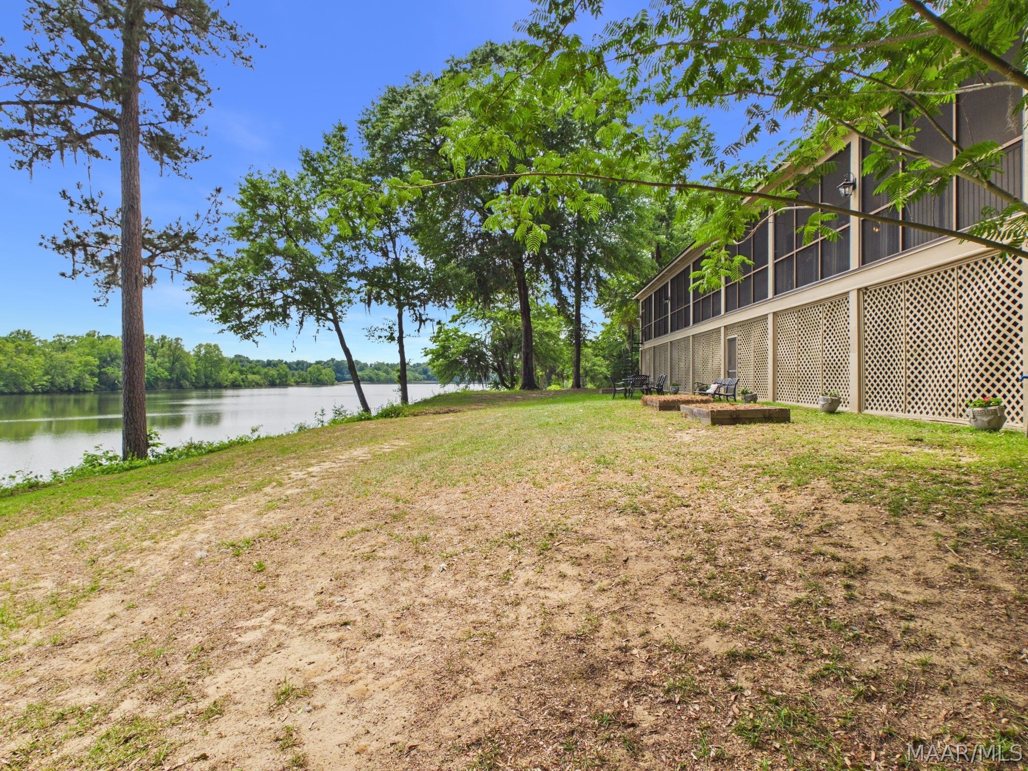 This extraordinary riverfront estate offers a rare opportunity to own over 133 acres at the confluence of Bear Creek and the Alabama River in southern Autauga County. With more than 5,000 feet of water frontage and a private drive stretching over three-quarters of a mile along the wooded shoreline, the property combines breathtaking natural beauty with exceptional privacy and versatility. Expansive hay fields, and panoramic water views create a truly one-of-a-kind setting. Elevated on piers, the nearly 3,000 square foot custom home features drive-thru covered parking below with ample space for multiple vehicles, storage, or use as an entertainment area, along with elevator access to the main living level. Inside, elegant open living spaces are anchored by a grand fireplace and hearth, while abundant windows frame stunning views of the surrounding landscape. The kitchen features granite countertops and professional-grade appliances including a six-burner gas range with griddle and vent hood, four ovens, electric cooktop with built-in vent, warming drawer, and moreperfect for serving large gatherings. Just off the kitchen sits the dining room with custom built-ins and views up and down the river. The home offers two spacious bedrooms, each with vaulted shiplap ceilings, French door access to the veranda, walk-in closets, and private en suite bathrooms. The covered wrap-around and screened veranda serves as a spectacular gathering space, offering unmatched views of the water and ample room for entertaining. Beyond the home, the property features the renowned River Pointe Venue, an exceptional outdoor event space ideal for special celebrations. Amenities include a riverside patio, cooking station, firepit, and a private boat ramp. With its unparalleled water frontage, event-ready amenities, and stunning natural surroundings, this remarkable estate offers limitless possibilities as a private retreat, recreational property, working farm, or income-producing venue.