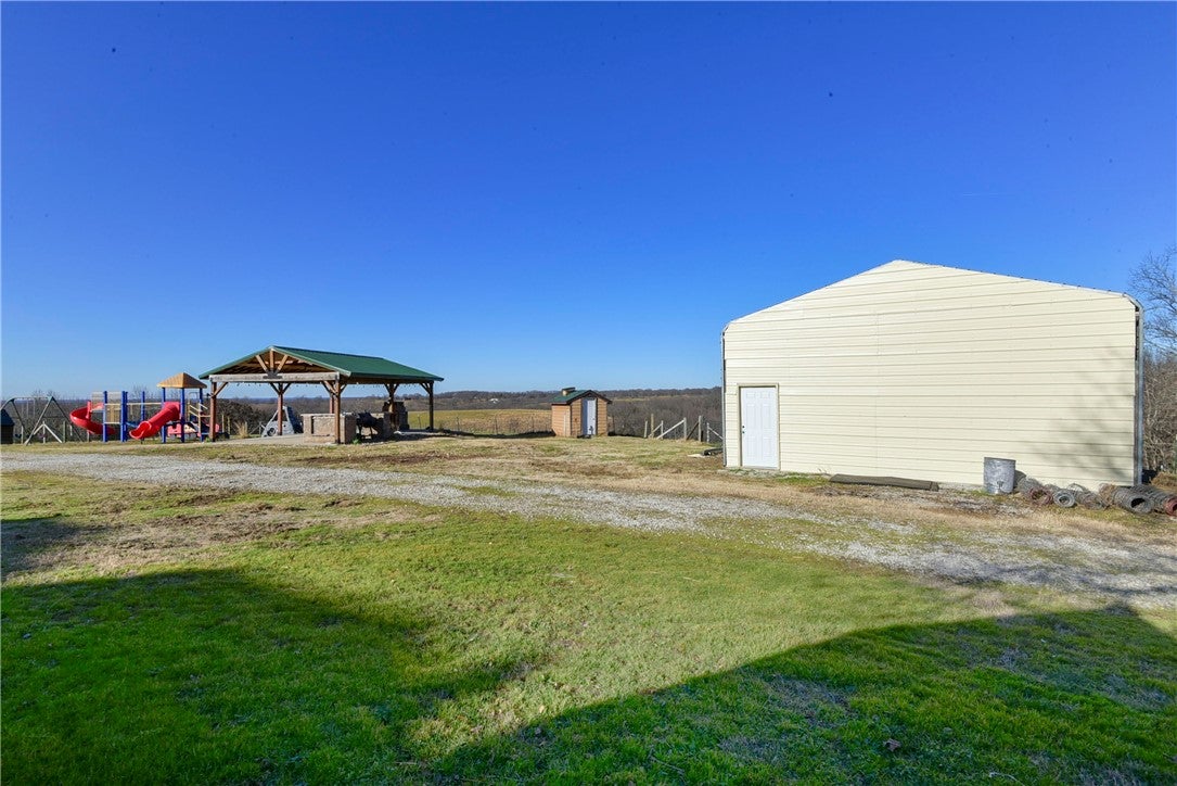 Welcome to a remarkable 320-acre estate just 8 minutes north of Branson West, where stunning views and tranquility meet adventure. This extraordinary property features a spacious 6800 m/l sq. ft. lodge designed for comfort and entertainment, boasting 8 bedrooms, 6 bathrooms, and a well-appointed commercial-grade kitchen perfect for hosting gatherings. Unwind by the fireplace or enjoy the expansive outdoor spaces ideal for family fun. Outdoor living is a highlight with a 20x30 outdoor kitchen/pavilion, perfect for summer barbecues and entertaining guests. Equestrian enthusiasts will love the impressive 100x125 horse arena, along with a 4-stall shop that includes a dedicated paint stall. This estate is suitable for various pursuits, from an equestrian center and hunting lodge to potential development opportunities. Ideal for horseback riding, biking, or ATV adventures, on over 20 miles of trails meandering through majestic stands of oak, black walnut, and cedar glades. Natures beauty is amplified by two year-round springs, a captivating cave, and serene ponds, providing a perfect setting for hiking, or simply enjoying the peaceful surroundings. With its versatile spaces, picturesque views, and endless recreational opportunities, this 320-acre retreat is an extraordinary find. Dont miss your chance to own this expansive paradise. Whether youre seeking a peaceful sanctuary, abundant adventures, or a unique investment opportunity, this property has it all. The property has a gated entrance and security system for maintaining privacy.