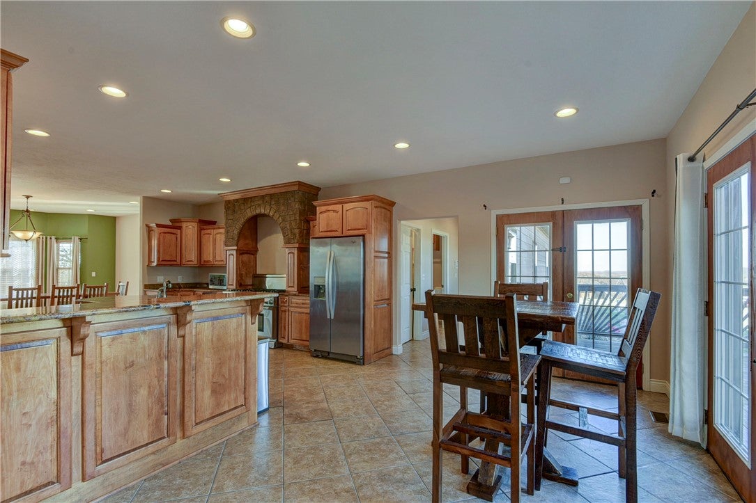 Welcome to Greenland Farm, a remarkable 12.56-acre farmette. This extraordinary property preserves its colonial character while seamlessly incorporating modern-day amenities for contemporary living.As you make your way up the picturesque drivewaypassing the original stone springhouse and the newly added circular driveyoure welcomed by the inviting front porch. The home spans over 4,700 square feet across four beautifully finished levels, offering four spacious bedrooms and four and a half bathrooms.On the grounds, youll find a two-story frame and stone bank barn featuring five stalls and two chicken coopsperfect for equestrian or hobby farm pursuits.Car enthusiasts will love the 48 x 72 metal shop (built in 2012), complete with three bay doors (10 ft. high x 16 ft. wide), electric service, two hydraulic automobile lifts, and a water hydrant. An additional 18.5 x 60.5 small shop, originally a machine shed, has been converted into five bay garages with concrete slabs, electricity, and a metal roof. In total, the property offers a two-car attached garage and eight additional garage bays across the outbuildings.Adding to the estates charm is a 30 x 30 corn crib with a frame exterior, metal roof, and original stone pier foundation. At the back corner of the property, a large scenic pond provides a tranquil setting for birdwatching and relaxation.Inside, the home exudes timeless craftsmanship. The foyer opens to wide-plank wood flooring that flows throughout the main and second levels. To the left, a library with built-in bookshelves provides a quiet retreat, while to the right, a family or keeping room with a decorative fireplace offers a welcoming gathering space.The chef-inspired gourmet kitchen, which has its own entrance, is truly the heart of the homefeaturing two farmhouse sinks, a large granite island, a six-burner commercial-grade range, and a fireplace. From the spacious eat-in kitchen, you can access the dining room and living room, both offering breathtaking views of the grounds and outbuildings.From the dining room, step into a brick-floored garden rooma perfect spot for casual dining or enjoying an evening glass of wine. Beyond the custom French doors, the patio and fenced backyard invite you to relax among butterfly gardens and enjoy the expansive pastoral views.The main level also includes a guest suite with ADA accessibility, featuring two cedar closets and a luxurious bathroom with custom tile, wainscoting, a handcrafted vanity, and a walk-in glass shower. A laundry room completes the first floor for added convenience.Upstairs, the owners suite offers a serene escape with an oversized dressing room/retreat, complete with built-in dressers, granite countertops, and abundant storage for all four seasons of your wardrobe. The updated en suite bath features custom tilework, wainscoting, and a walk-in shower with glass door. Two additional bedrooms on this level each feature private bathrooms, and a second laundry area is conveniently located near the back staircase leading to the kitchen.The fourth level offers a den or potential fifth bedroom with a half bath, while the remodeled lower level provides a spacious recreation room ideal for entertaining or relaxing.With its blend of historic integrity, modern upgrades, and unmatched amenities, Greenland Farm is a truly exceptional propertyoffering a one-of-a-kind opportunity to own a piece of history while enjoying luxurious country living.